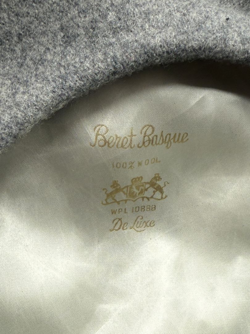 The interior is lined in smooth satin and stamped with the distinguished Borsalino Barbisio branding, along with “De Luxe” and “100% Wool” markings—hallmarks of quality and heritage. The traditional beret silhouette is clean and well-proportioned, with a subtly structured crown that drapes naturally for a polished yet relaxed look.