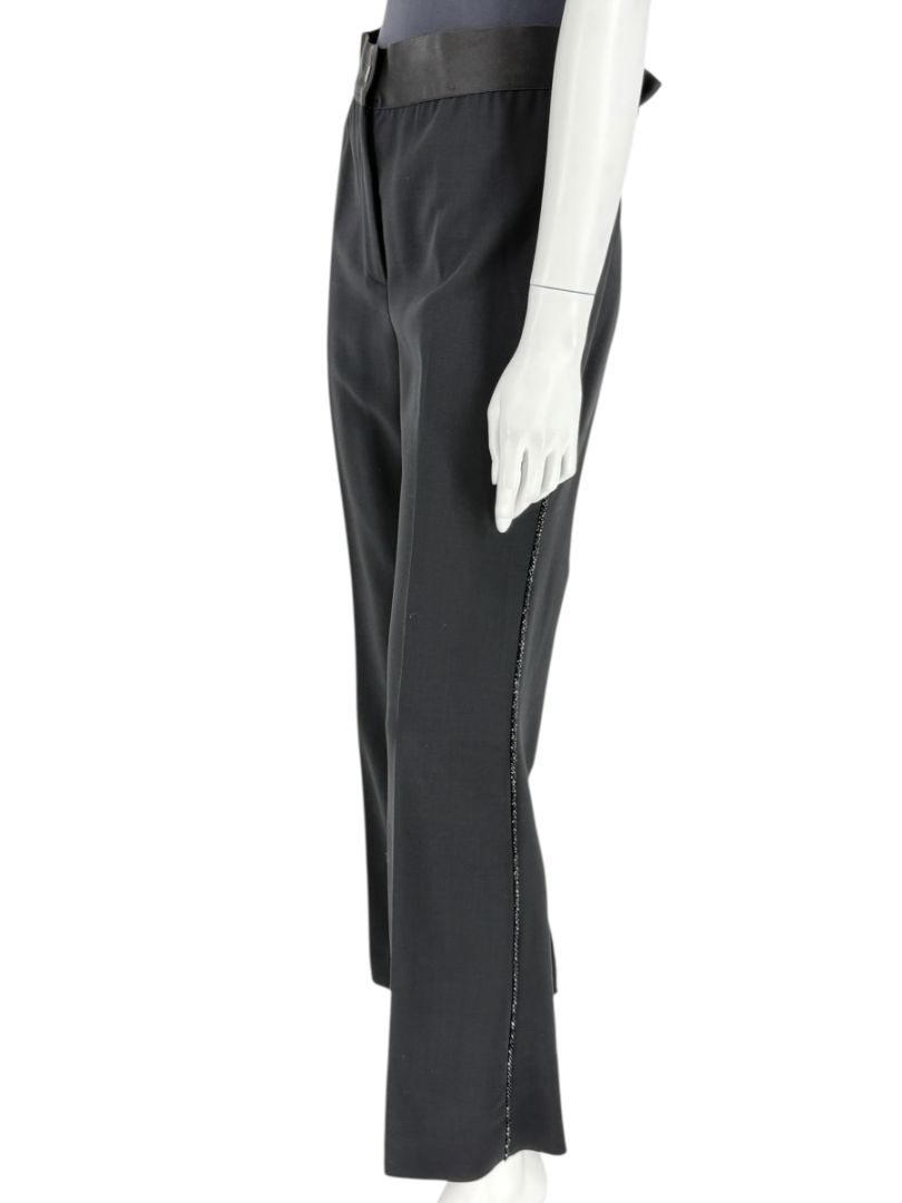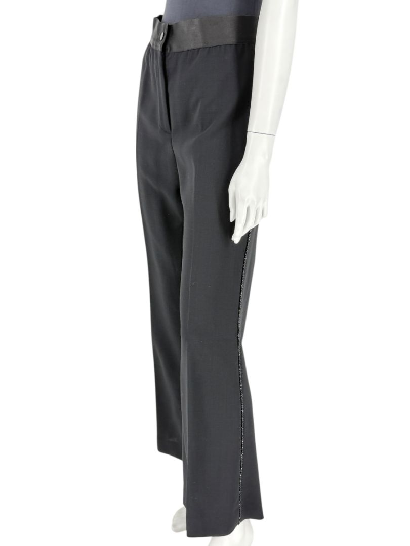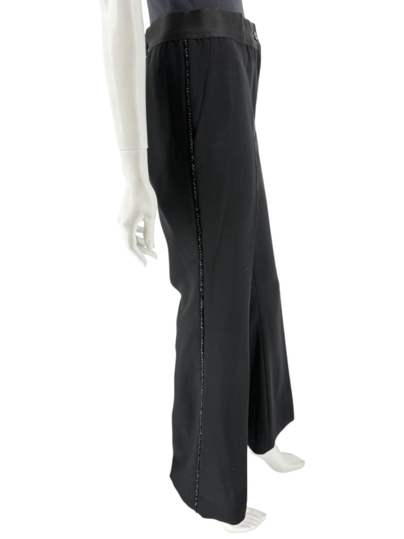 Akris Black Wool Blend Pants with Sequin Trim - Size US 10 (IT 46)