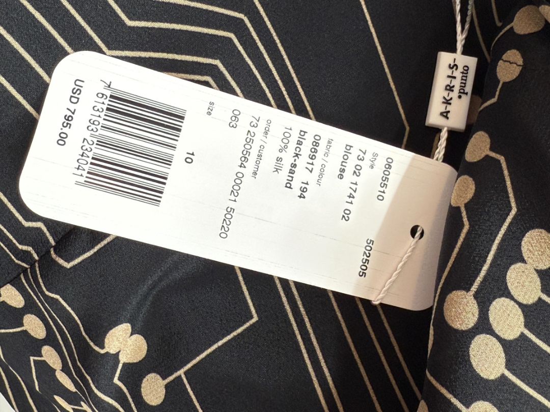Akris Punto Black & Sand Silk Circuit Print Bow Blouse – Size 10