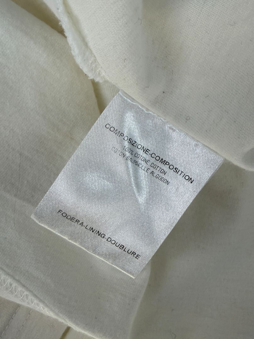 Striking and unmistakably McQueen, this ivory cotton tee features an intricate black illustrative skull motif composed of surreal collage elements and fine line detailing. The artwork forms a bold statement centerpiece while maintaining the house’s signature dark romantic edge. Designed in soft 100% cotton with a classic crew neckline and short sleeves, this piece offers an easy, slightly relaxed fit. Subtle fading throughout adds character without detracting from the impact of the print. Made in Italy, this is a versatile designer staple that pairs effortlessly with denim, tailoring, or layered under a jacket for elevated off-duty styling.