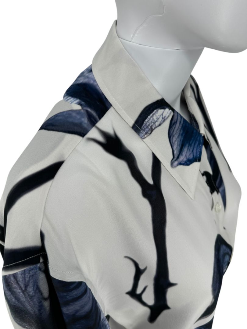 Alexander McQueen Ivory & Ink Floral Silk Blouse – Size L