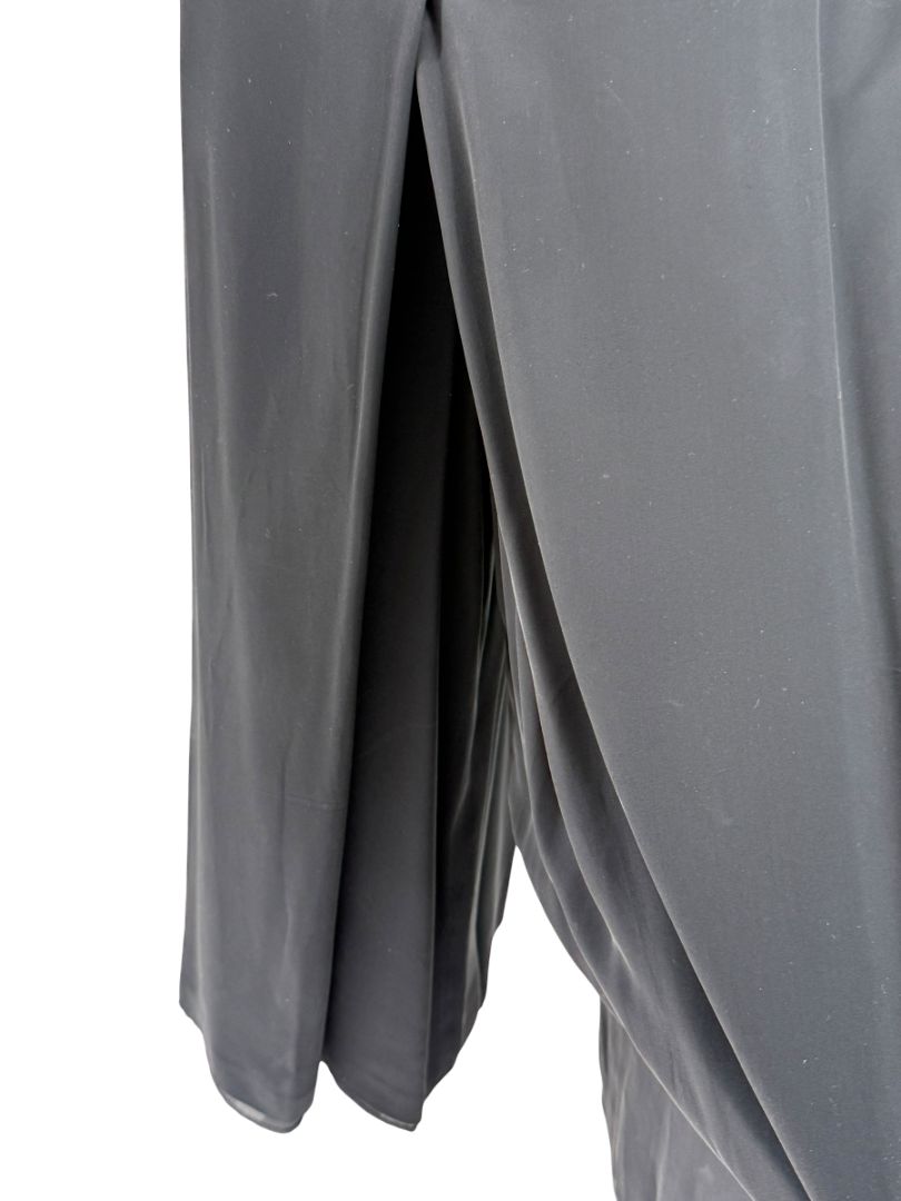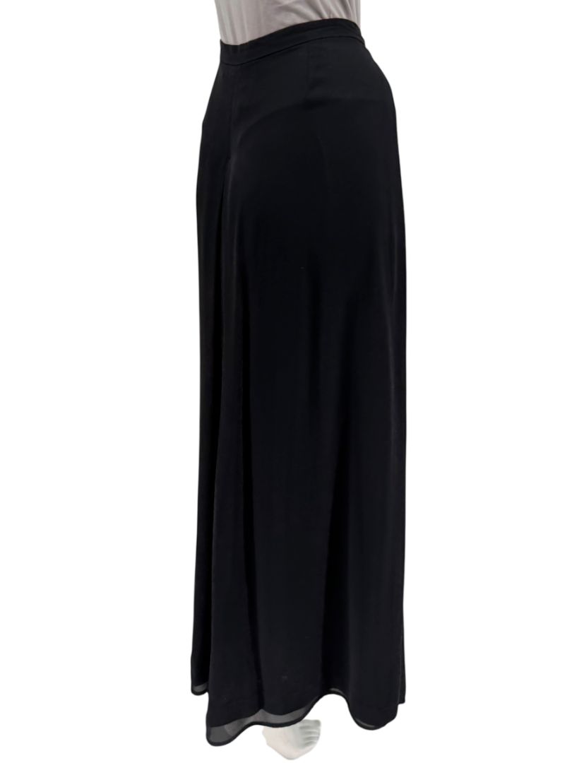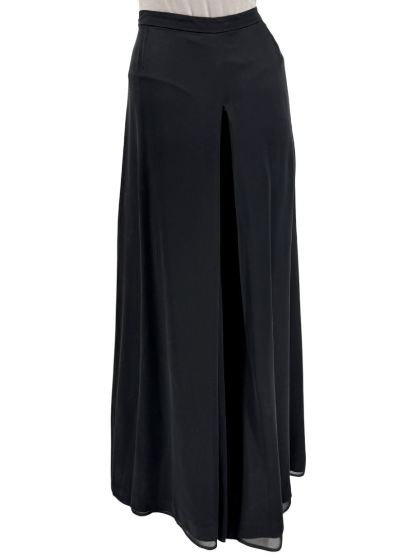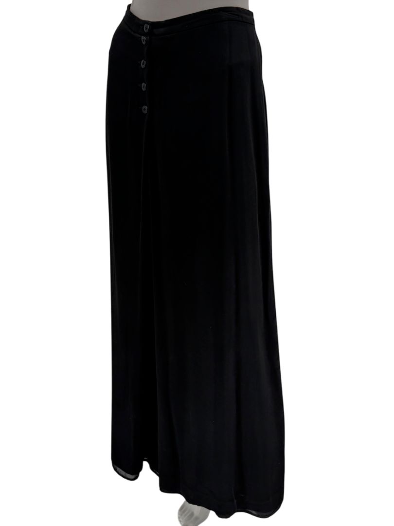 These Armani Collezioni trousers are the epitome of fluid elegance. Designed with an ultra-wide leg silhouette, they drape beautifully from the waist, creating a soft, elongated line that moves effortlessly. The front button detail adds subtle refinement, while the clean waistband and smooth finish keep the look polished and modern. Crafted from a luxurious blend of 52% virgin wool, 45% angora, and 3% elastane, they offer warmth with a soft hand and gentle stretch. The flowy construction gives the illusion of a skirt while maintaining the structure of tailored trousers—perfect for elevated daywear or sophisticated evening styling.