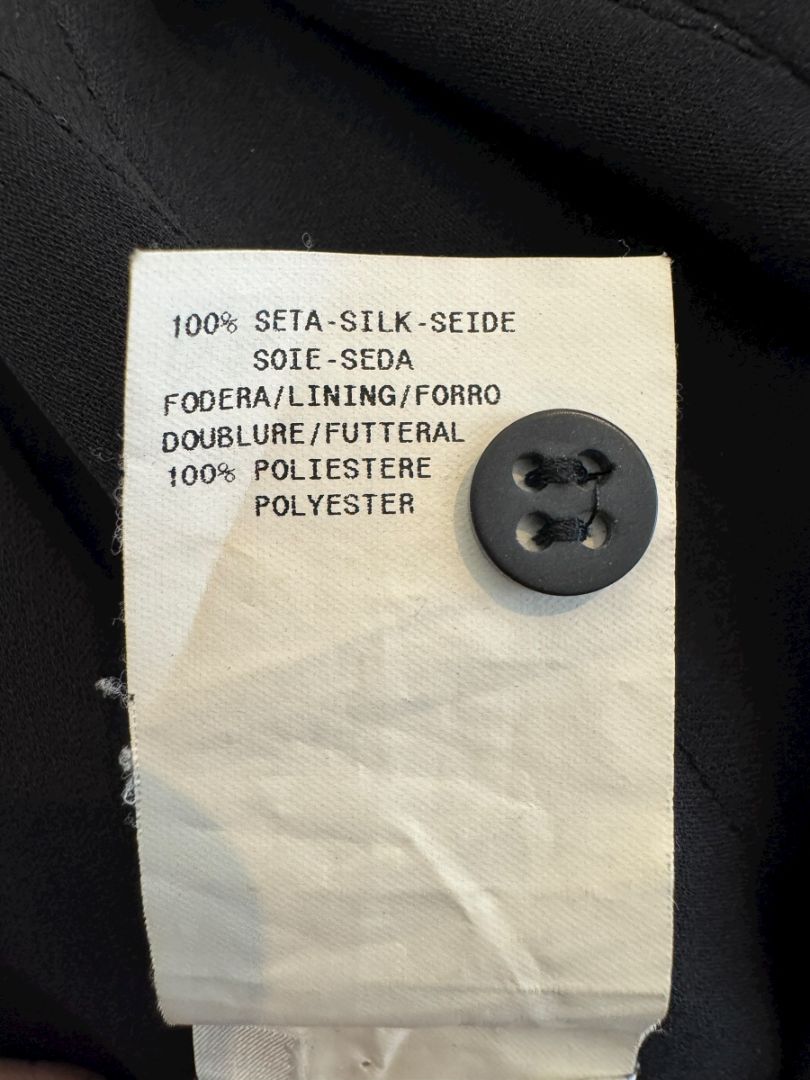 Elevate your wardrobe with this elegant Armani Collezioni black skirt, crafted from 100% pure silk with a beautifully fluid drape. This refined piece features vertical paneling that elongates the silhouette and a softly flared hemline that moves gracefully with every step. Fully lined in smooth polyester for comfort and structure.