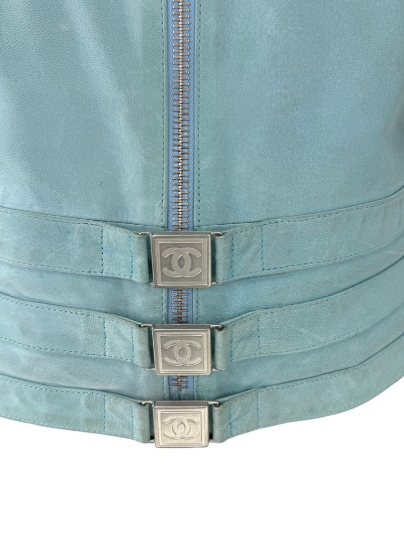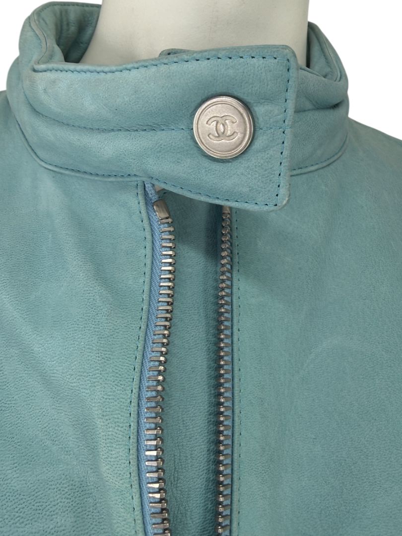 Chanel Pale Blue Leather Moto Jacket – Spring 2002 – Size 42