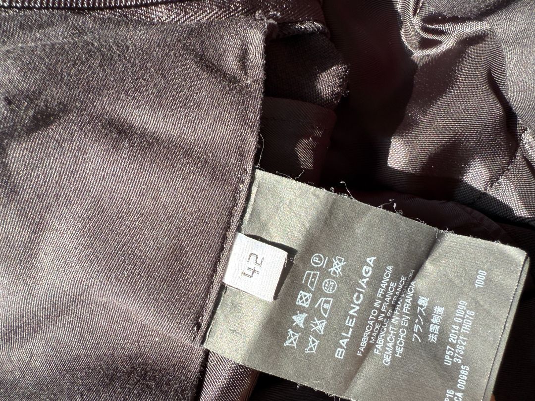 These architectural tapered-leg pants from Balenciaga highlight the house’s forward-thinking tailoring with a precise, sculpted silhouette. Crafted in France from a smooth wool-blend with polyamide for durability, the trousers feature clean lines, subtle volume through the hips, and a flat front with a sharp inward pleat.