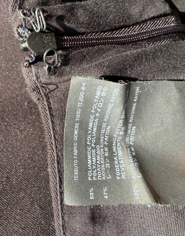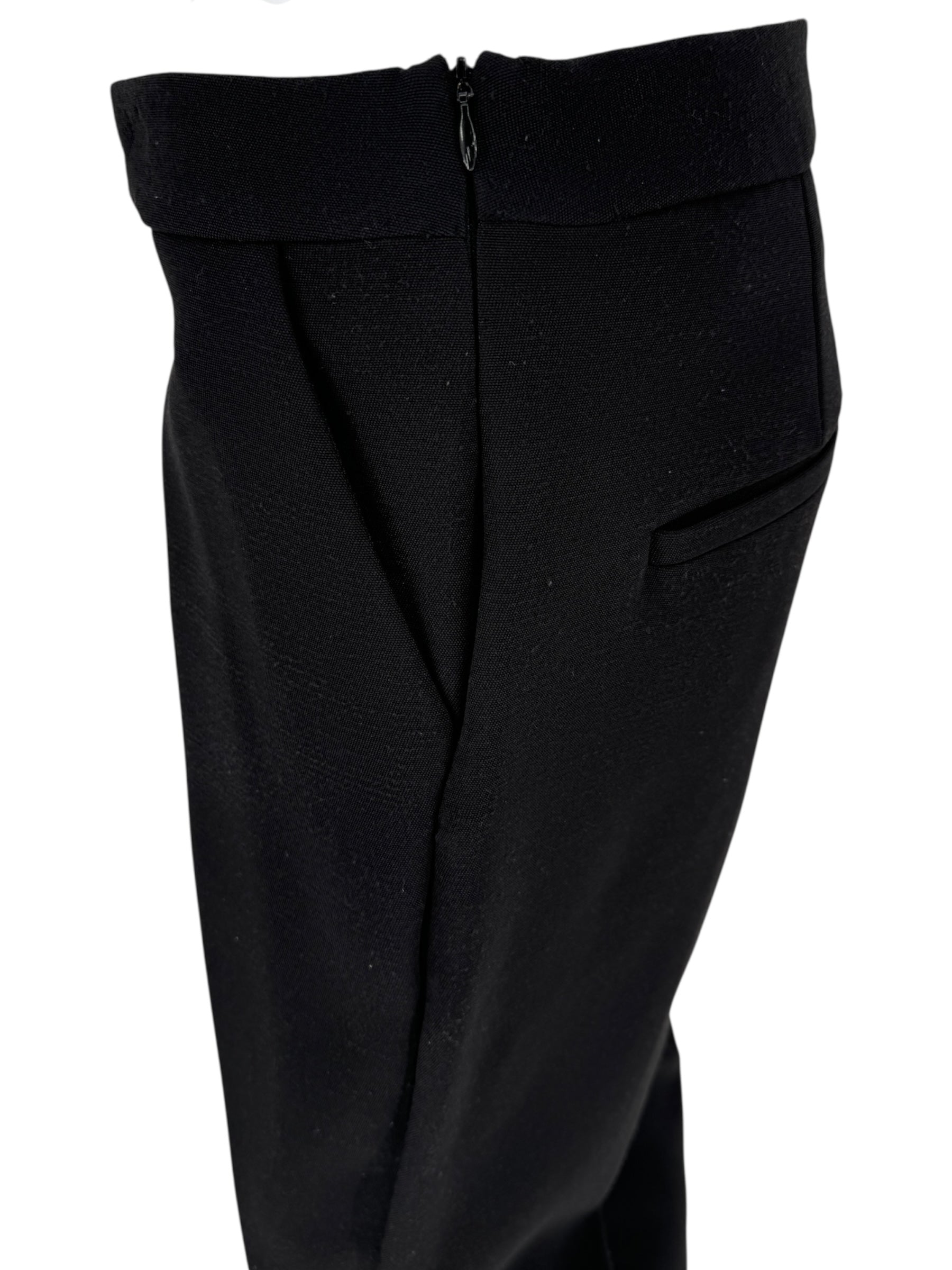The inner waistband is partially structured with a rear zipper and hook-and-eye closure for an ultra-clean finish. Fully lined in silky rayon for ease of movement.