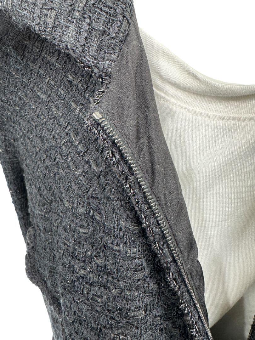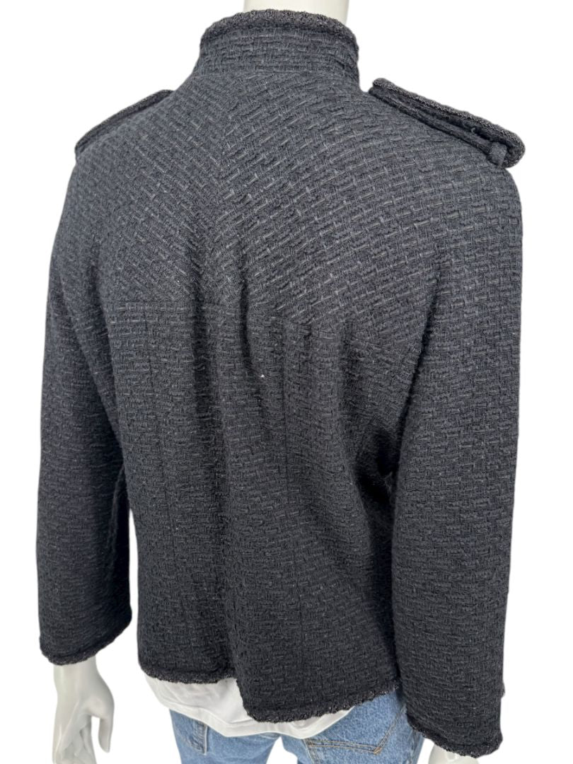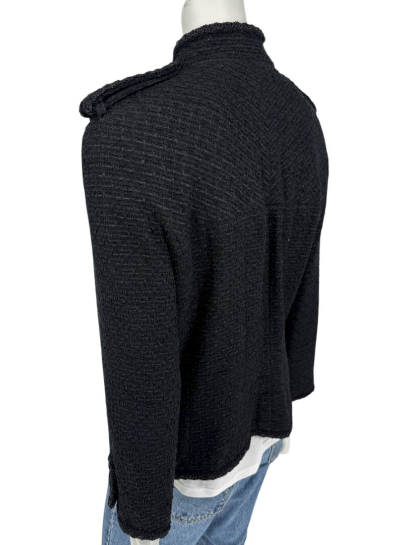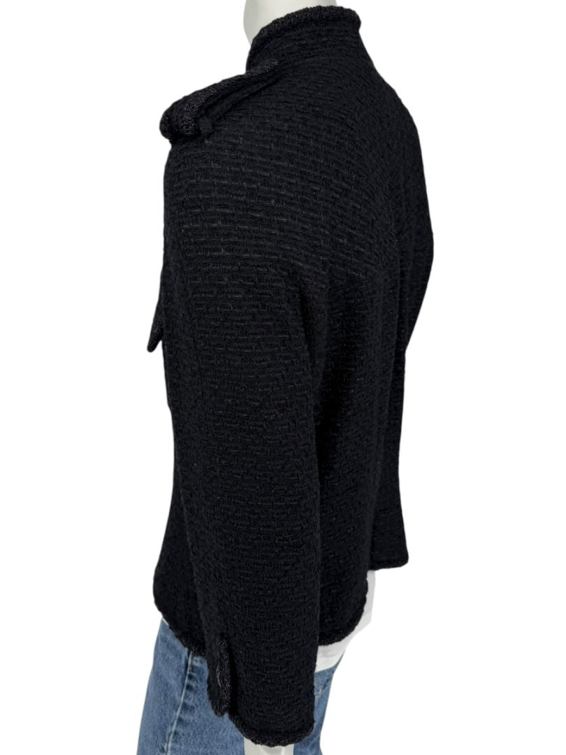 • Chanel Women’s Black Textured Tweed Military-Inspired Jacket – Size 44