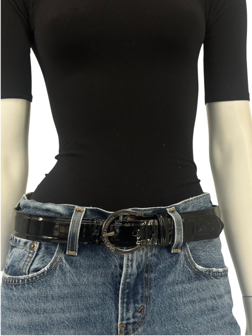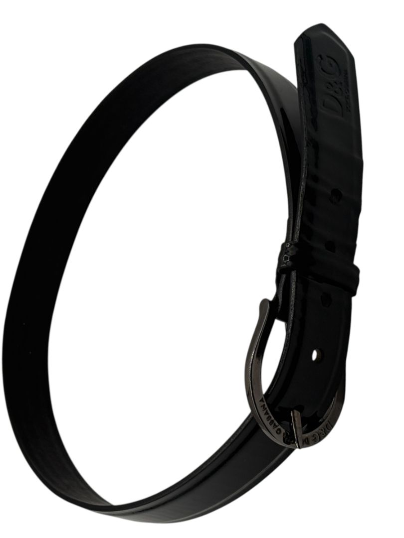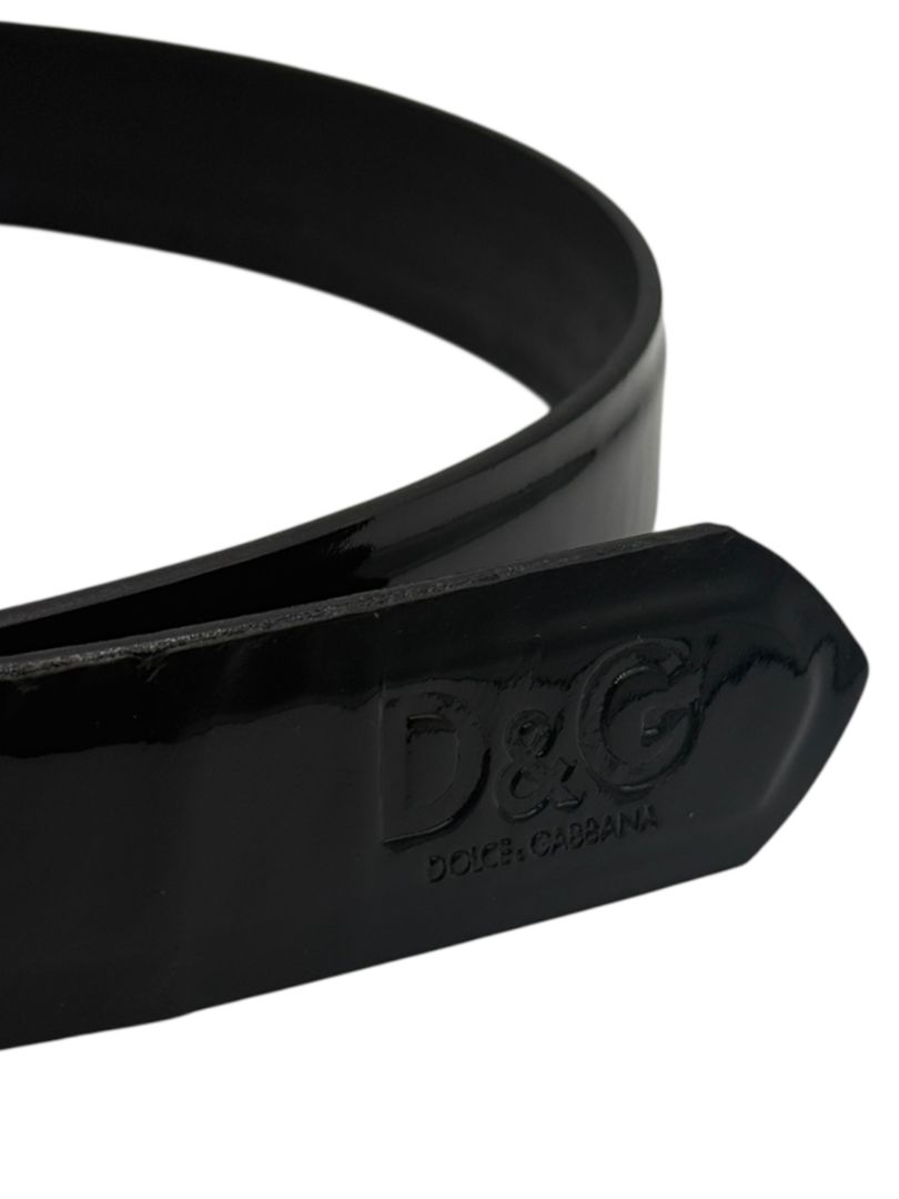Dolce & Gabbana Black Patent Leather Logo Belt – Size 105/90