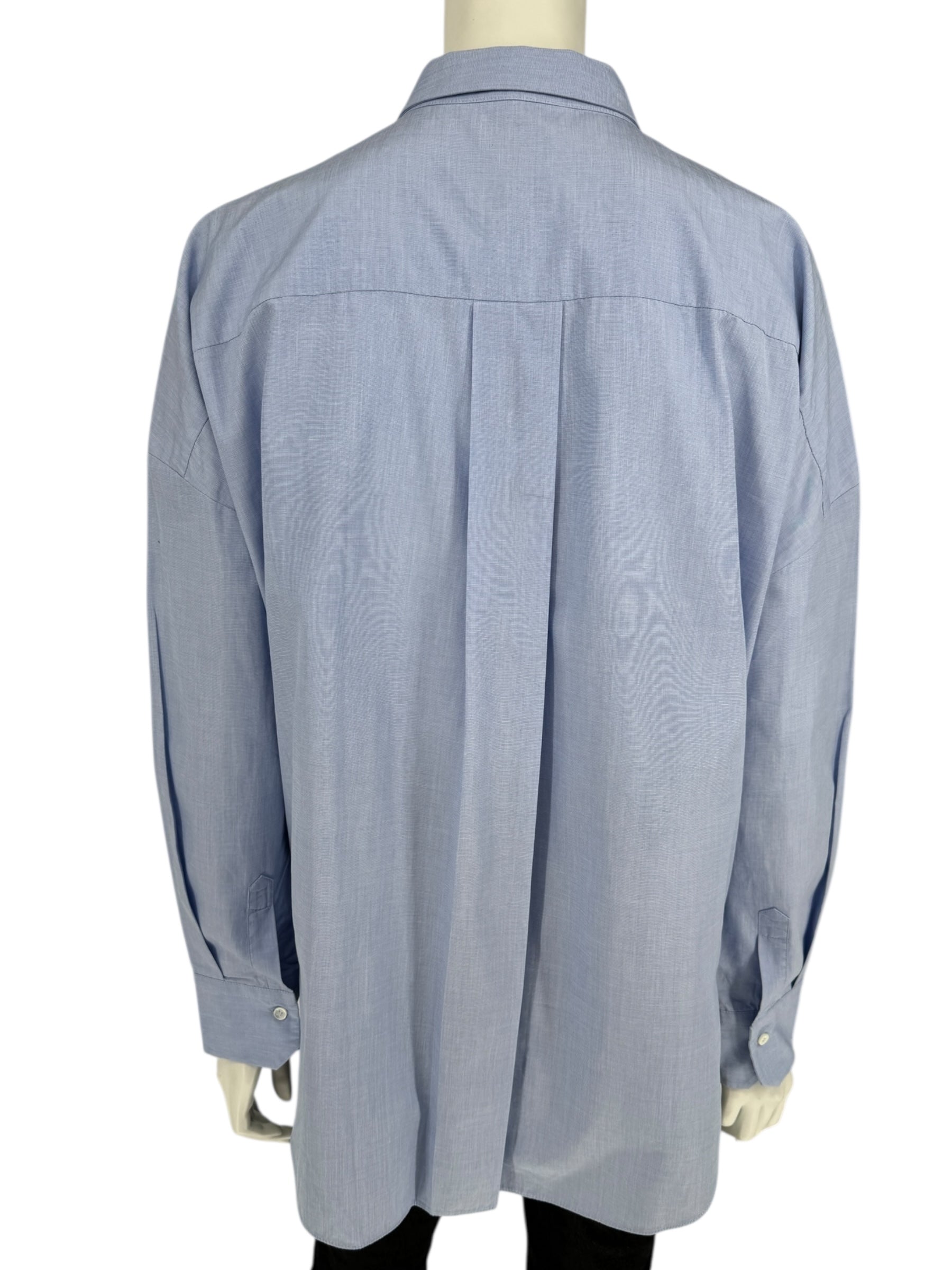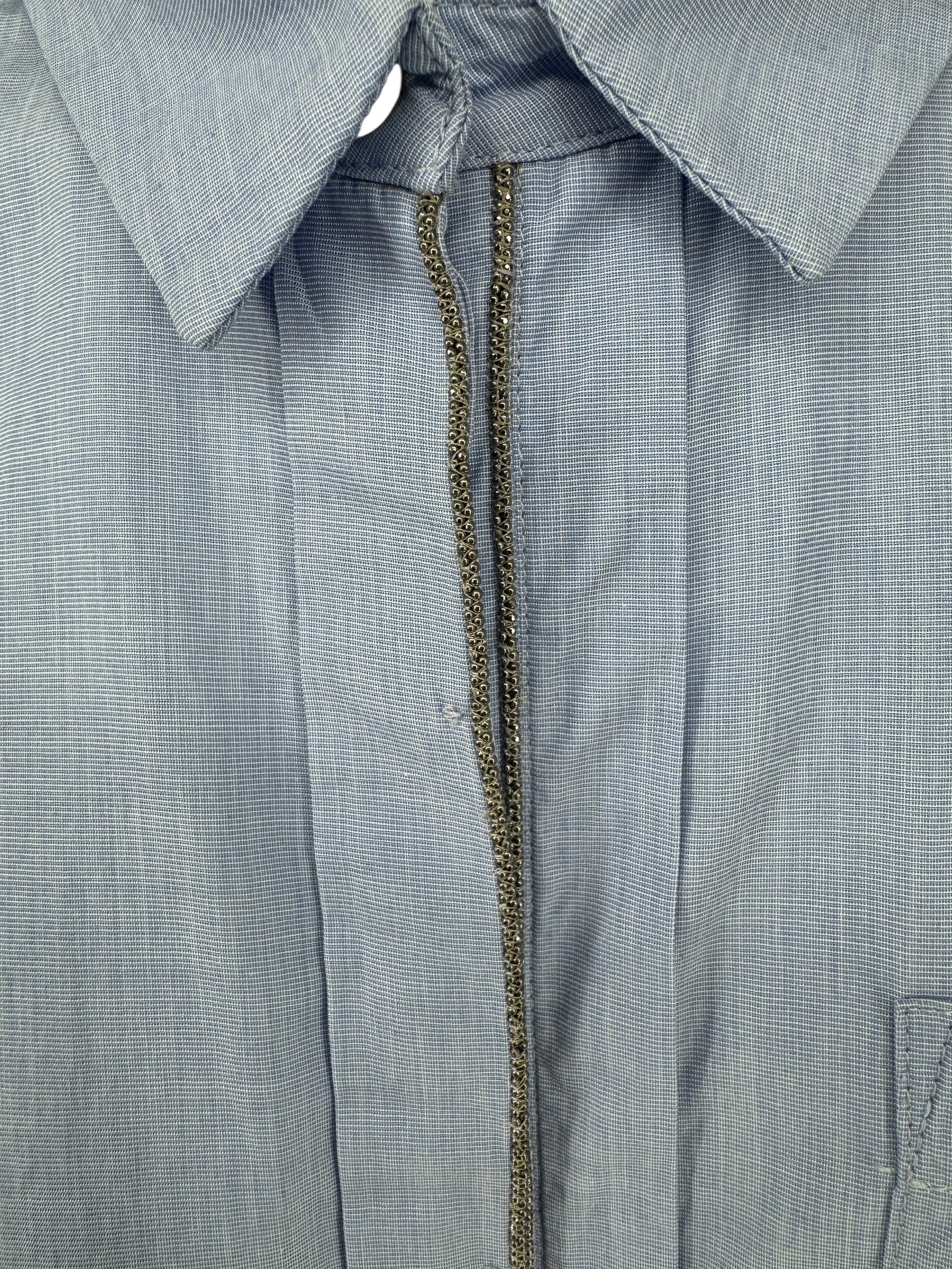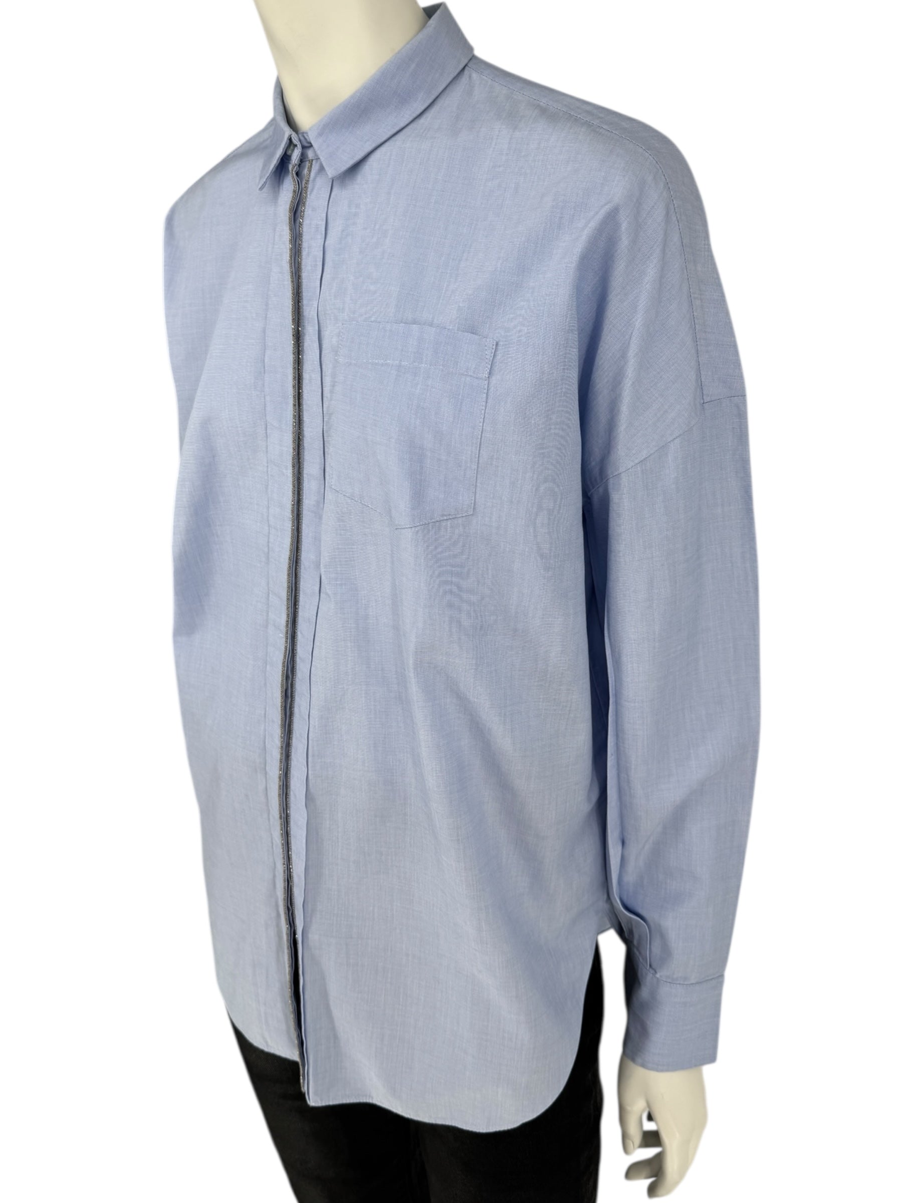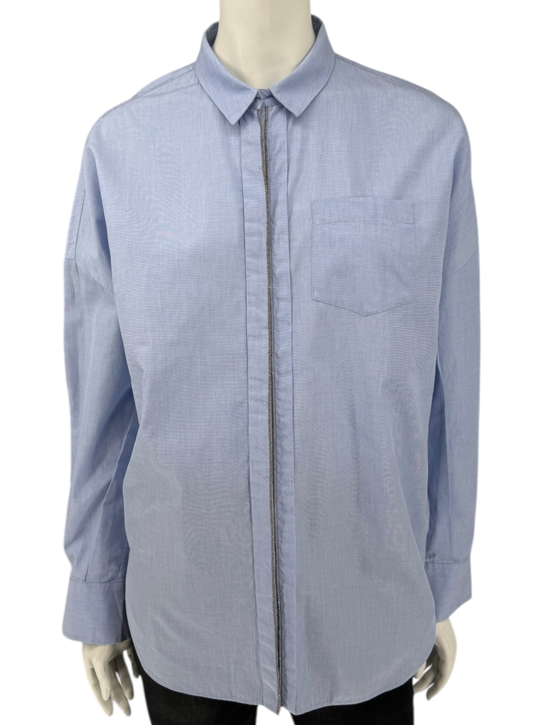 Brunello Cucinelli Light Blue Cotton Button-Front Shirt with Monili Trim – Size XL