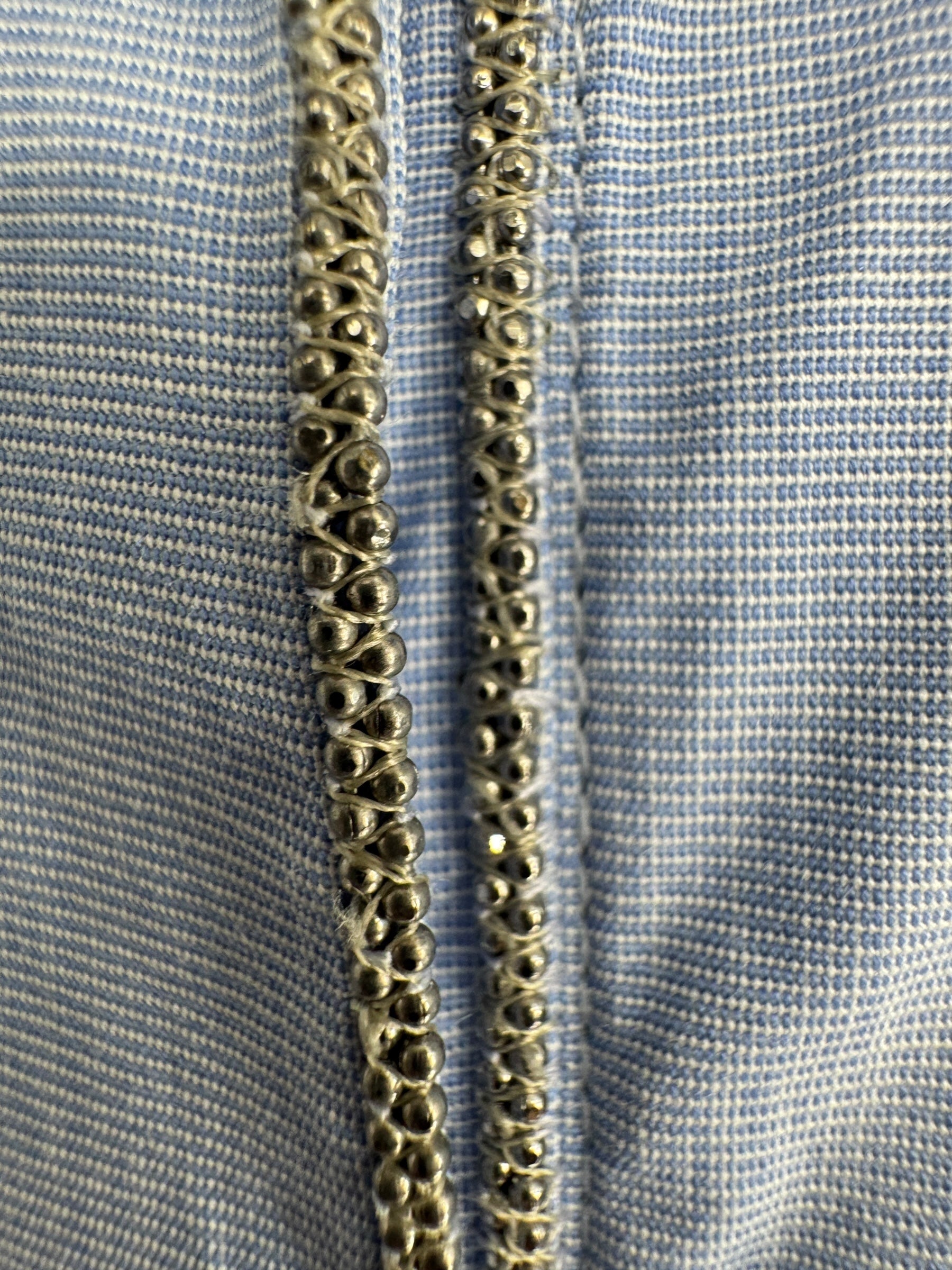 Closure: Button front with Monili chain trim detail