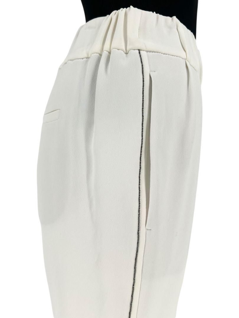 Brunello Cucinelli Ivory Cropped Trousers with Monili Trim – Size US 8 / IT 44