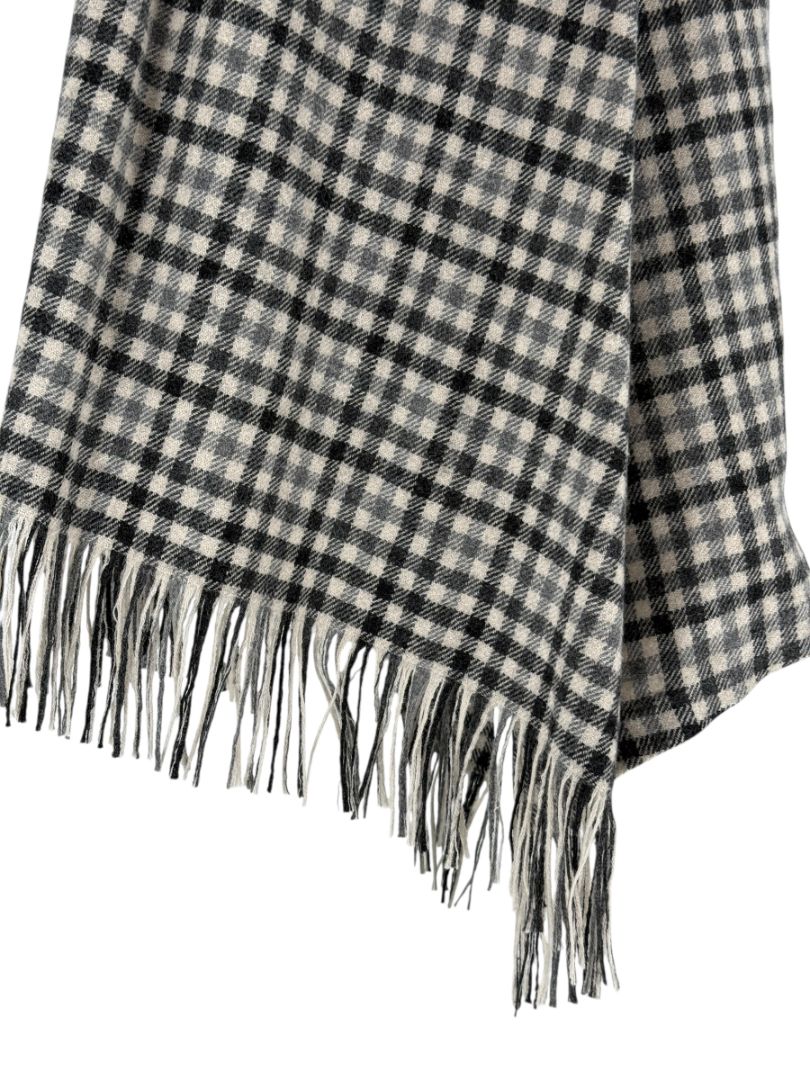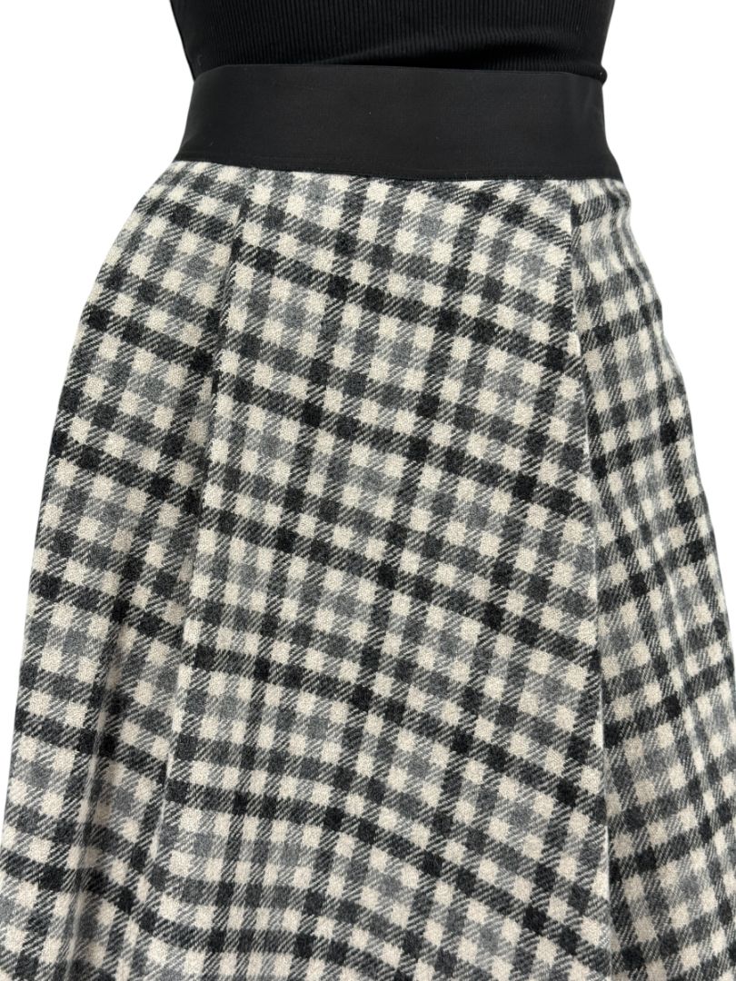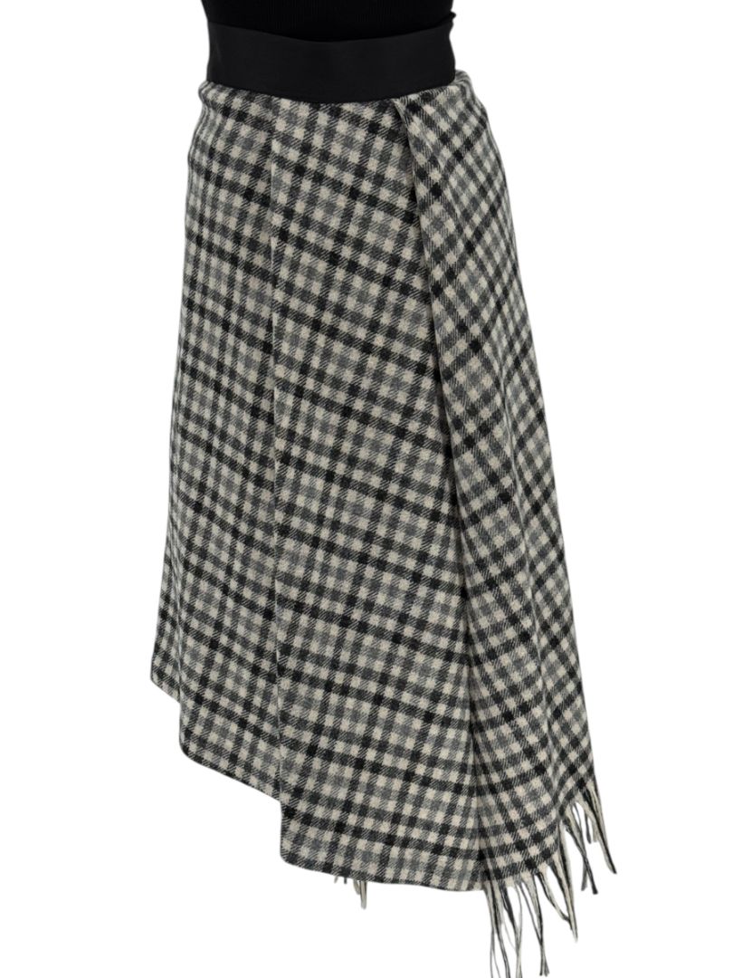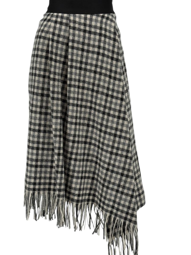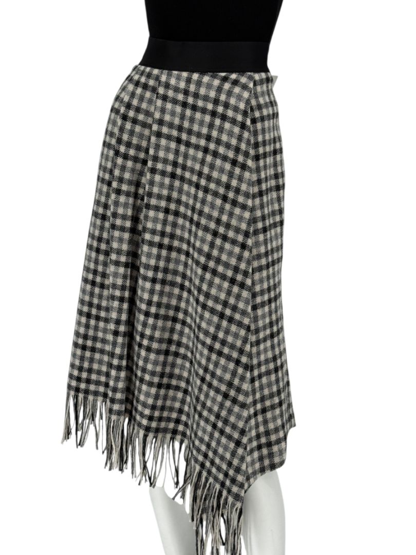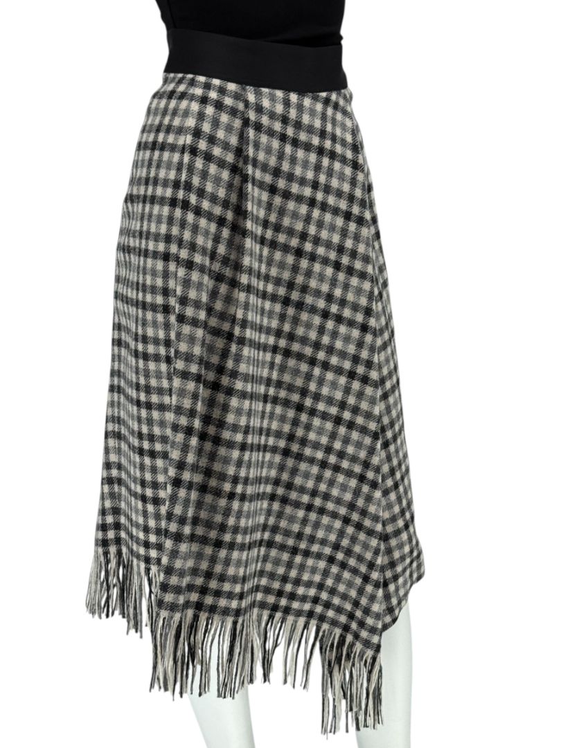 Brunello Cucinelli Black & Ivory Checked Wool Skirt with Fringe Hem – Size IT 44 (US 8)