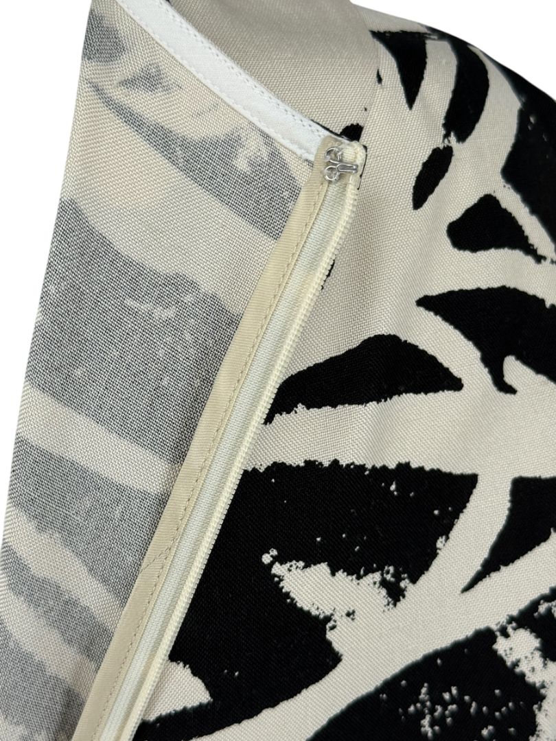 - Bold black-and-ivory floral abstract print