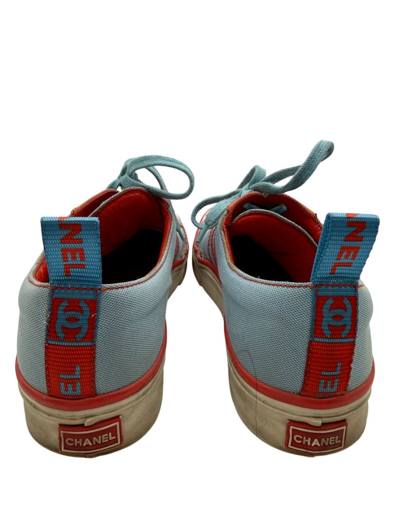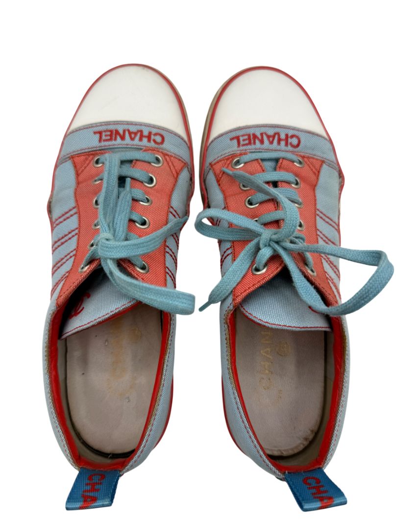 Chanel Blue & Coral Canvas Lace-Up Sneakers – Size 40