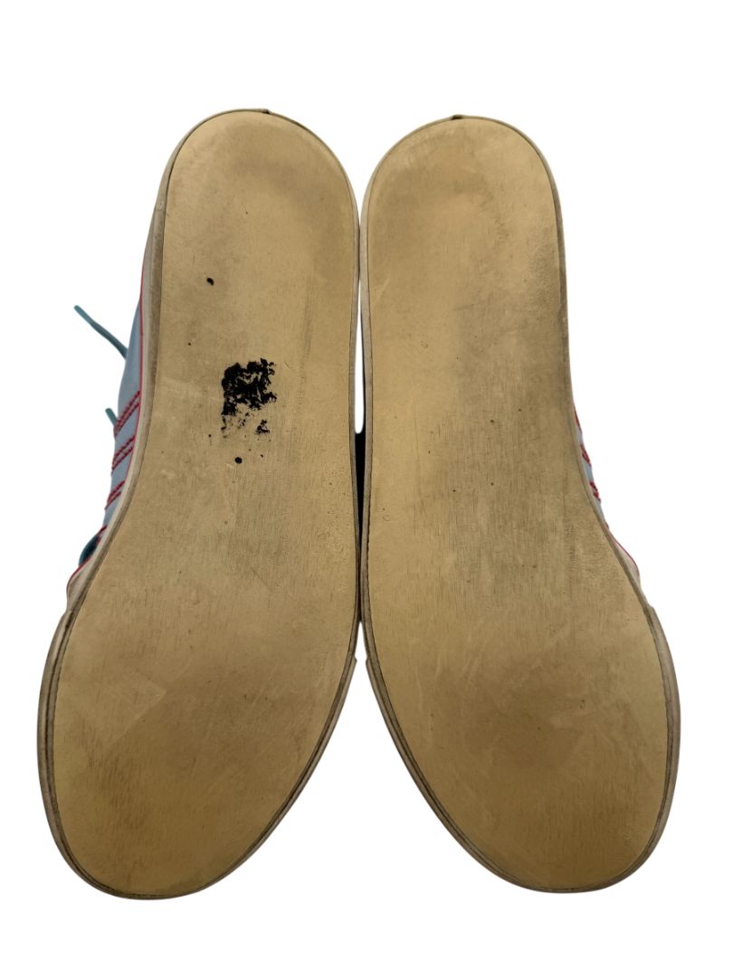 Visible wear throughout consistent with use. There is notable rubber pulling and separation along the toe crease area of the soles, along with scuffing and discoloration on the rubber midsoles. Interior shows normal wear.