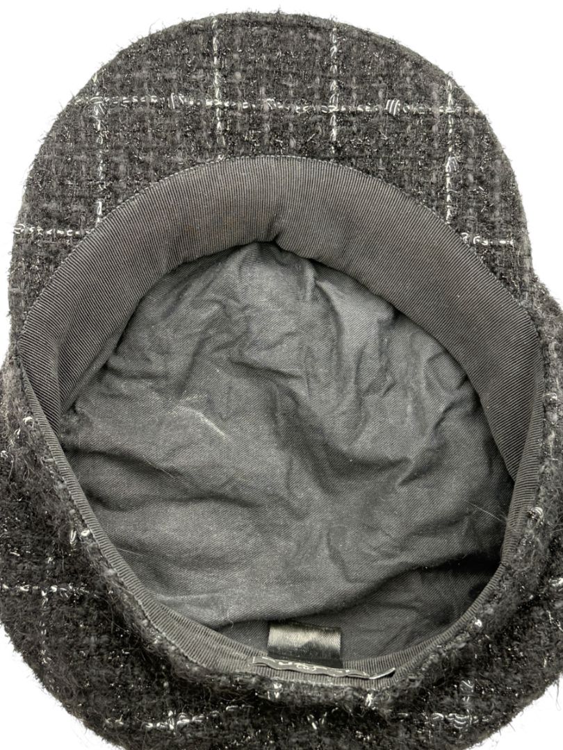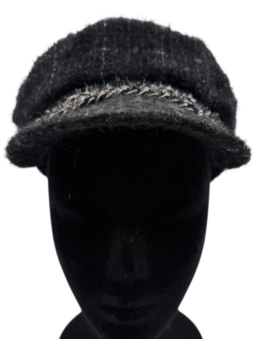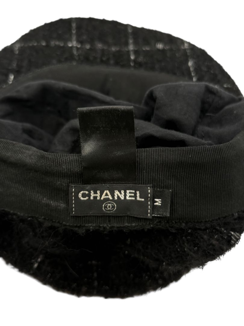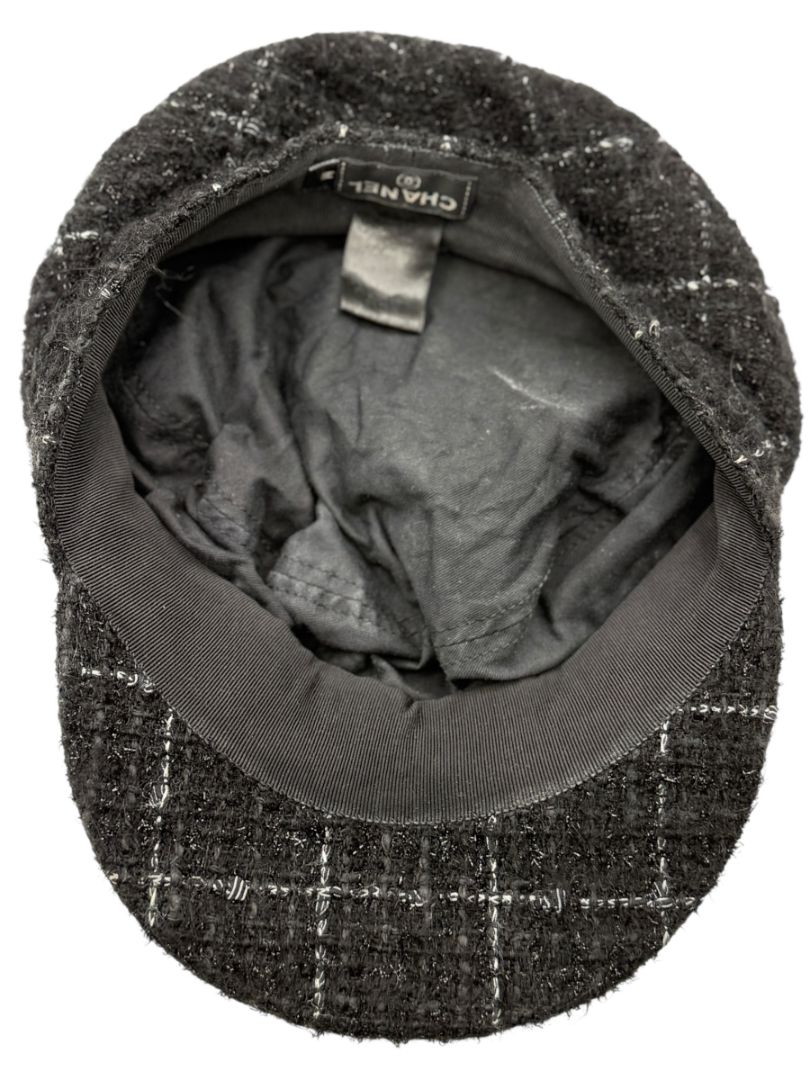 CHANEL Black Tweed Newsboy Cap with Signature Chain Trim – Very Good Pre-Owned Condition