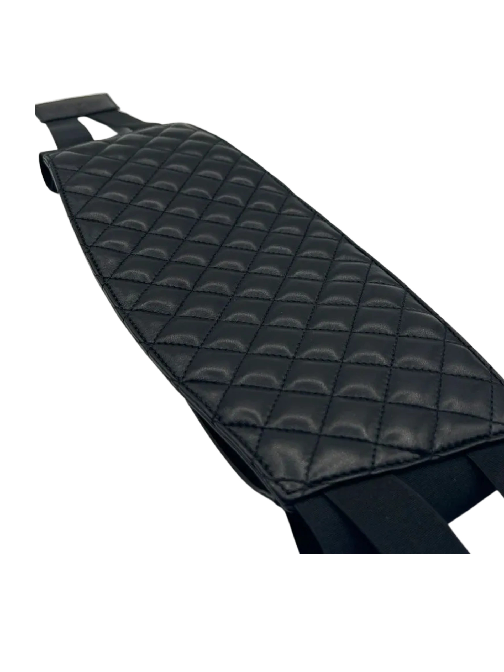 *RARE* Chanel quilted lambskin leather belt. F/W 2011 Collection by Karl Lagerfeld. Chanel Waist Belt, Runway Looks 18 & 44 Length: 35.75"/ Width: 5.25" Marked as size small, waist adjusts with two stamped "Chanel" Elasticized Velcro Straps. In Very Good Condition > Excellent Condition, No marks/scratches/damages.