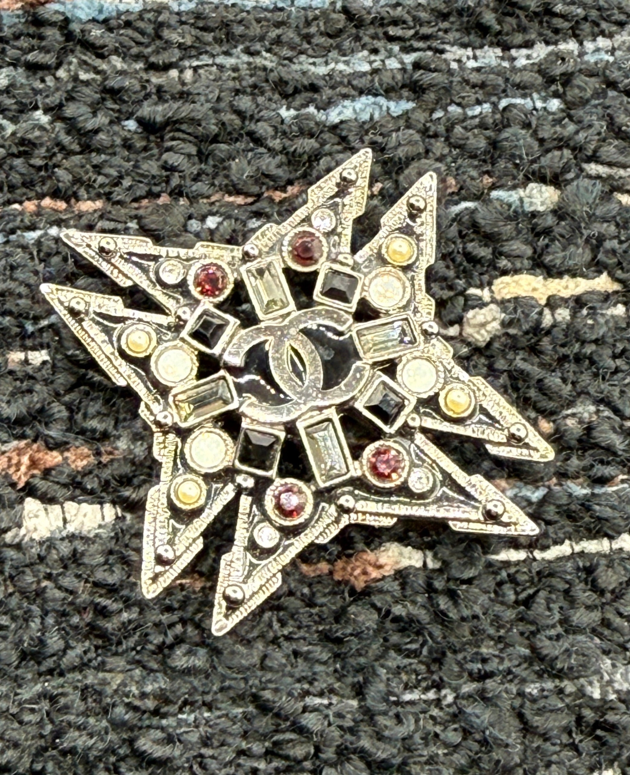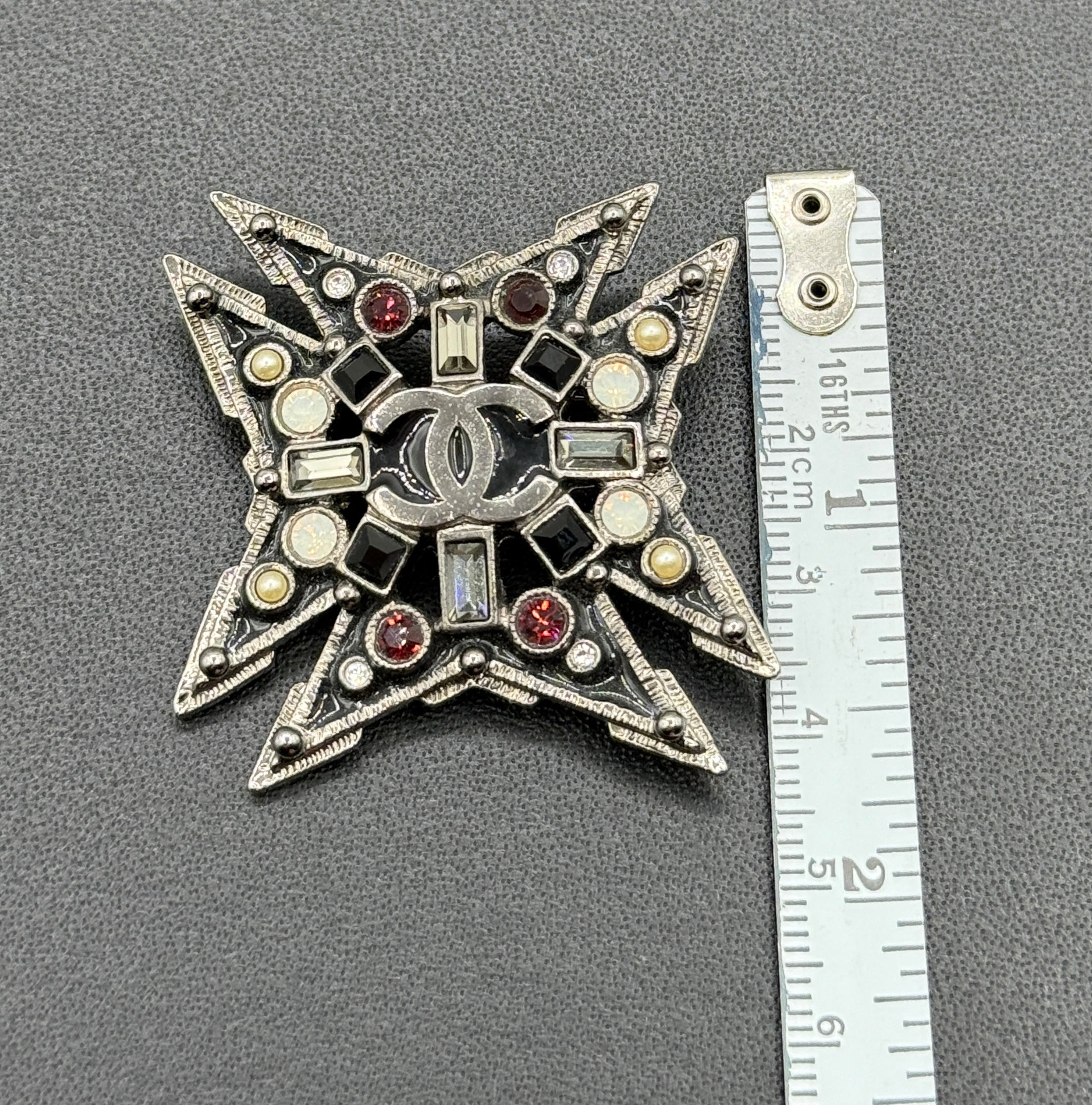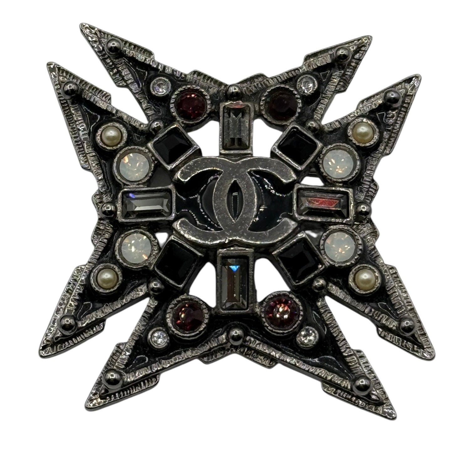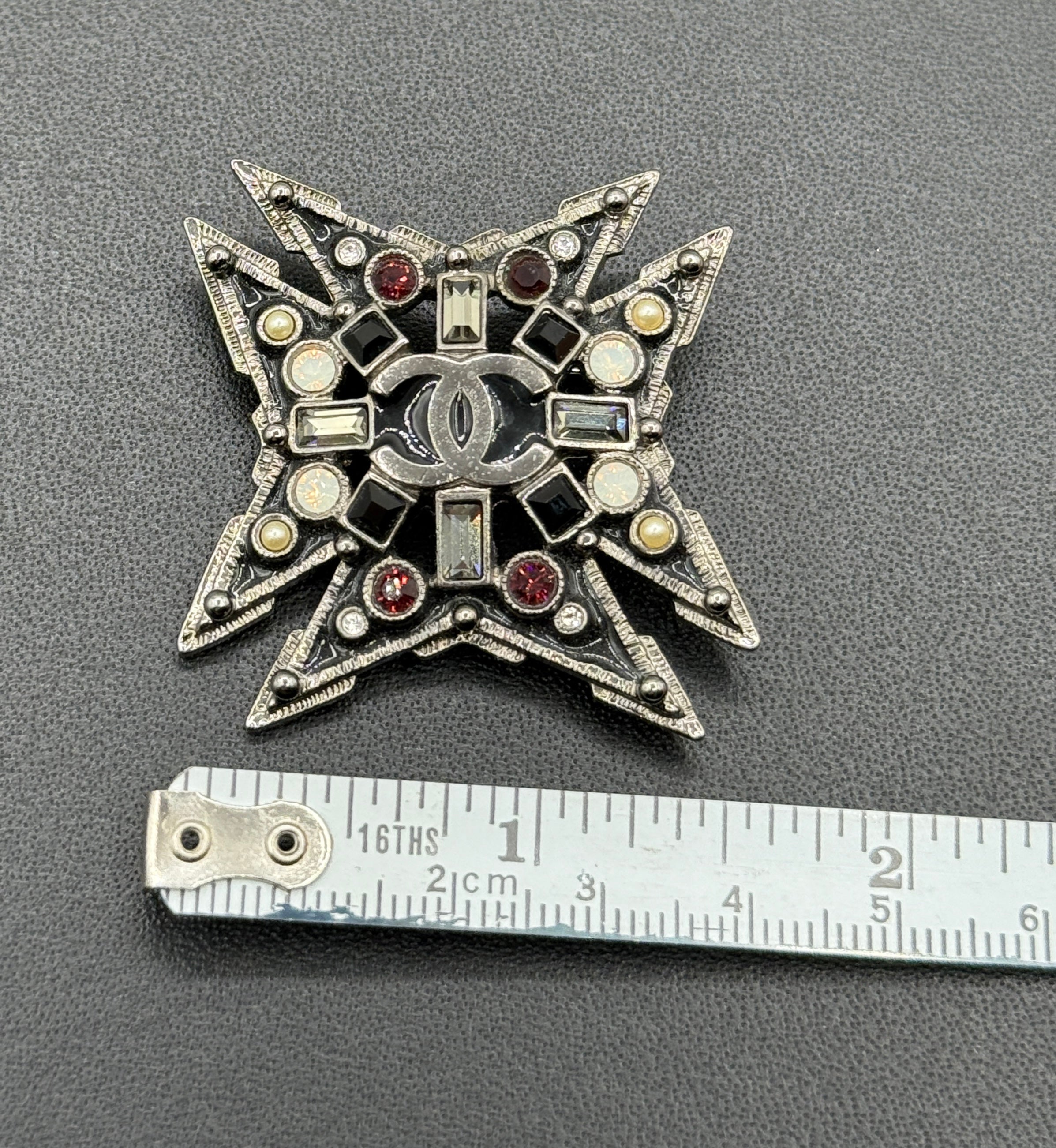 Chanel Strass & Faux Pearl Maltese Cross CC Brooch Pendant