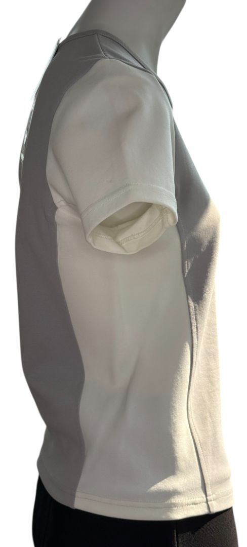 Chanel Two-Tone Grey & Cream Logo Tee – Size FR 42 (US 8)