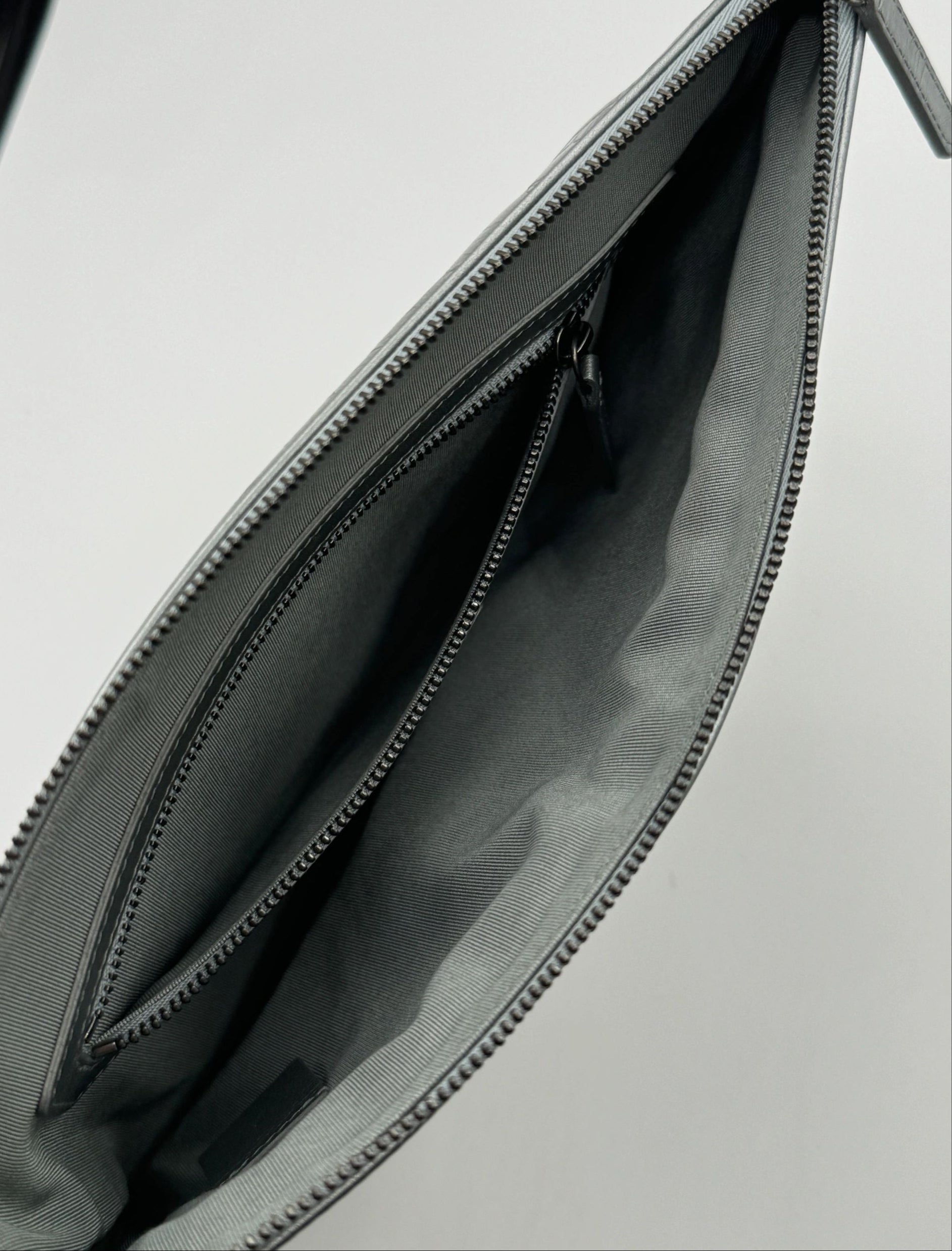 Silver-tone hardware Top zip closure 1 main compartment 1 interior zip pocket 1 back slip pocket Made in FranceMeasurements- Height: 8.25"