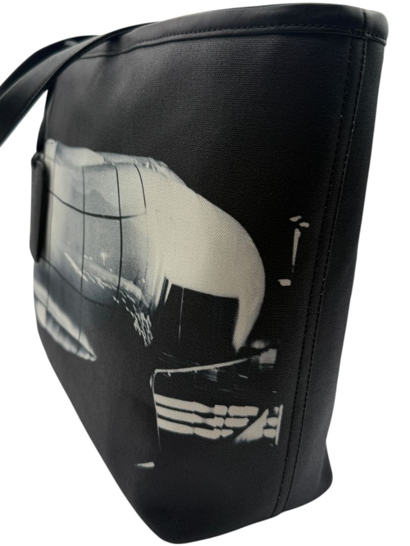 Spacious and structured, this oversized tote blends art, fashion history, and everyday functionality.
