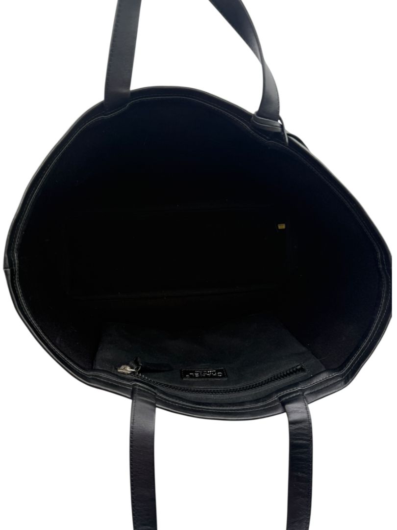 No holes, tears, or odors. No visible flaws. The coated canvas body is clean and vibrant with only the lightest shopwear consistent with minimal handling. Leather trim and handles remain structured and beautiful. Chanel authenticity tab is intact inside. Overall exceptional presentation.