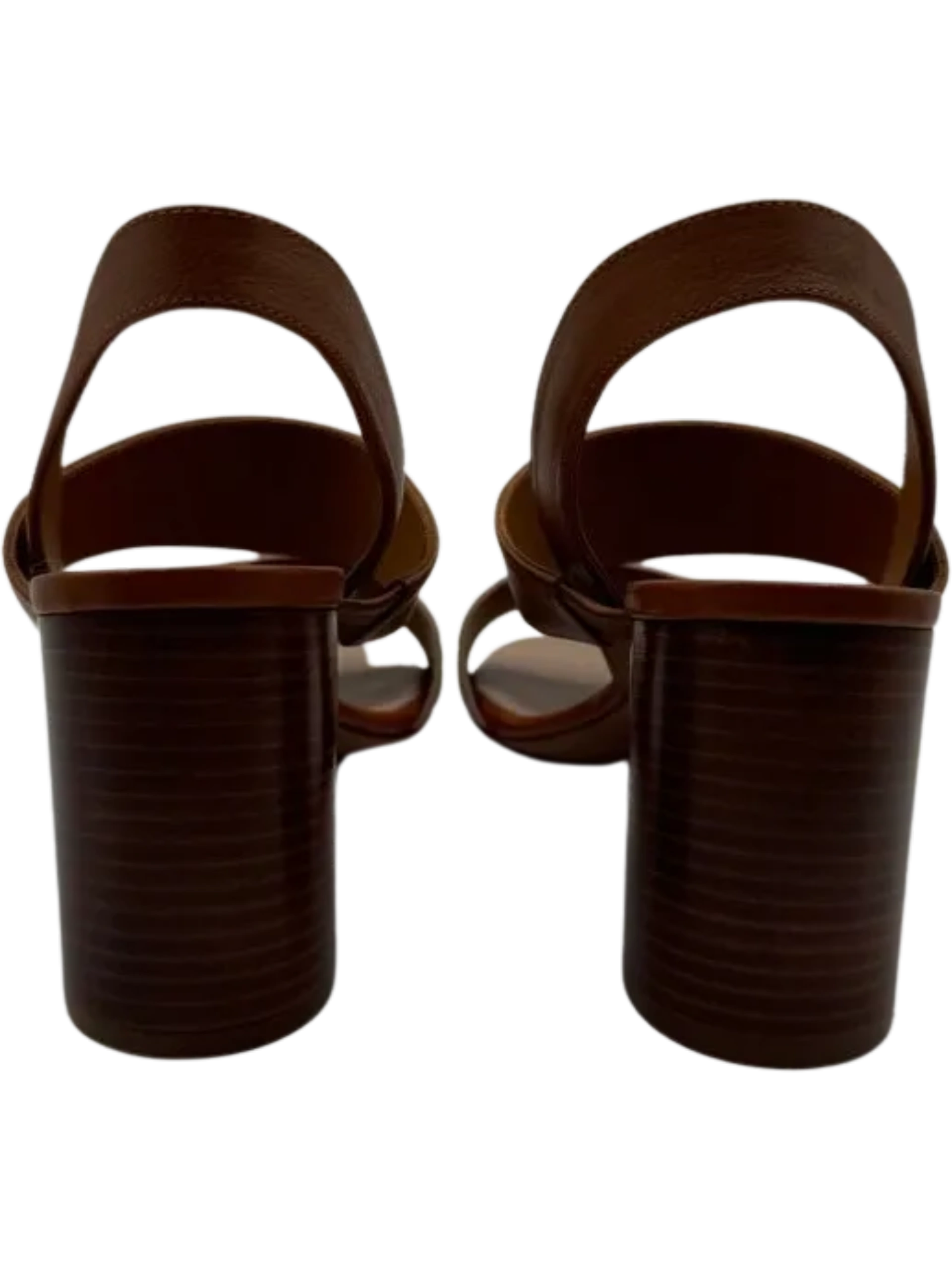 Camel and nude leather, Wooden block heel, 3'', Strap bands open toe.