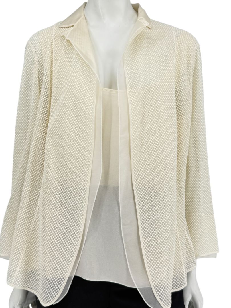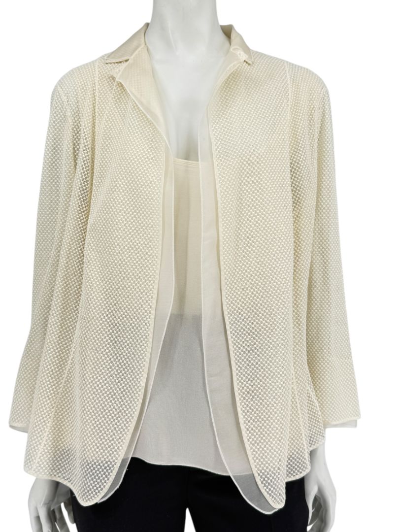 Akris Ivory Tank Camisole & Mesh Jacket Twin Set – Size US 16 (F 48 / D 46)