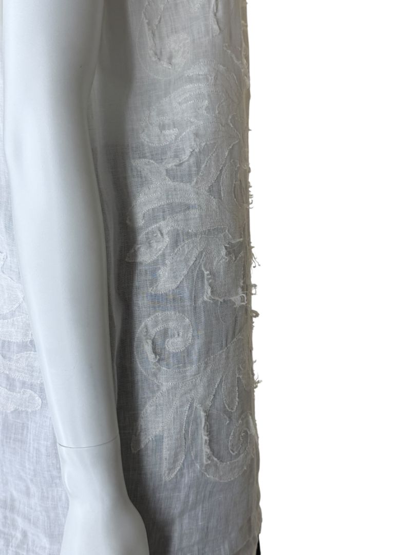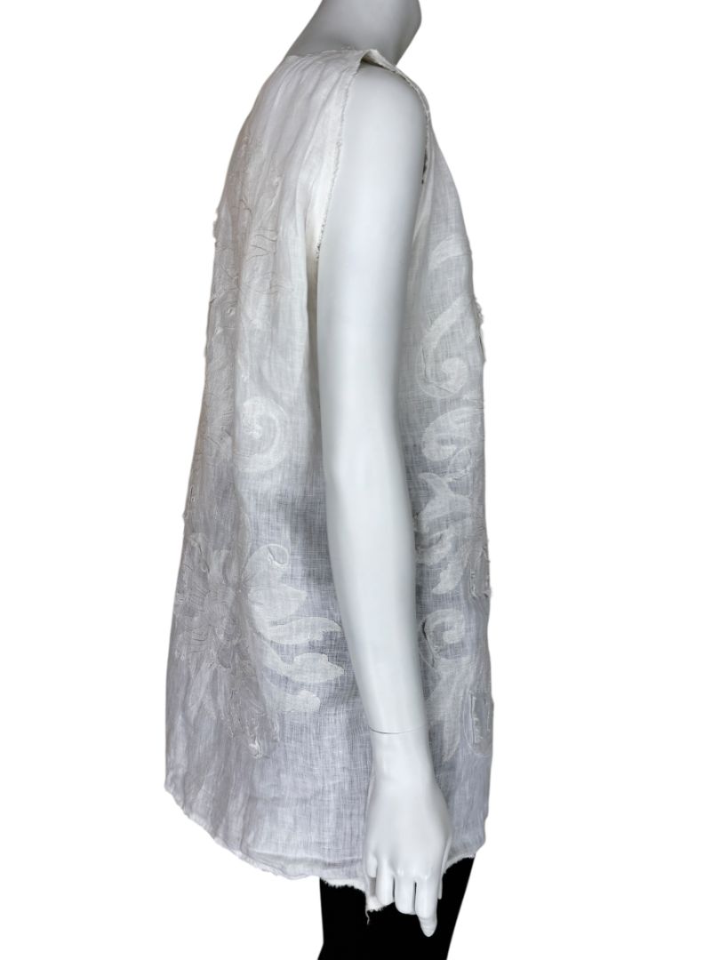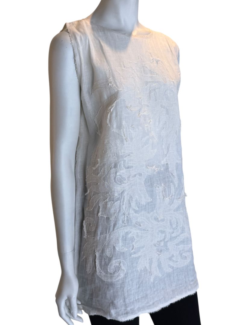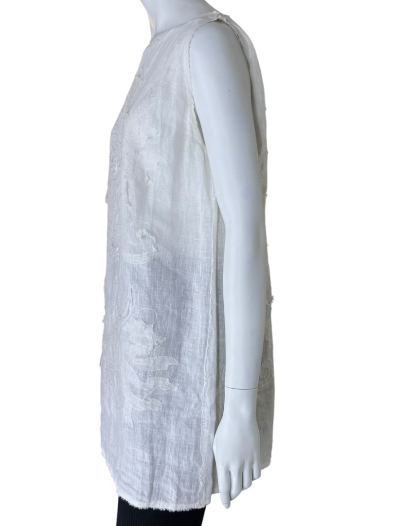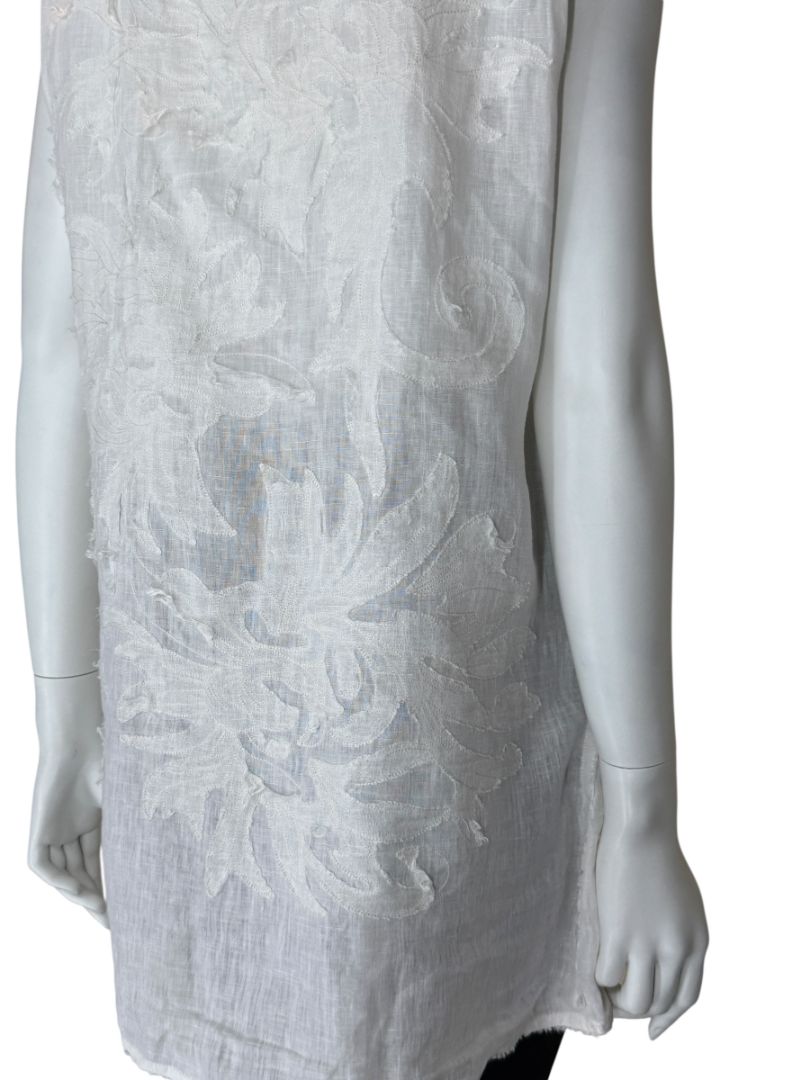 Fendi White Linen Sleeveless Tunic with Textured Floral Appliqué – Size See Measurements