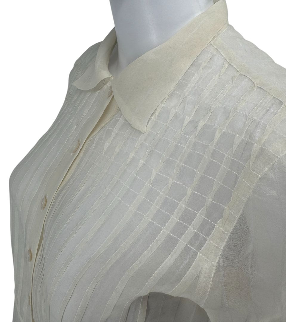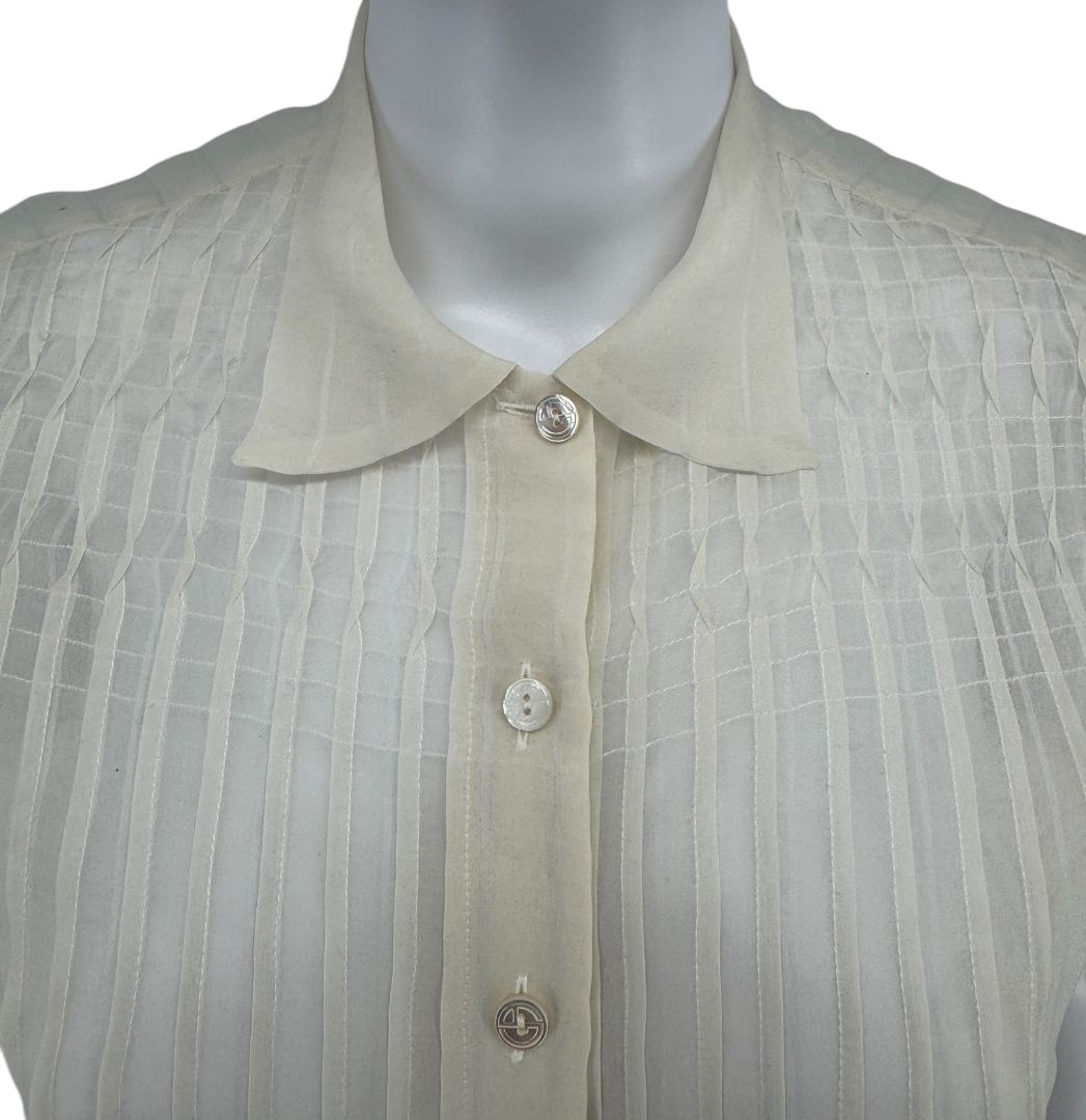 Giorgio Armani Sheer Silk-Blend Pleated Blouse – Size 38 – Made in Italy