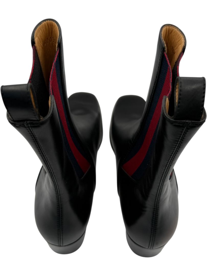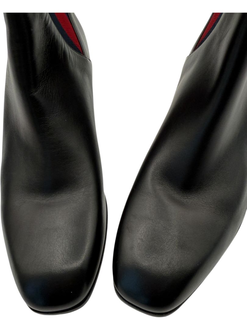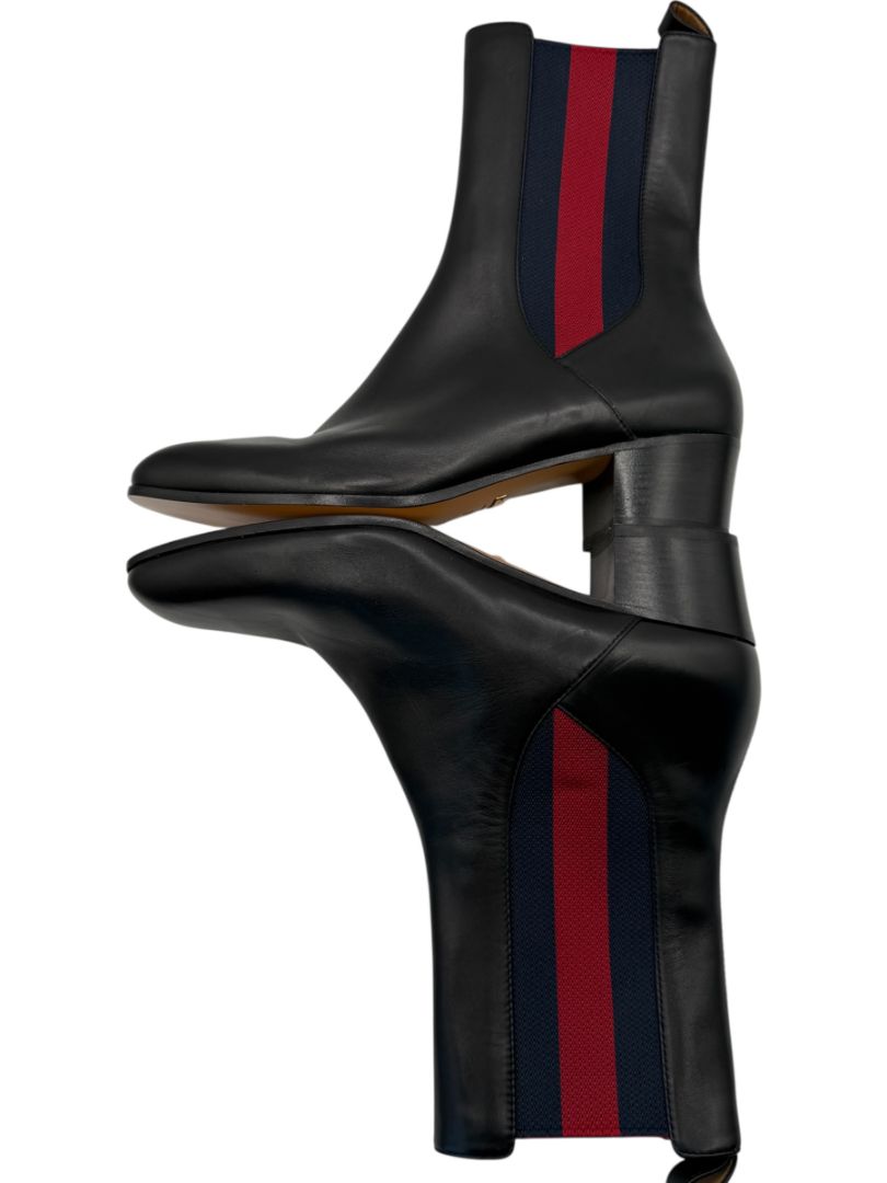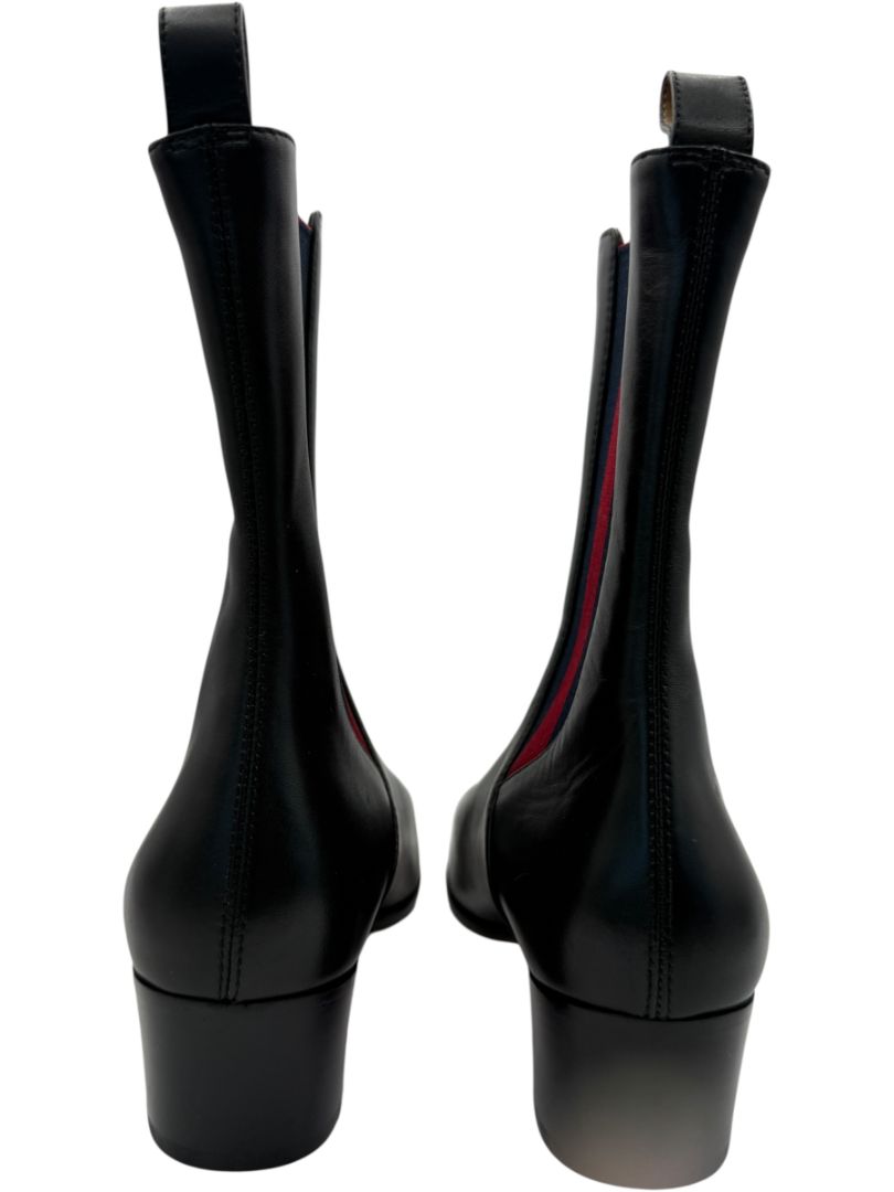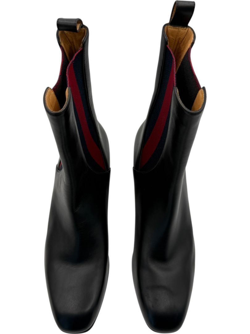 Gucci Black Leather Chelsea Boots with Web Detail – Size 39.5