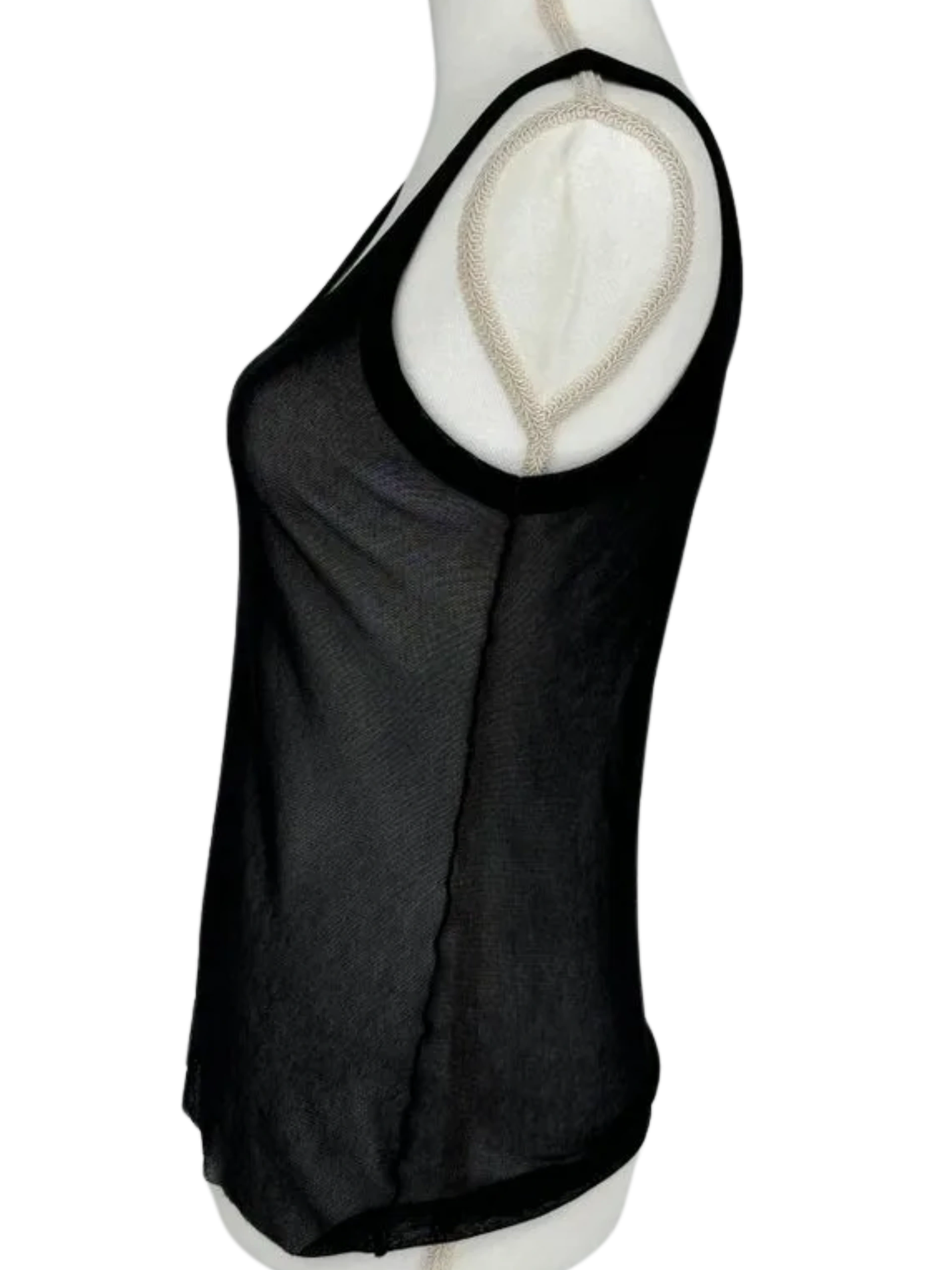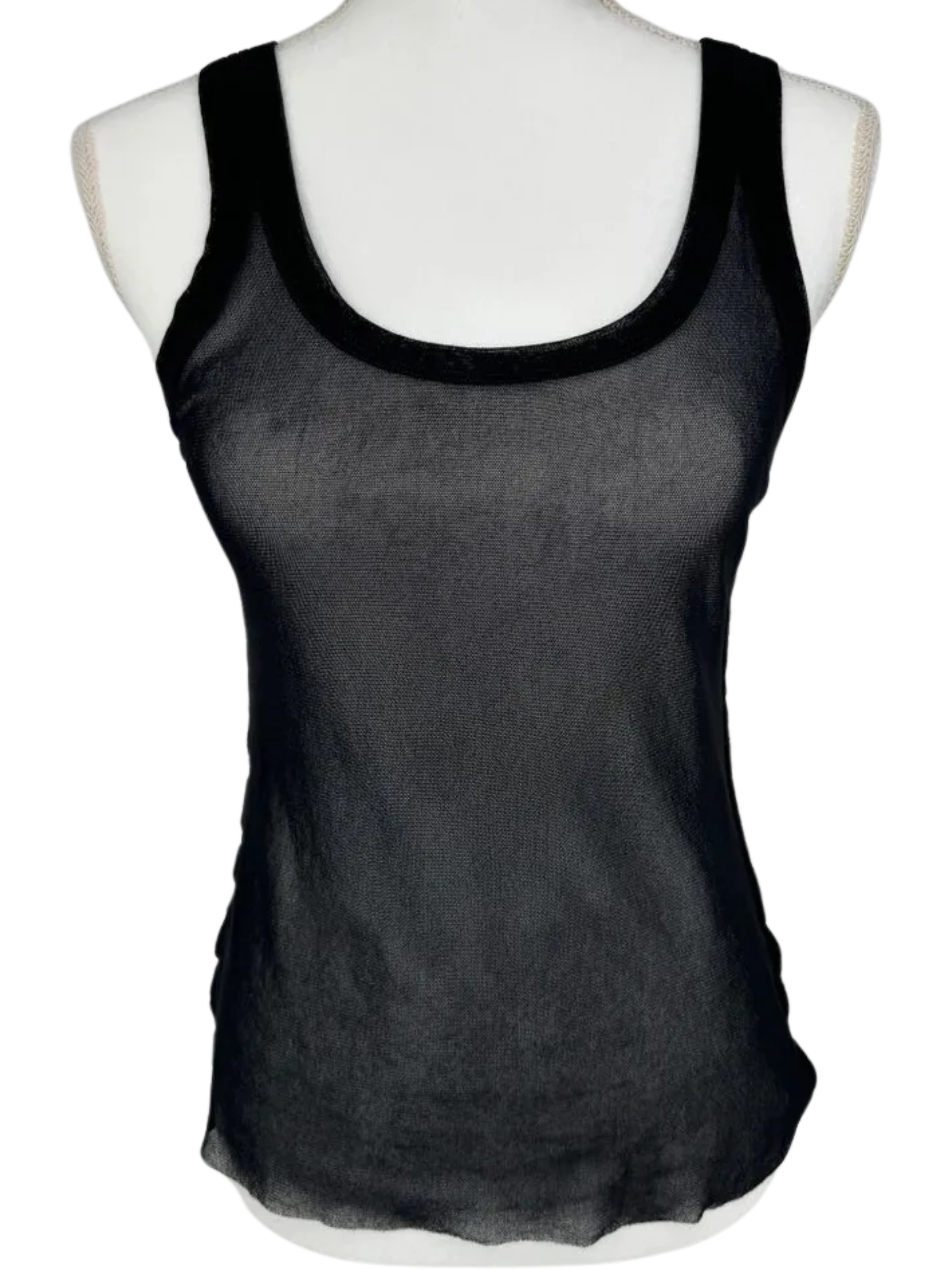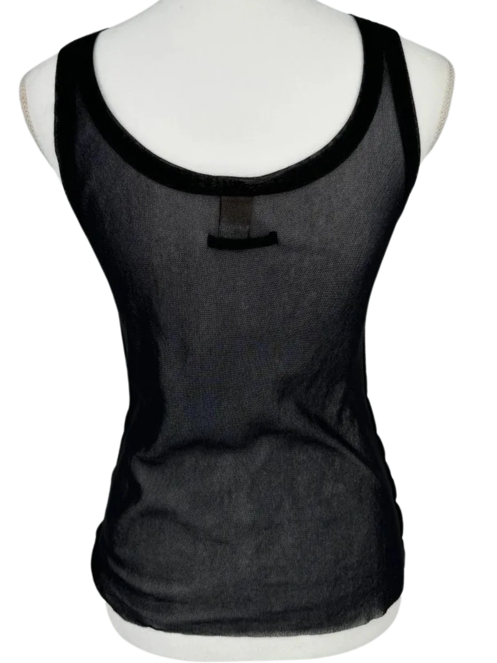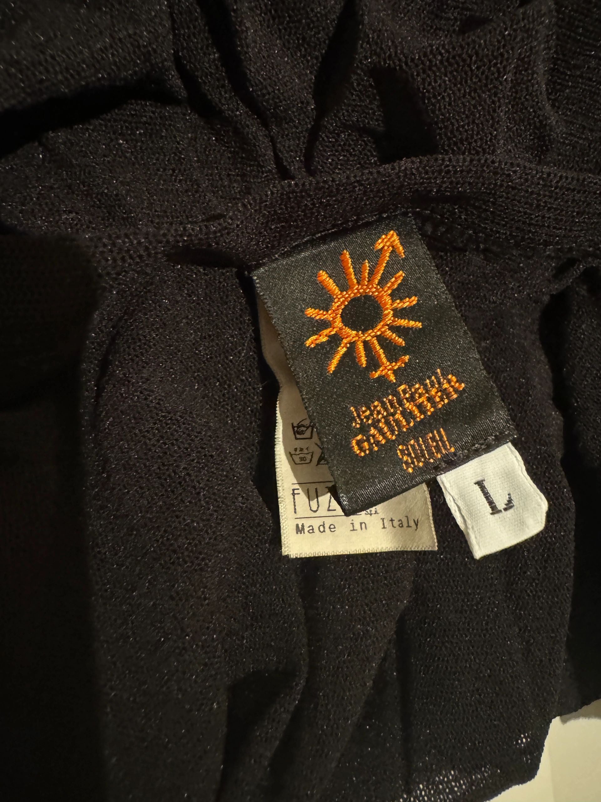 Black Jean Paul Gaultier Signature Mesh Tank Top,100% Nylon, Made in Italy, Size Large, Amazing Condition, Tag on back side below neck. Measurements: Bust/Chest: 14" Waist:12.5" Front Length:16.5" Shoulder:9" Back Length:16.5" Hip:15"