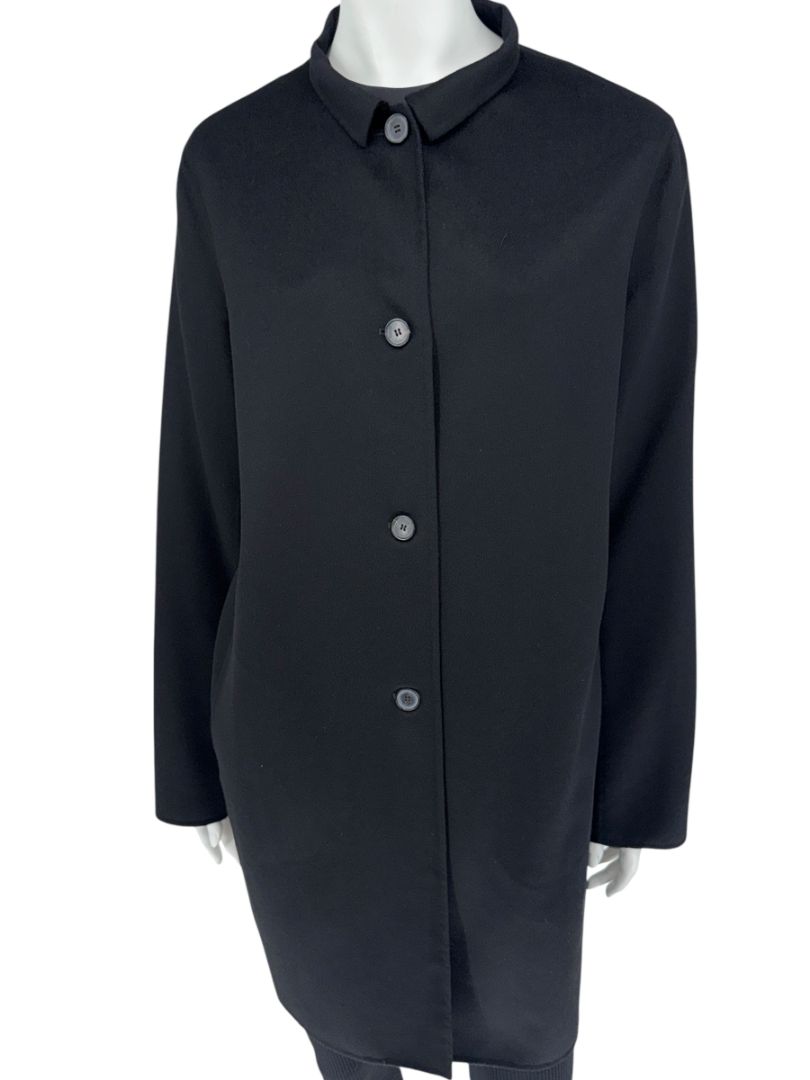 • Jil Sander Black Cashmere Collarless Coat – Size 38 IT