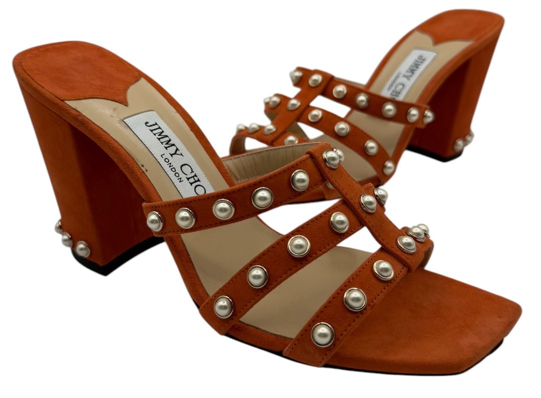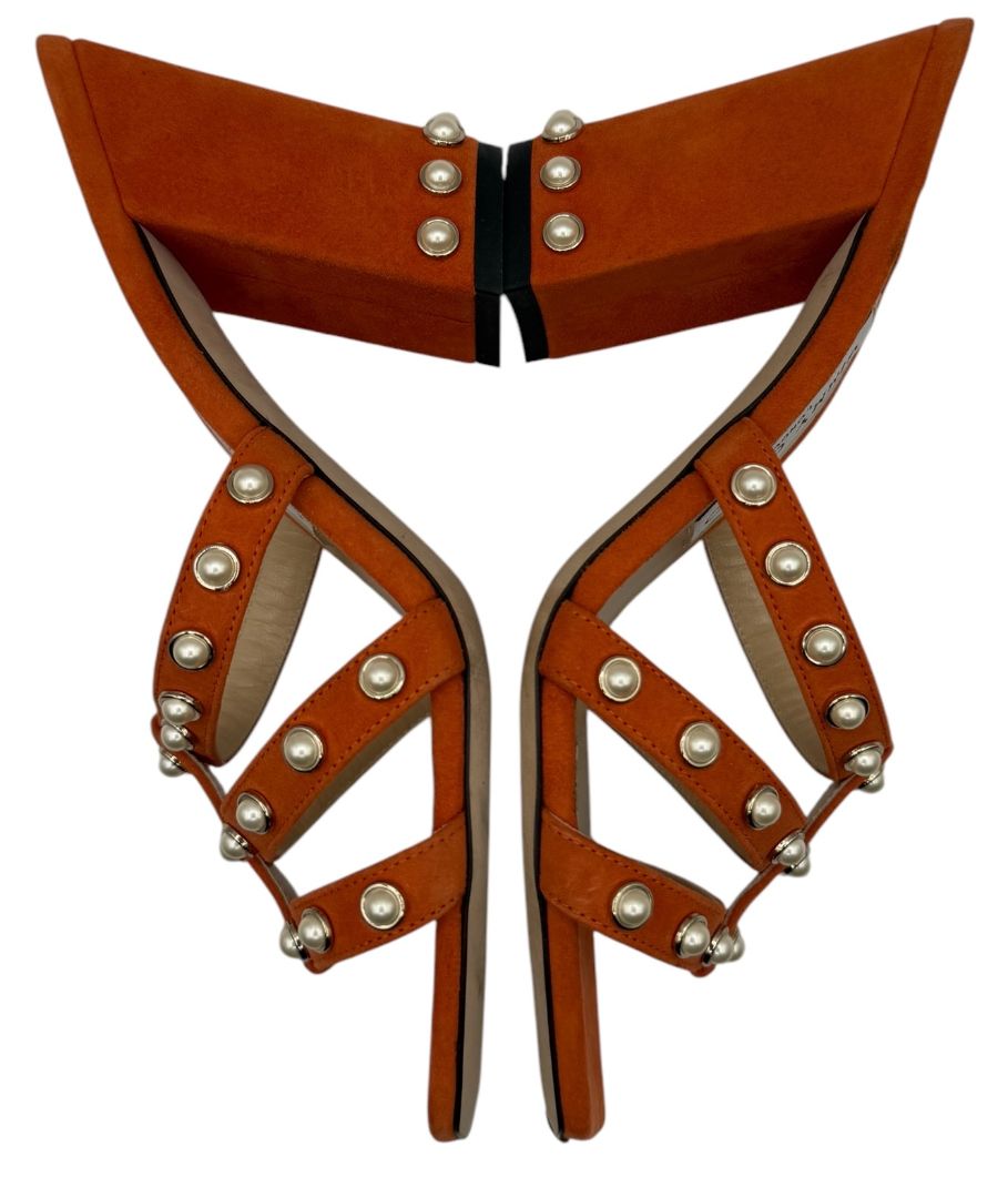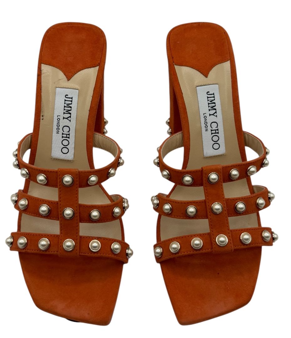 Jimmy Choo Hazal Faux Pearl Embellished Leather Sandals - Size 37