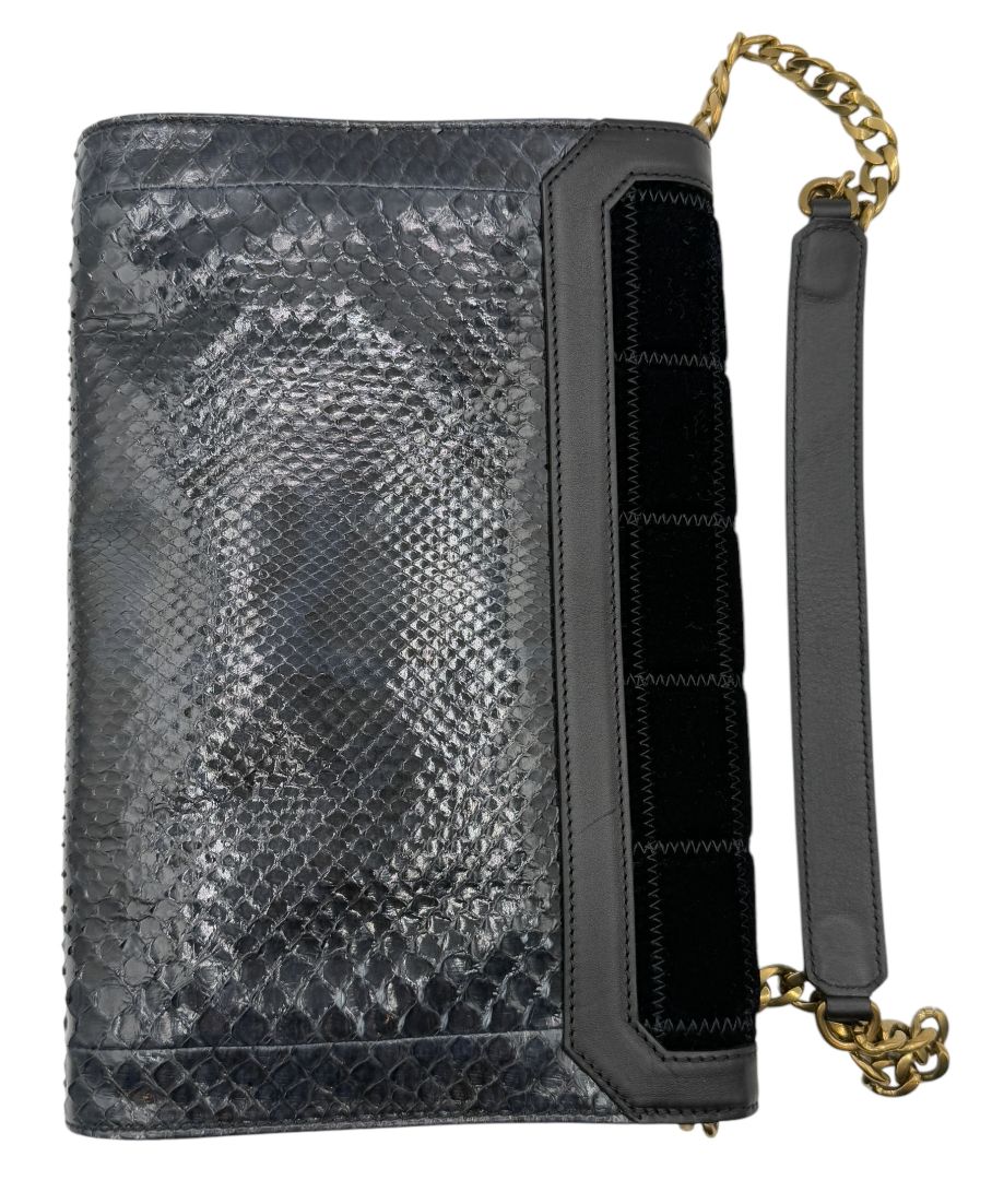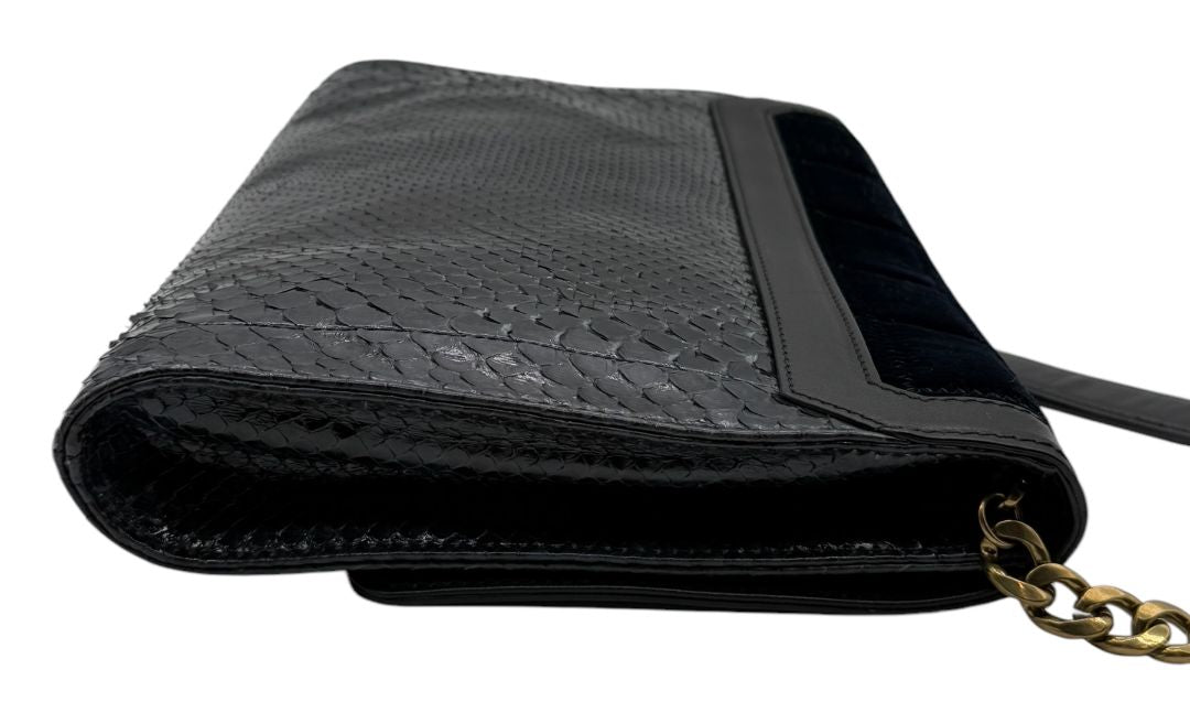 Jimmy Choo Navy Velvet & Snakeskin Chain Shoulder Bag