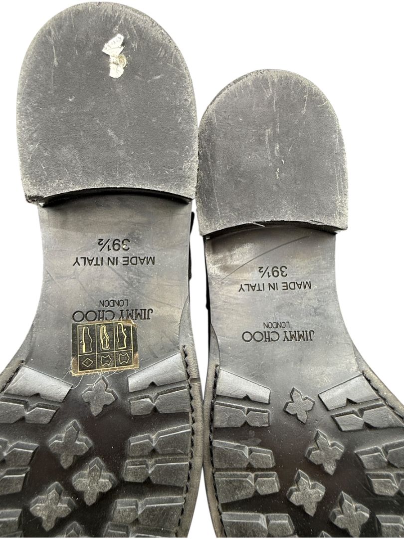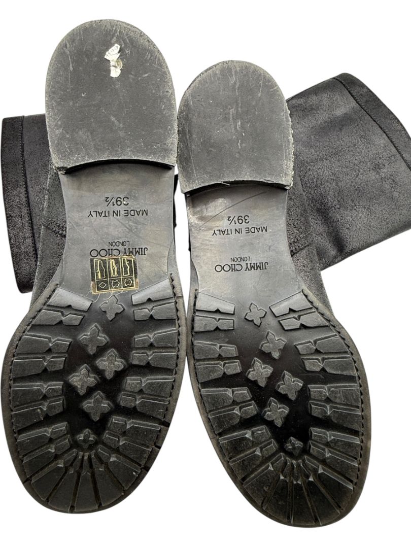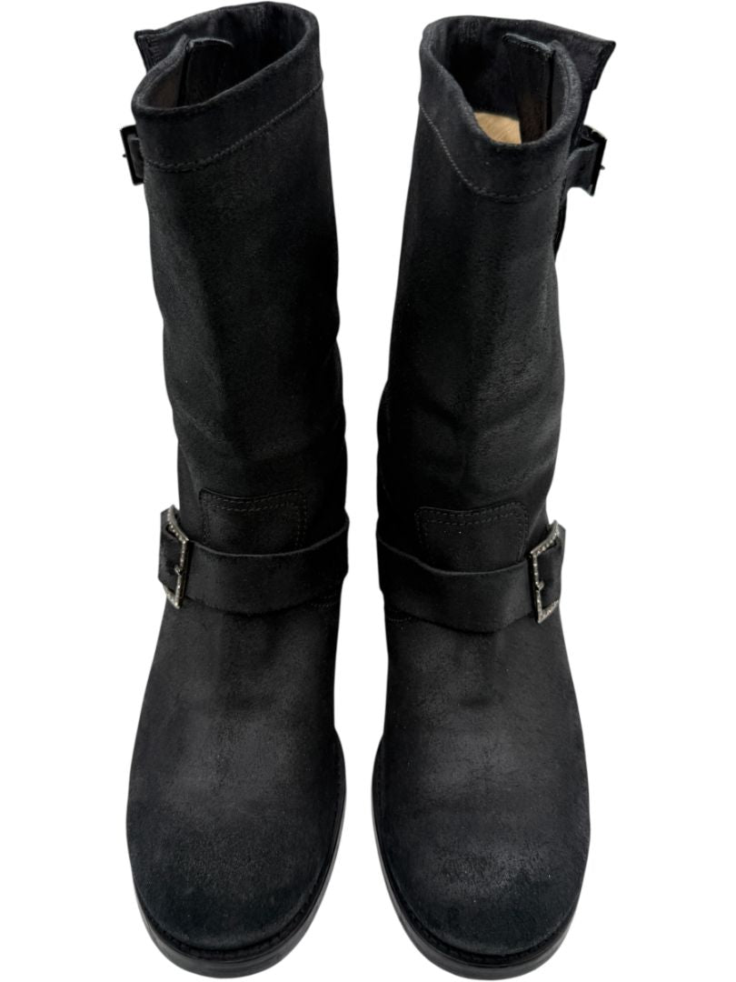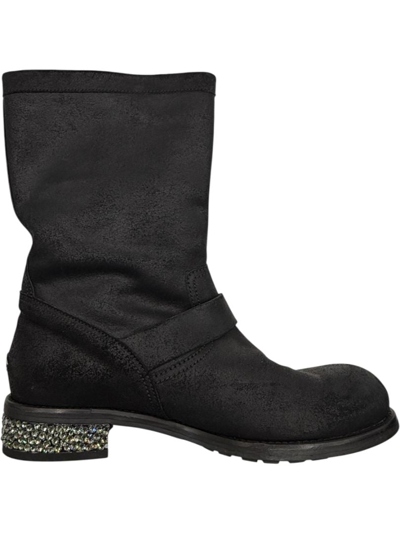 Jimmy Choo Black Suede Buckle Boots with Crystal Heels – Size 39.5