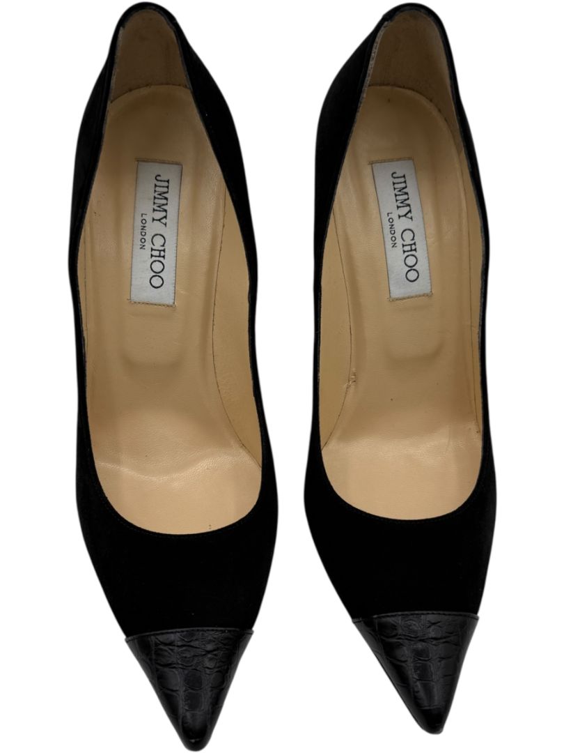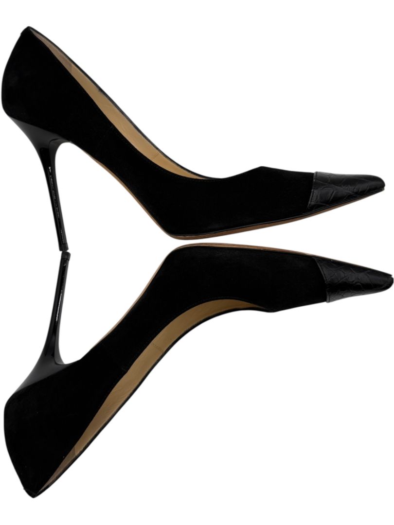 Jimmy Choo Black Suede & Croc-Embossed Leather Pointed Toe Pumps - Size 39