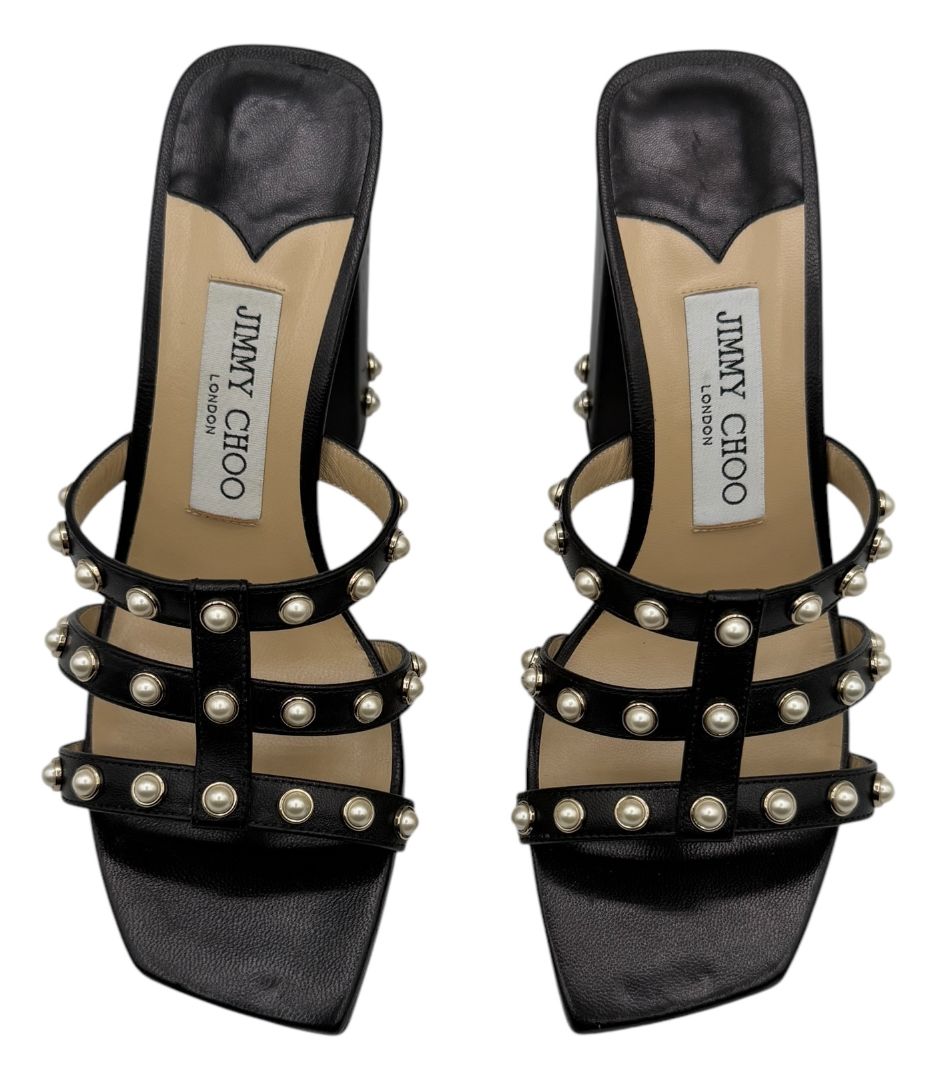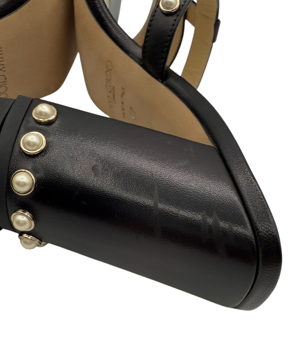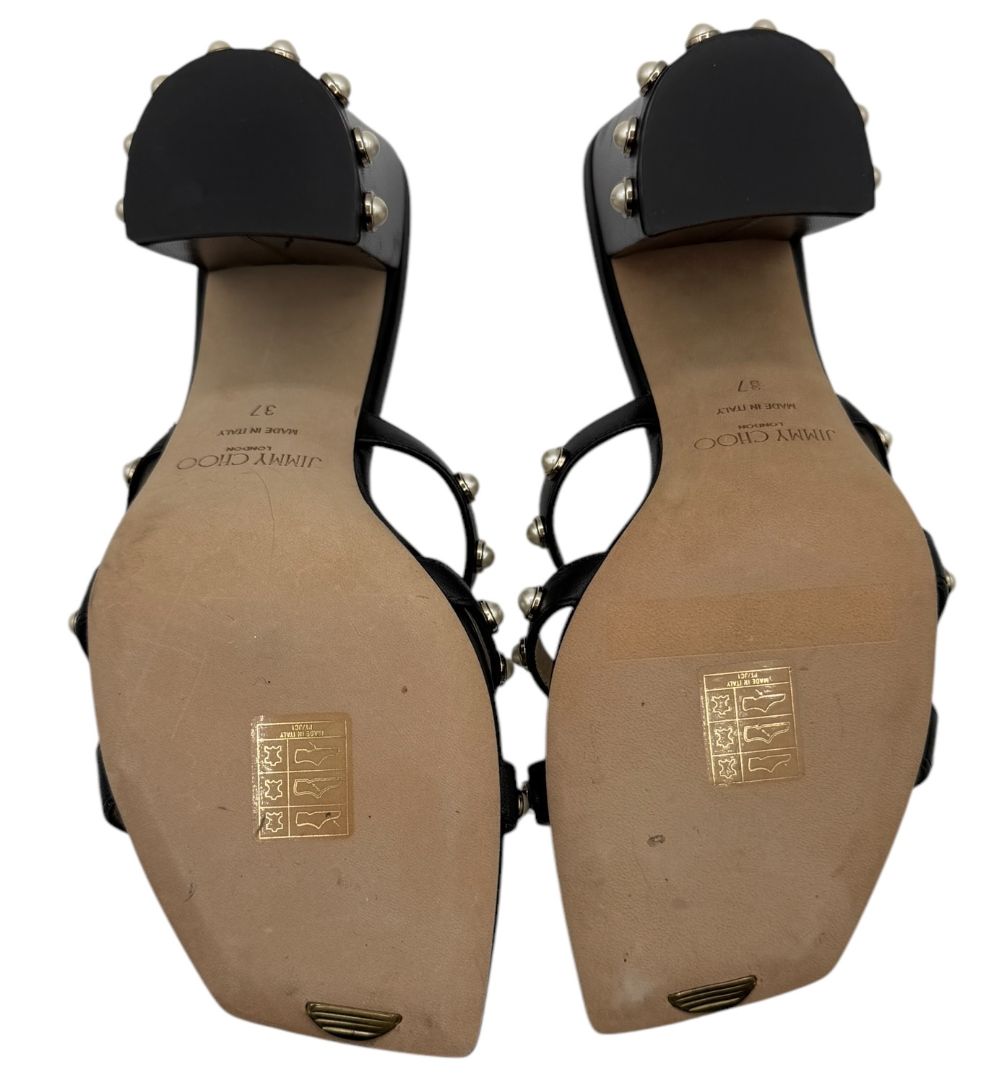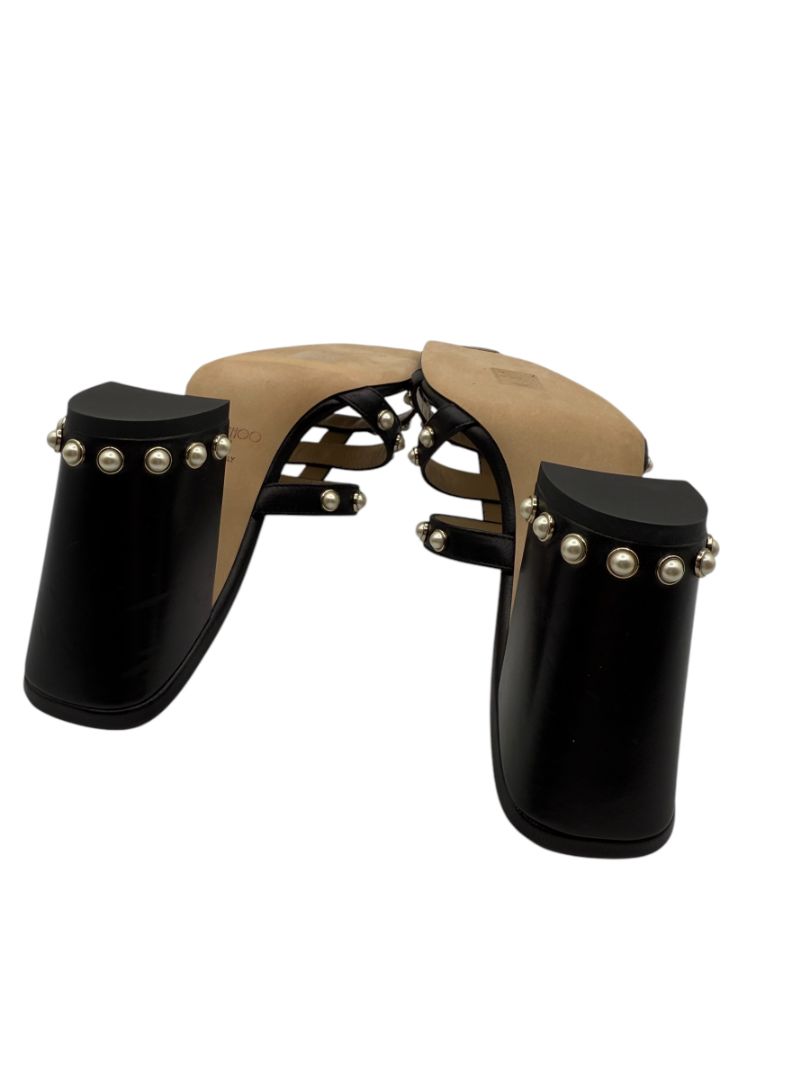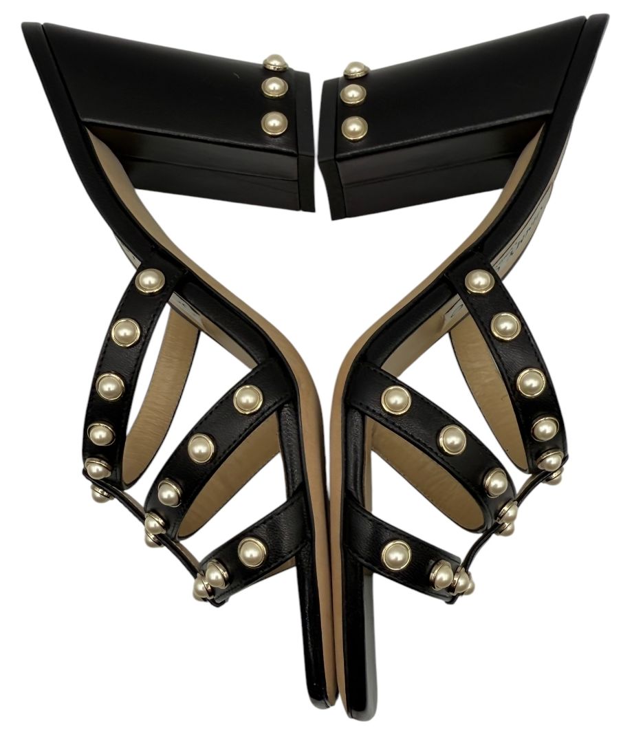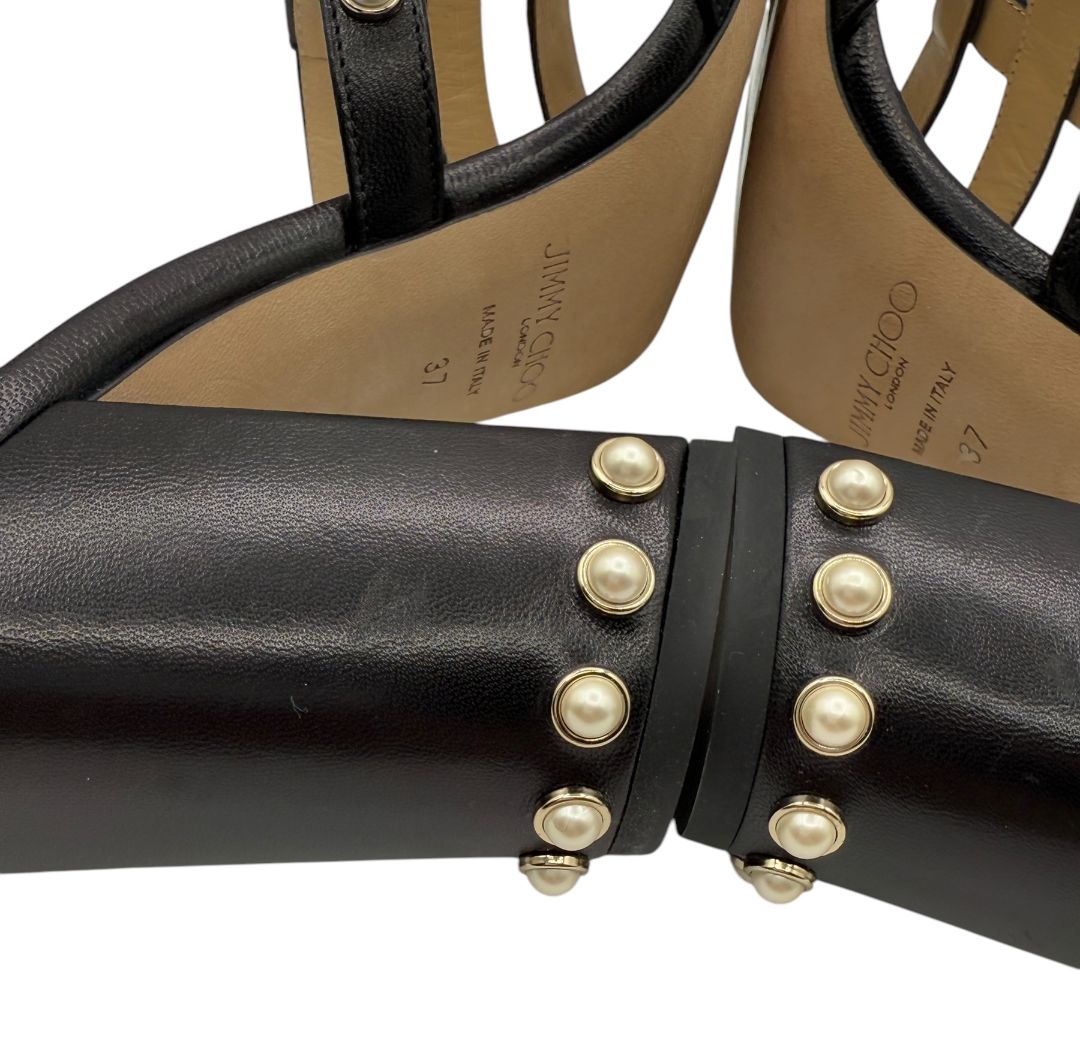 Jimmy Choo Hazal Faux Pearl Embellished Leather Sandals - Size 37