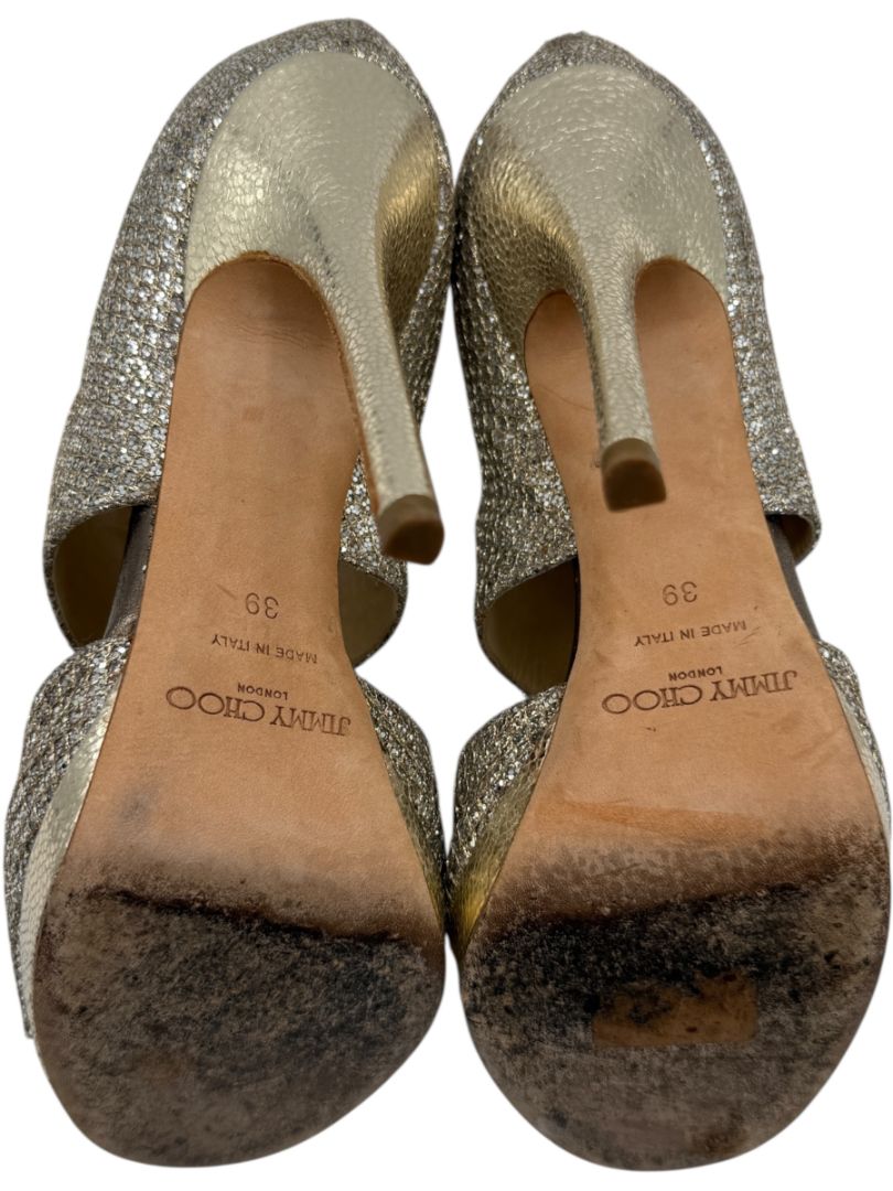 Jimmy Choo Glitter-Covered Gold Platform Heels – Size 39