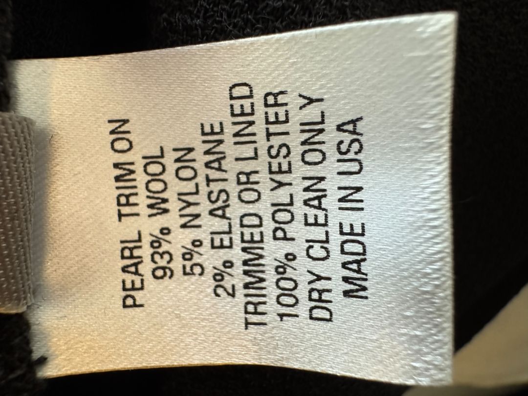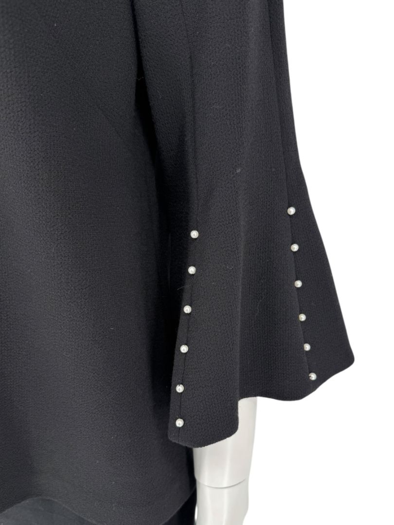 Lela Rose Black Wool-Blend Bell Sleeve Top with Pearl Trim – Size 6