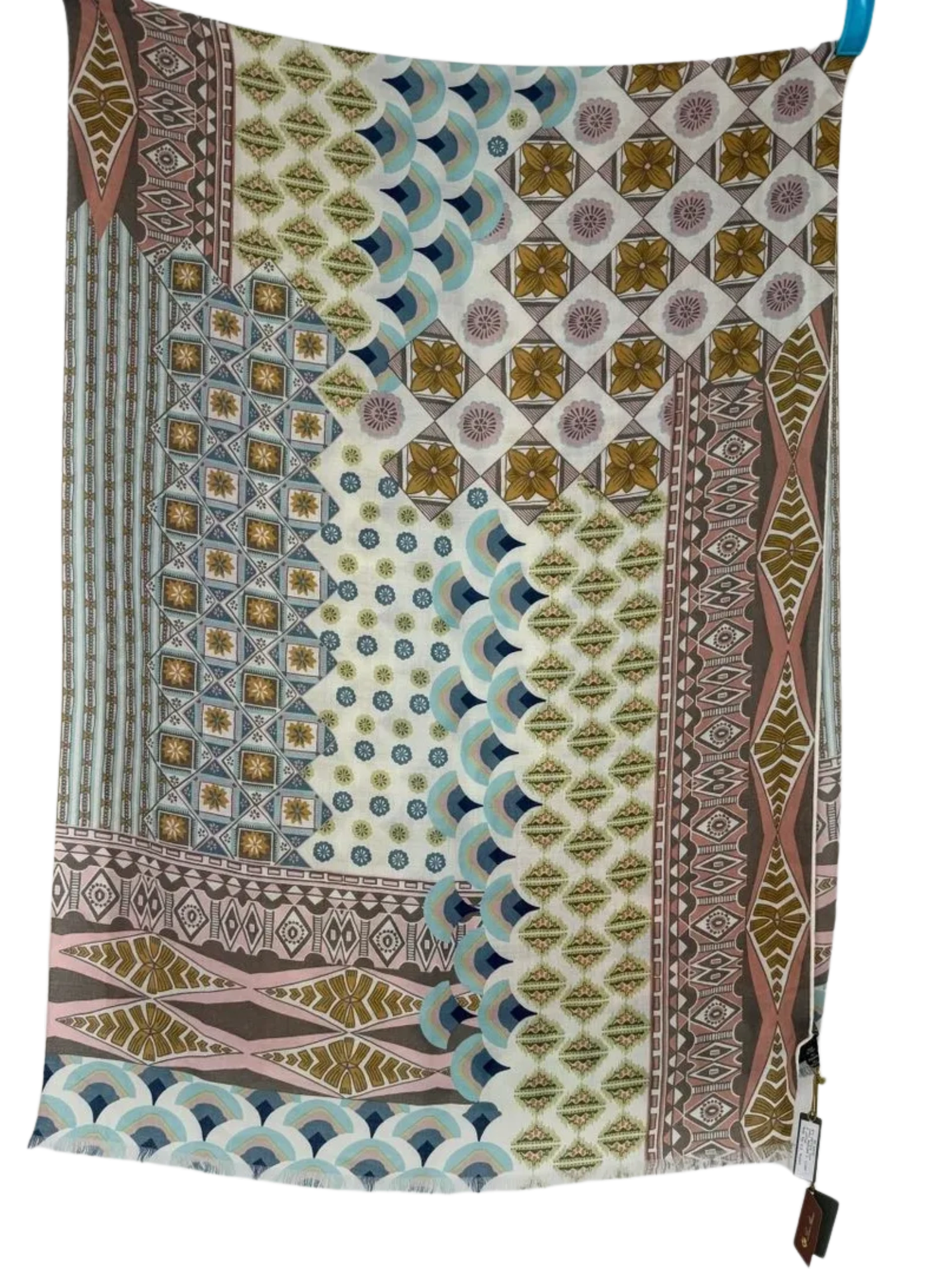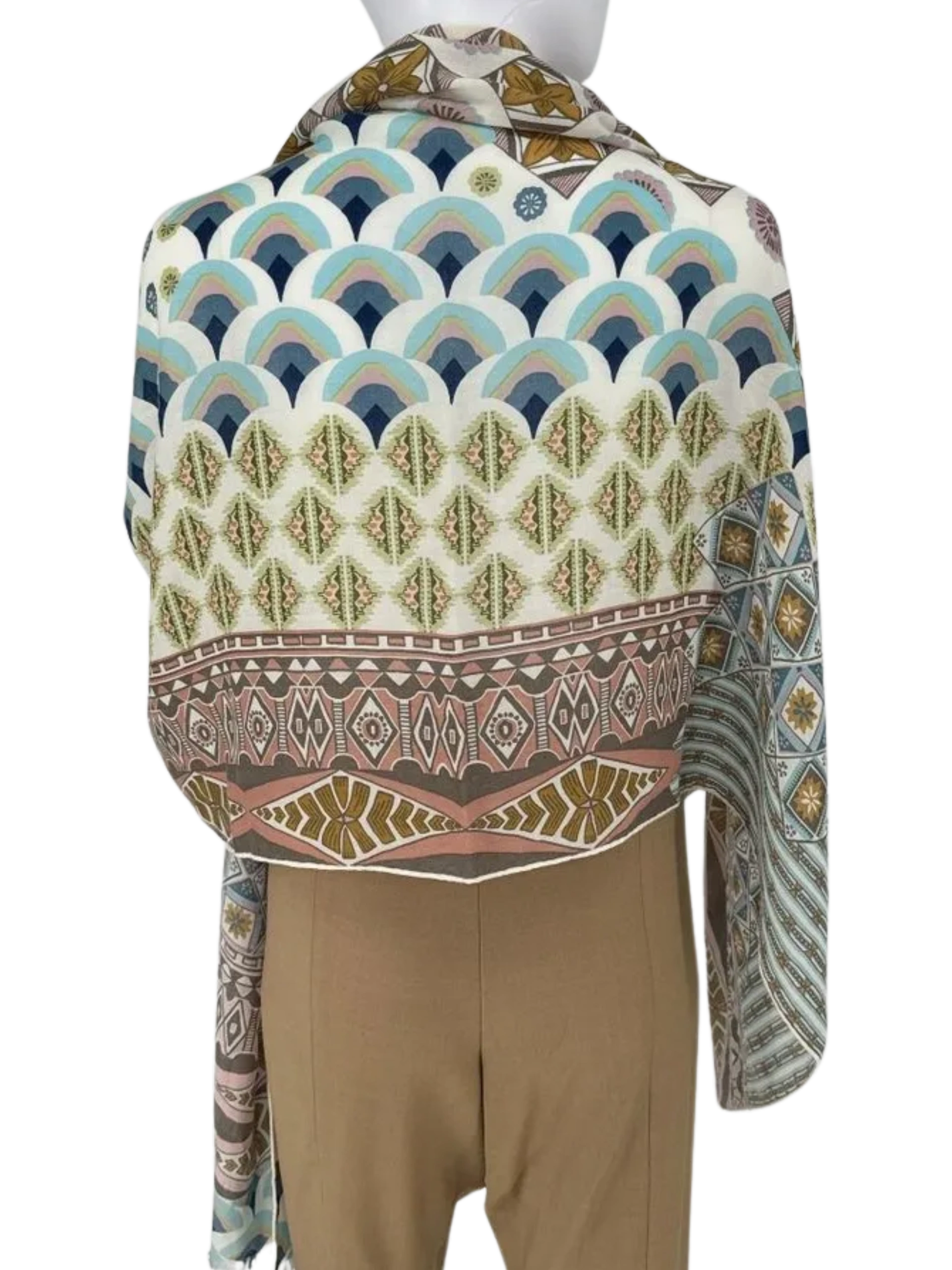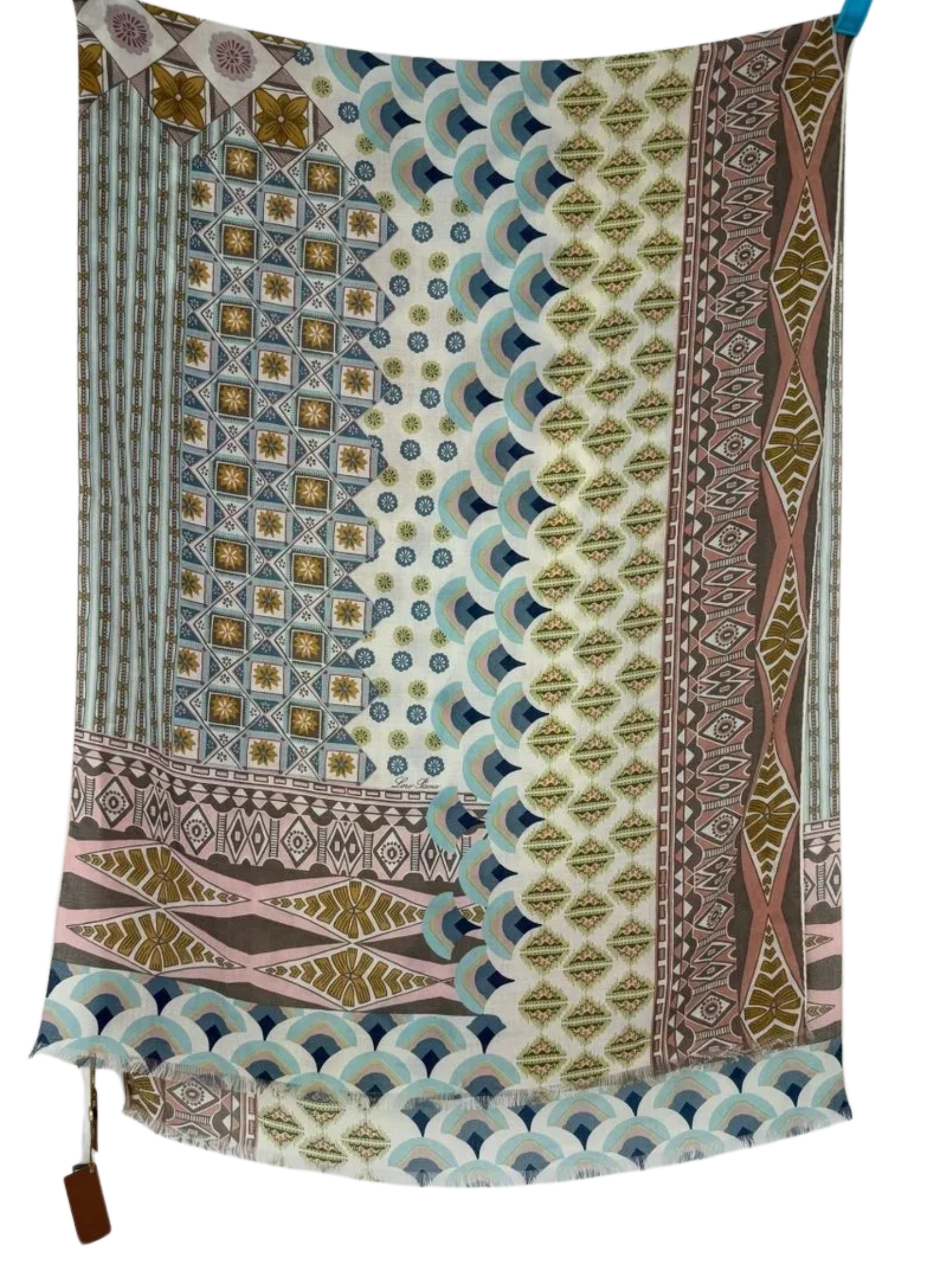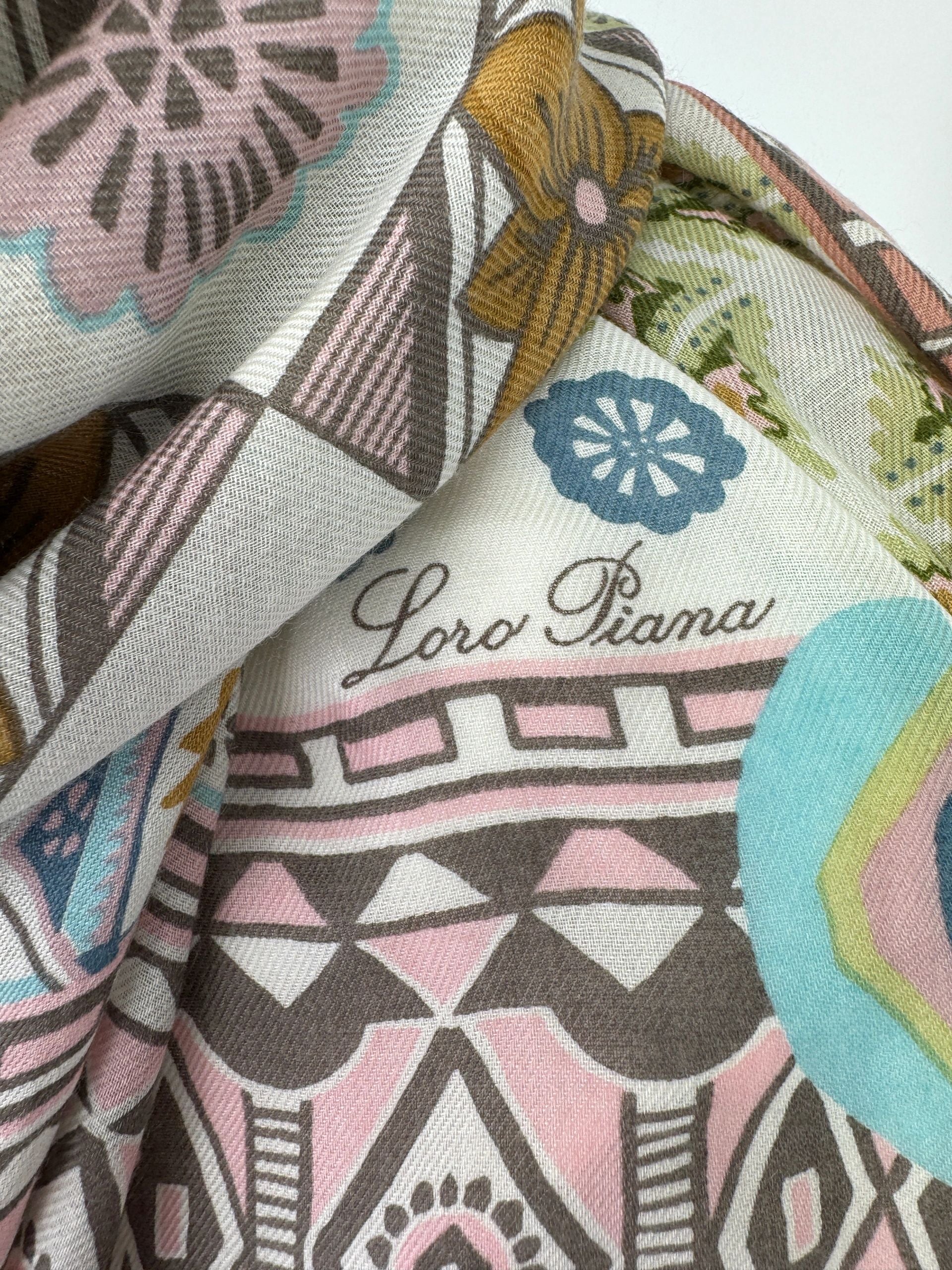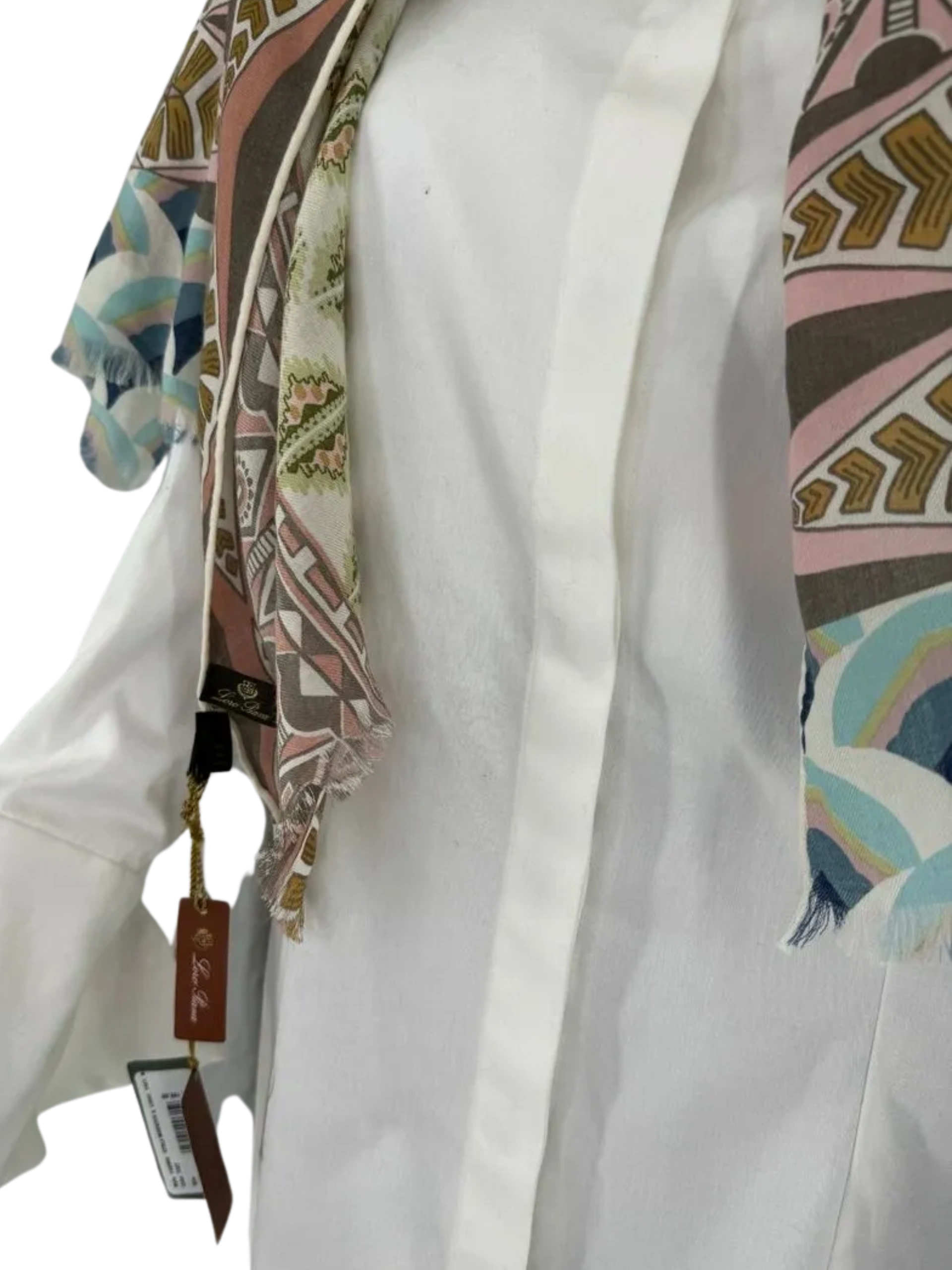 Loro Piana Brand New with Tags Shawl, 70% Cashmere, 30% Silk, Made in Italy, can be worn in a variety of ways. Rolled hem, Multicolor Print. Excellent/Brand New condition.