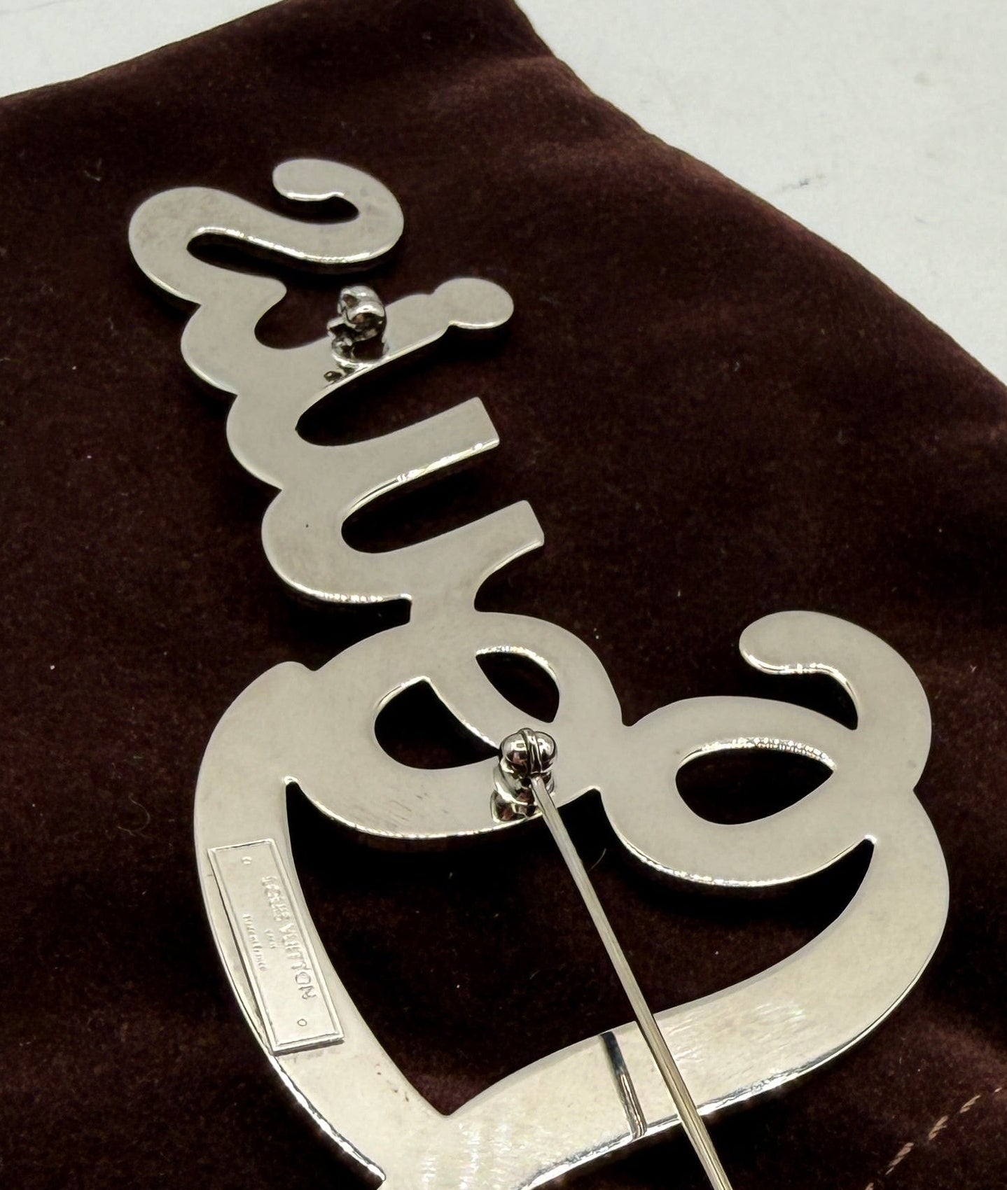 Style: Oversized Script Logo Brooch