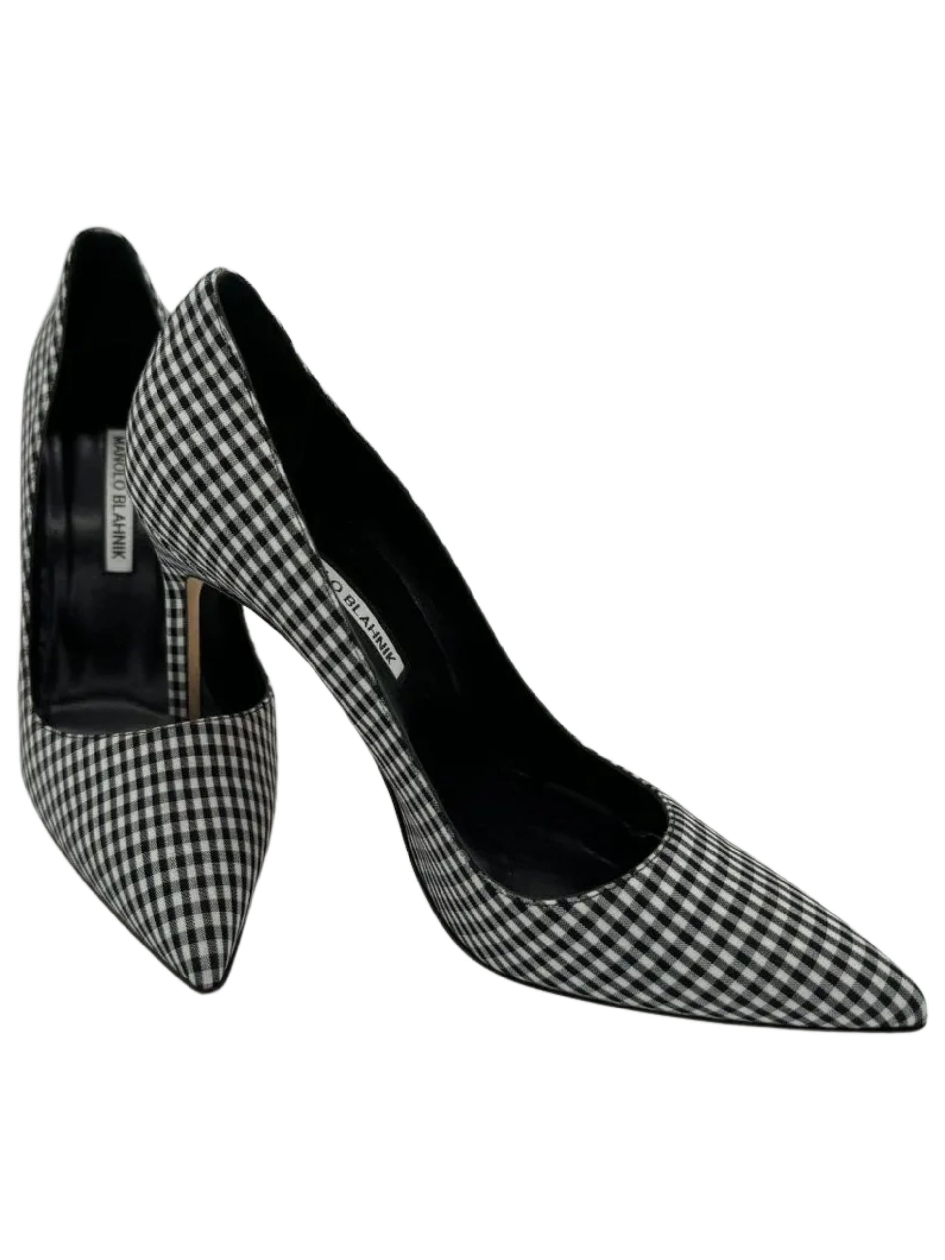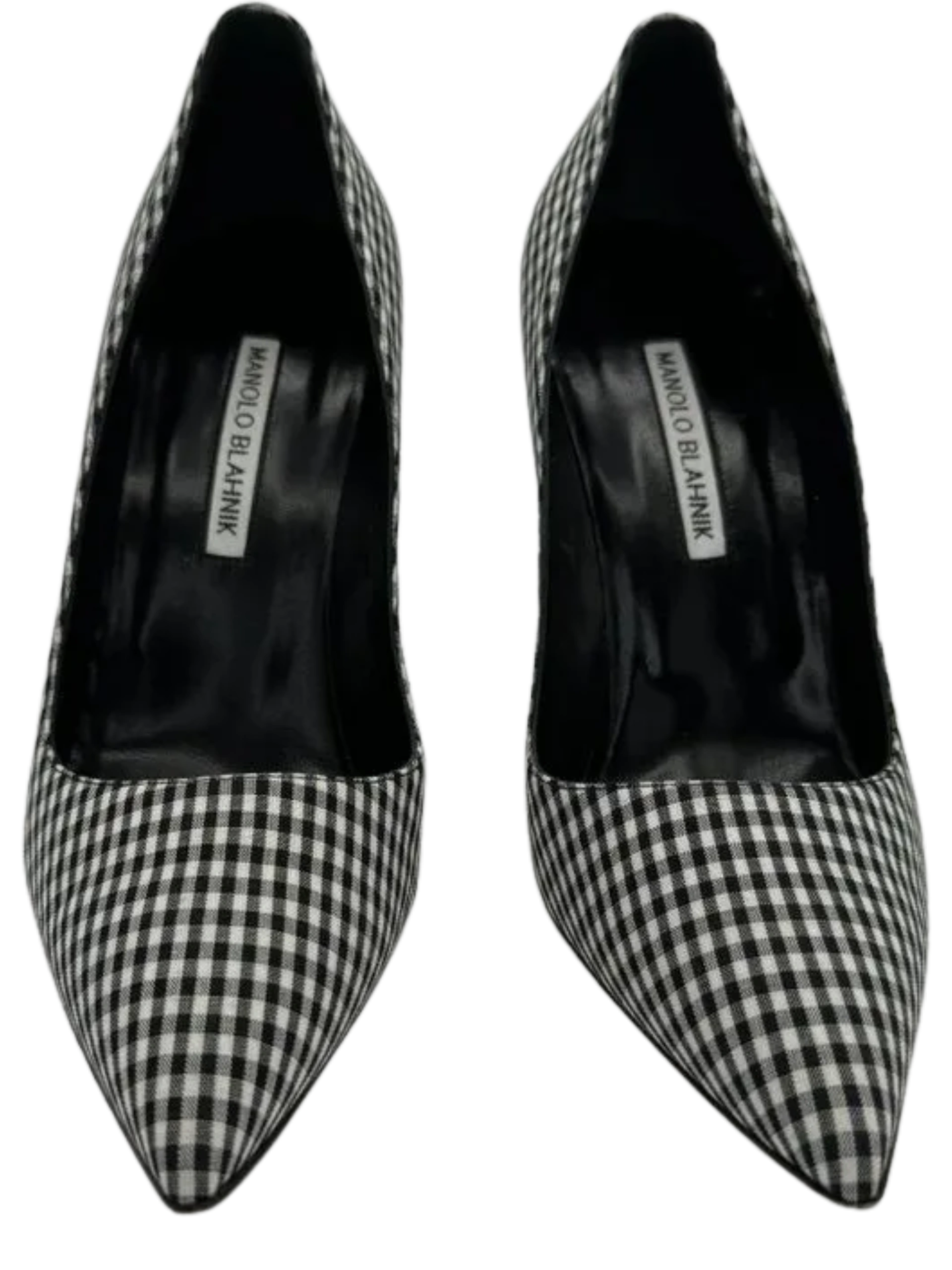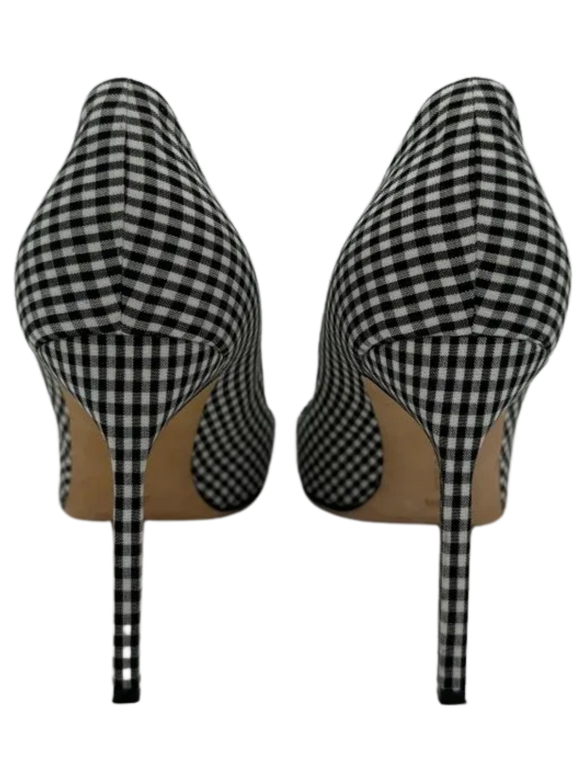 Manolo Blahnik Women's Black/White Gingham Stiletto, Pointed toe, Slip on, Leather lining interior, Upper material is fabric. Made in Italy, Condition is great - only signs of wear are on soles.