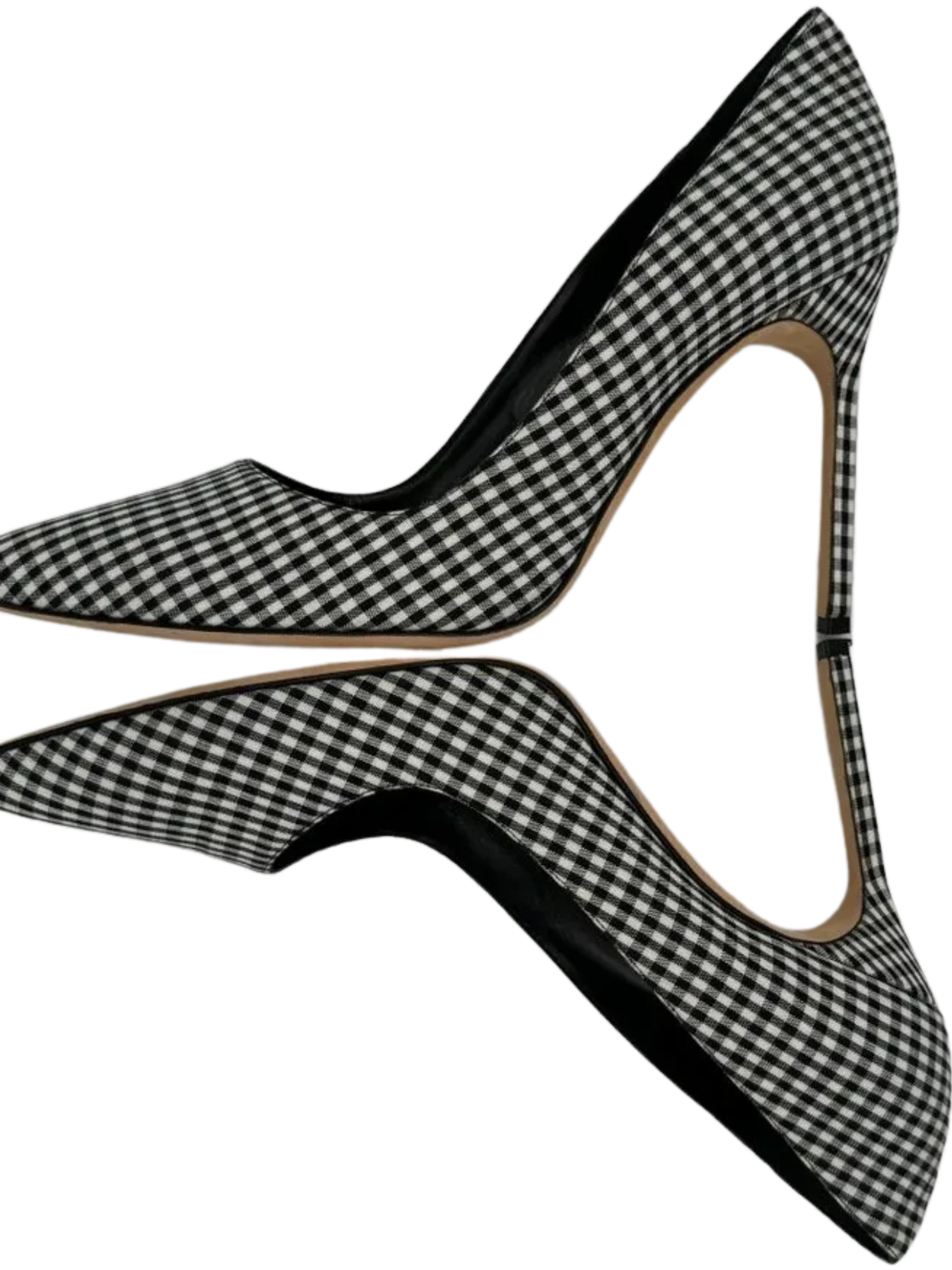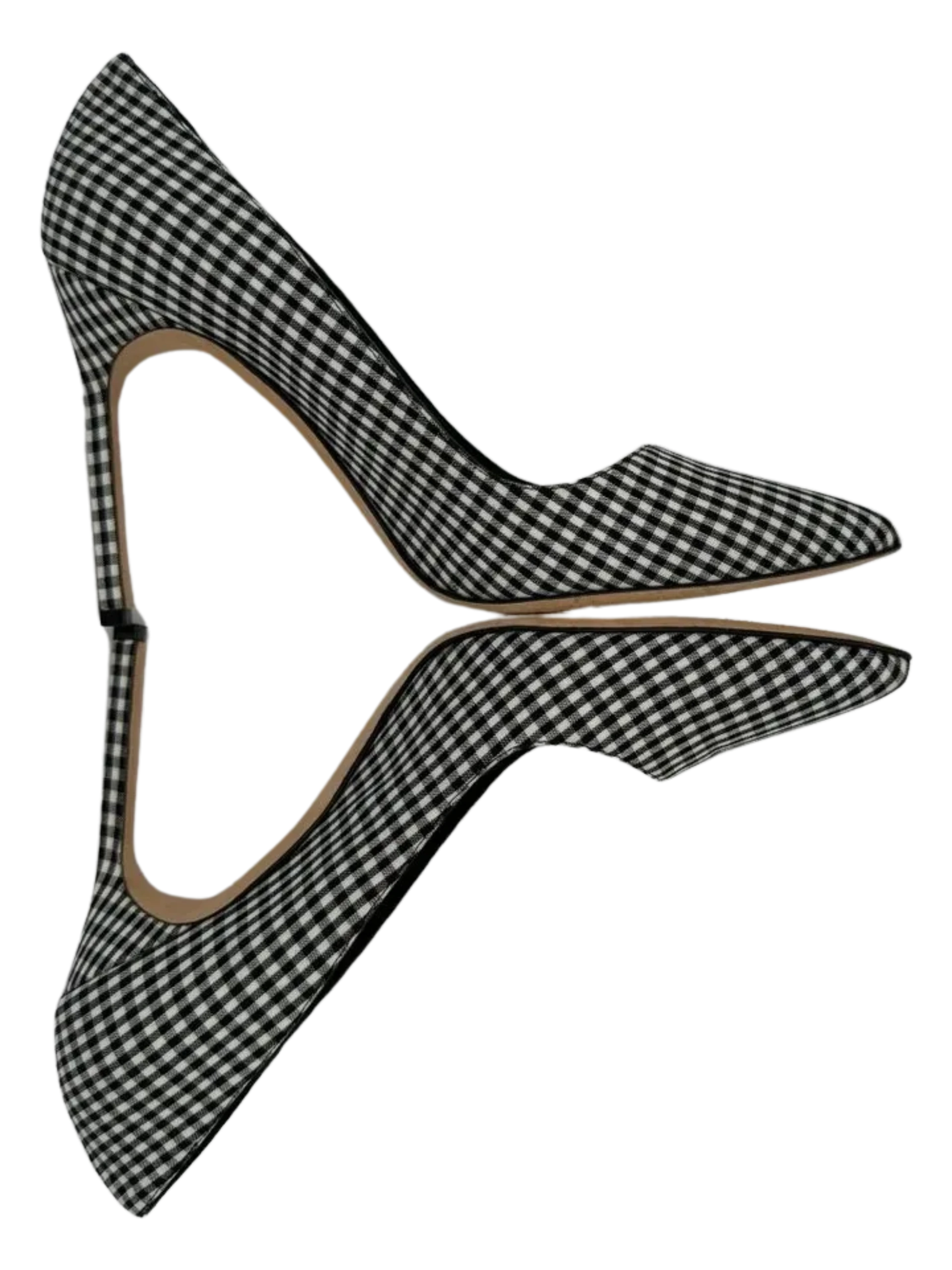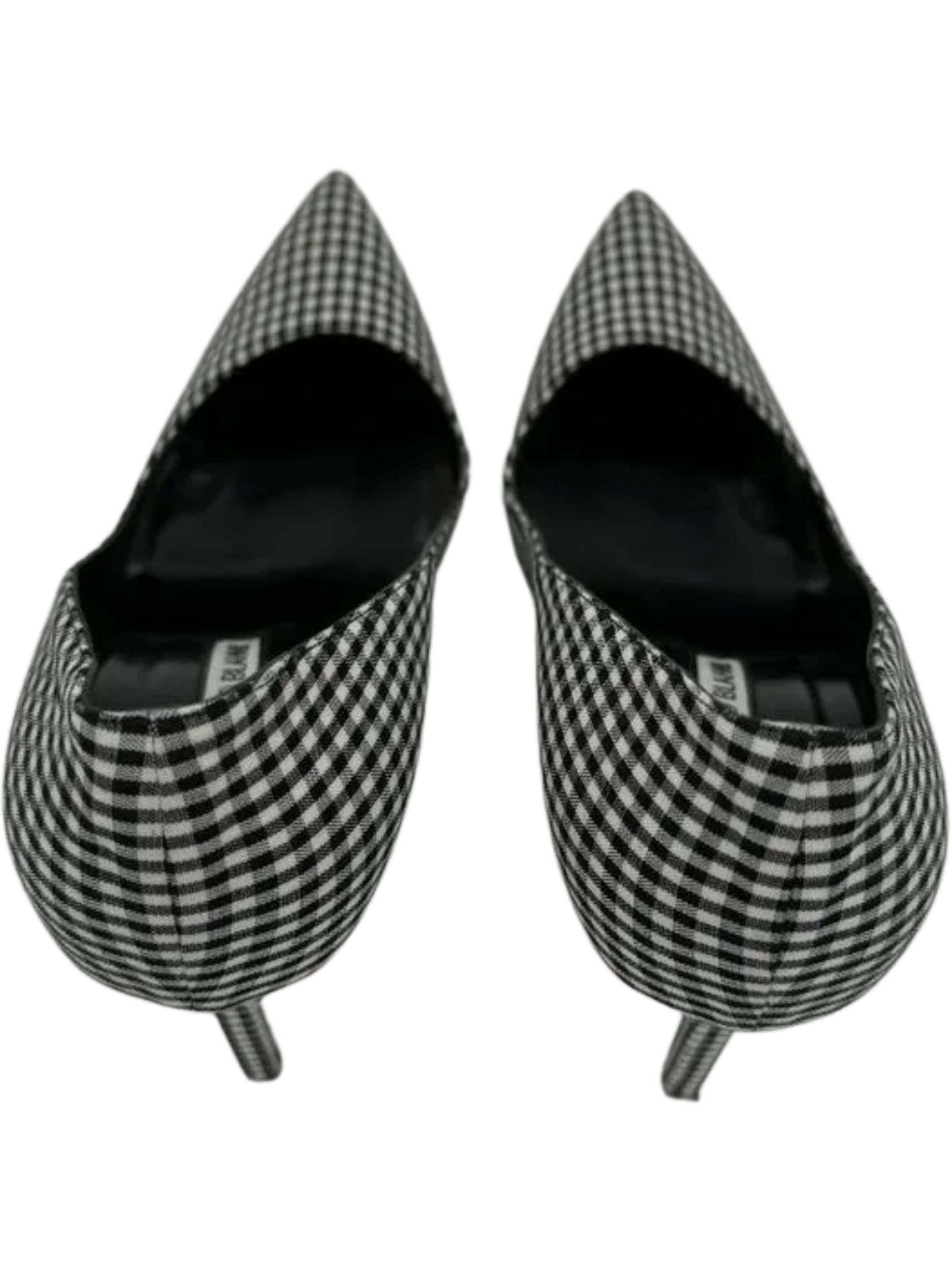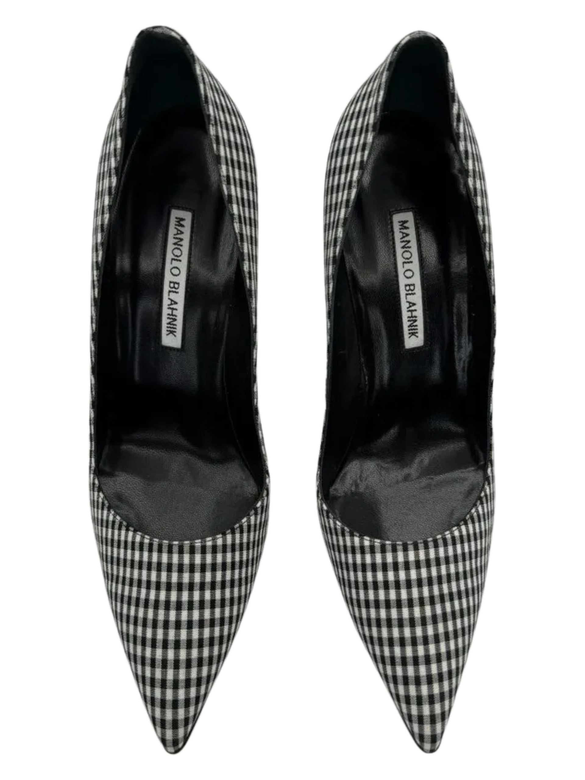 Manolo Blahnik Women's Black/White Gingham Stiletto, Pointed toe, Slip on, Leather lining interior, Upper material is fabric. Made in Italy, Condition is great - only signs of wear are on soles.