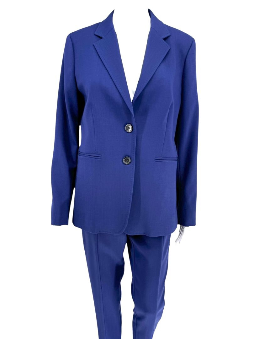 Max Mara Blue Virgin Wool Blend Pant Suit – Size US 12