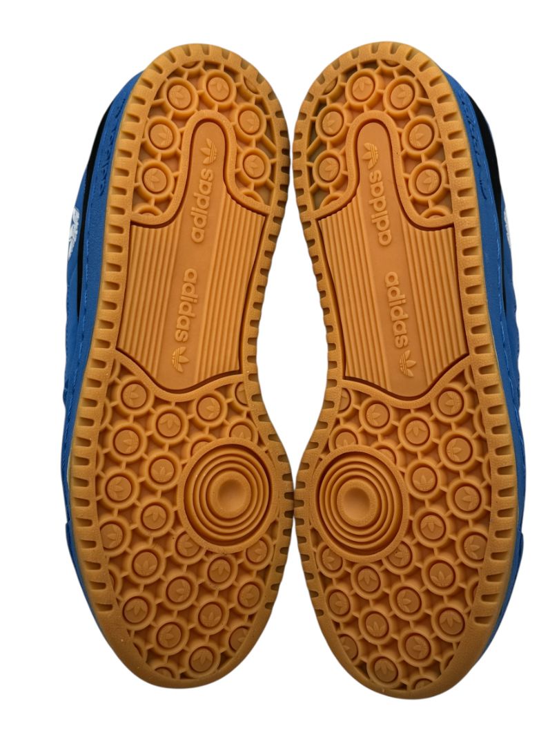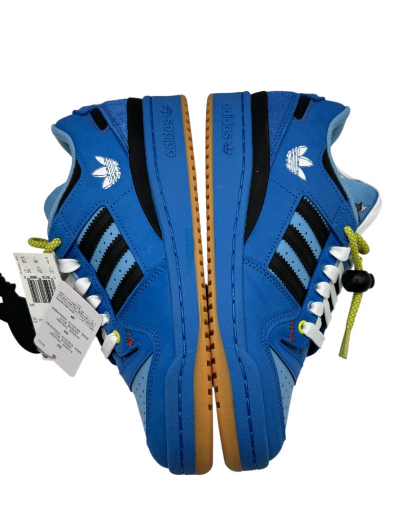 A bold artistic collaboration between adidas Originals and Chicago artist Hebru Brantley, these Forum Low “Rocket” sneakers fuse classic basketball heritage with graphic storytelling. Rendered in layered shades of royal and sky blue, the design features smooth leather uppers, perforated toe box panels, and signature black Three Stripes.