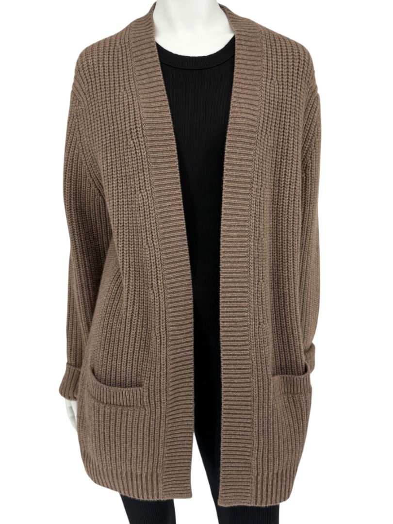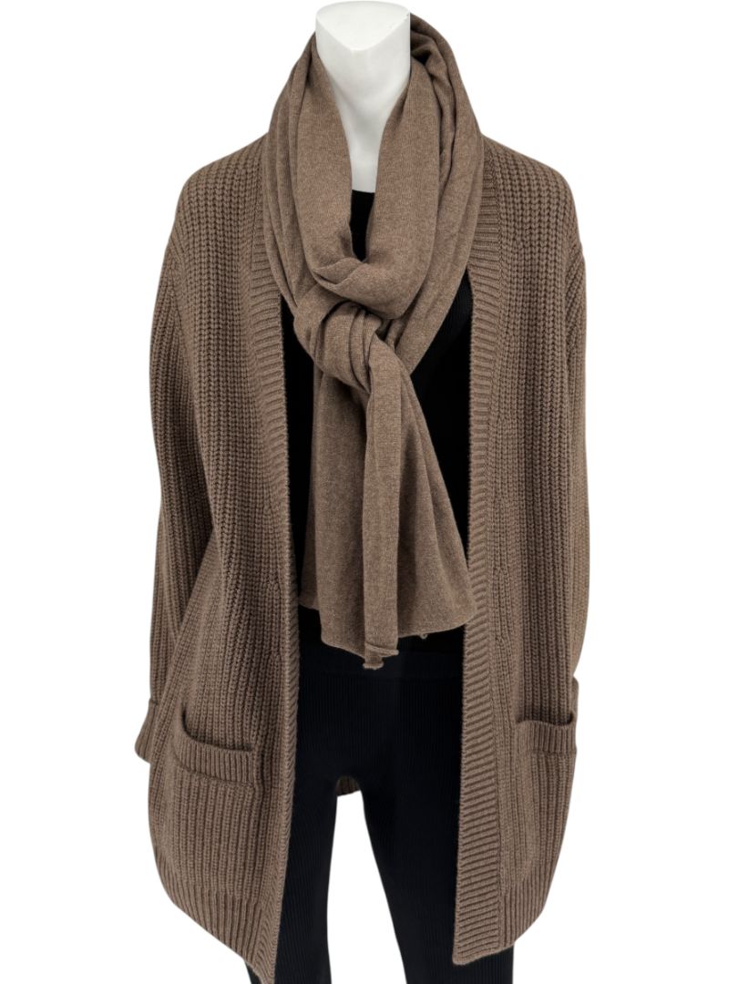 Michael Kors Java Brown Ribbed Cashmere Cardigan w/ Matching Scarf – Size M
