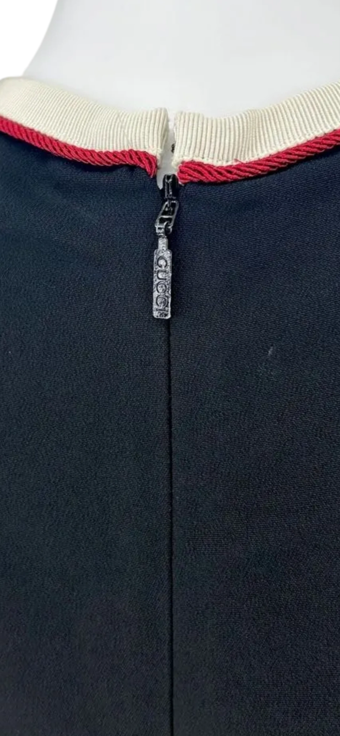Gucci Shift Dress From the 2018 Collection by Alessandro Michele, Navy Blue with Grosgrain Trim, Sleeveless with Crew Neck. Concealed Zip Closure at Back. Condition - Great Light signs of wear, no significant marks, snags or pulls.