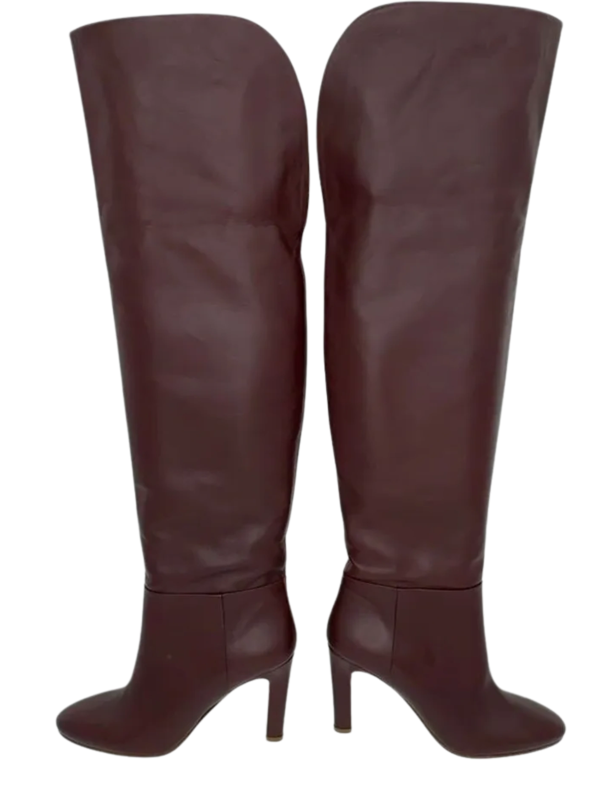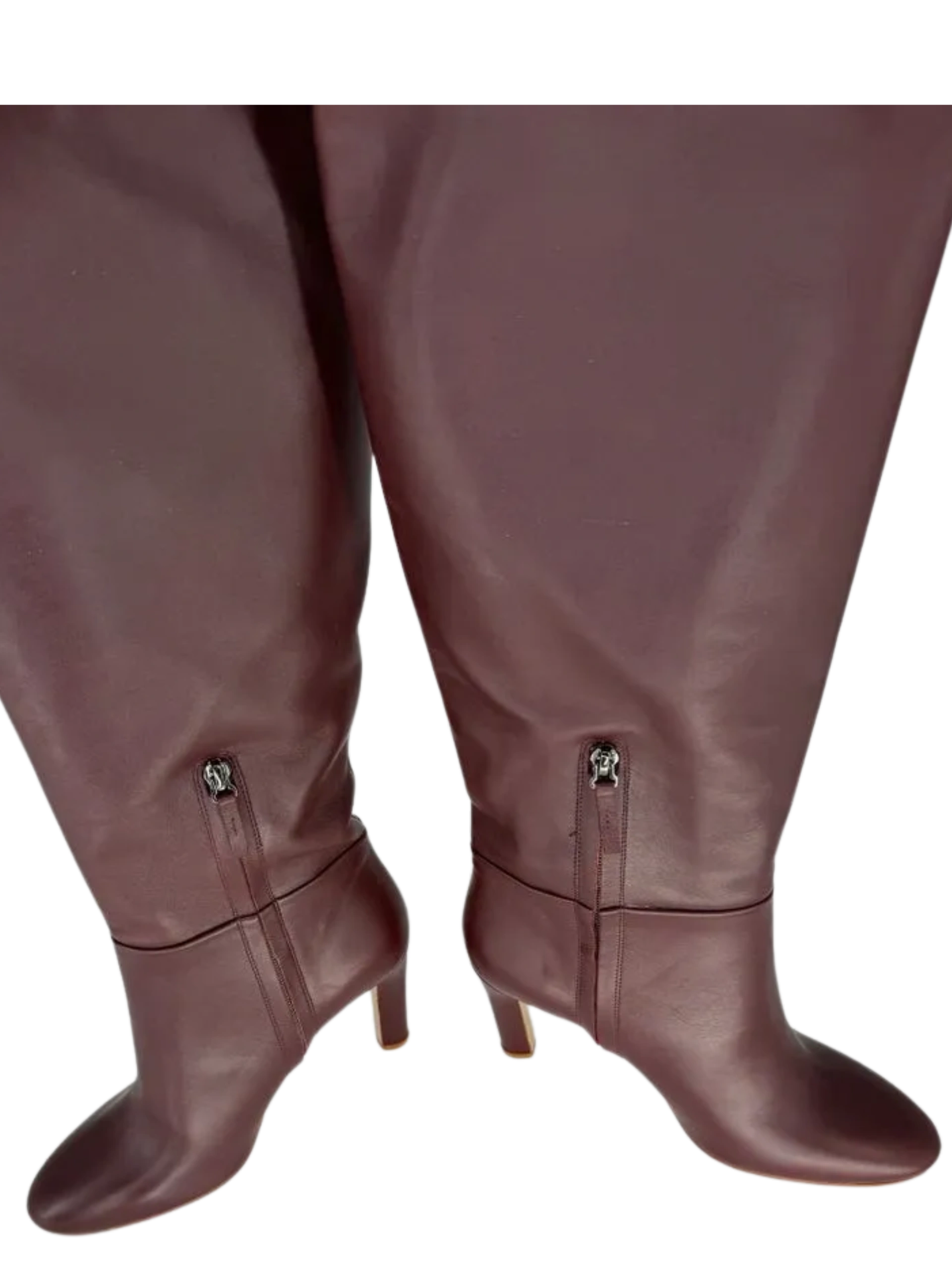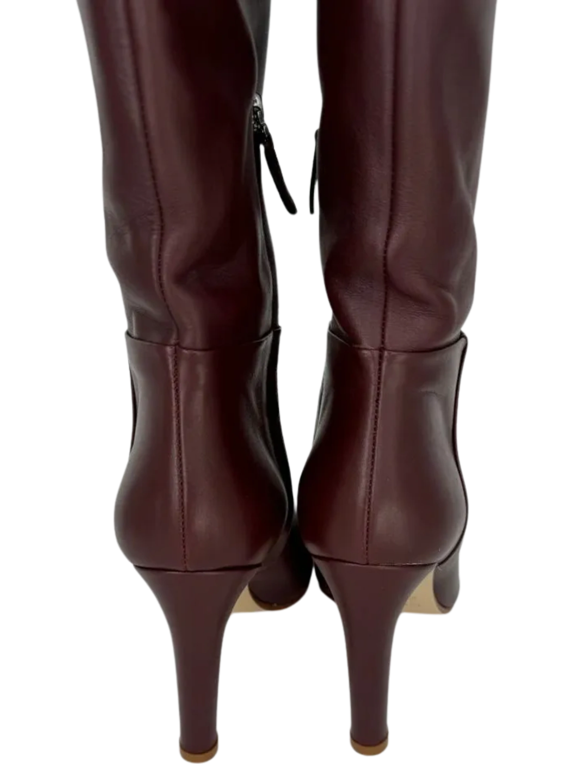 Gabriela Hearst Linda Over The Knee Boot - NEW These 'Linda' boots are made from smooth wine leather and have an over-the-knee shape with a curved, split cuff for a comfortable fit. The sturdy heel offers 95mm of lift. Stunning rich color, made in Leather upper & lower, Made in Italy, Partial side zipper closure, Leather footbed and lining, Almond toe. No signs of wear, No box or Dustbags. Size: 39 Shaft Height: 18.5" Shaft Circumference: 16.5" Heel Height: 3.5"
