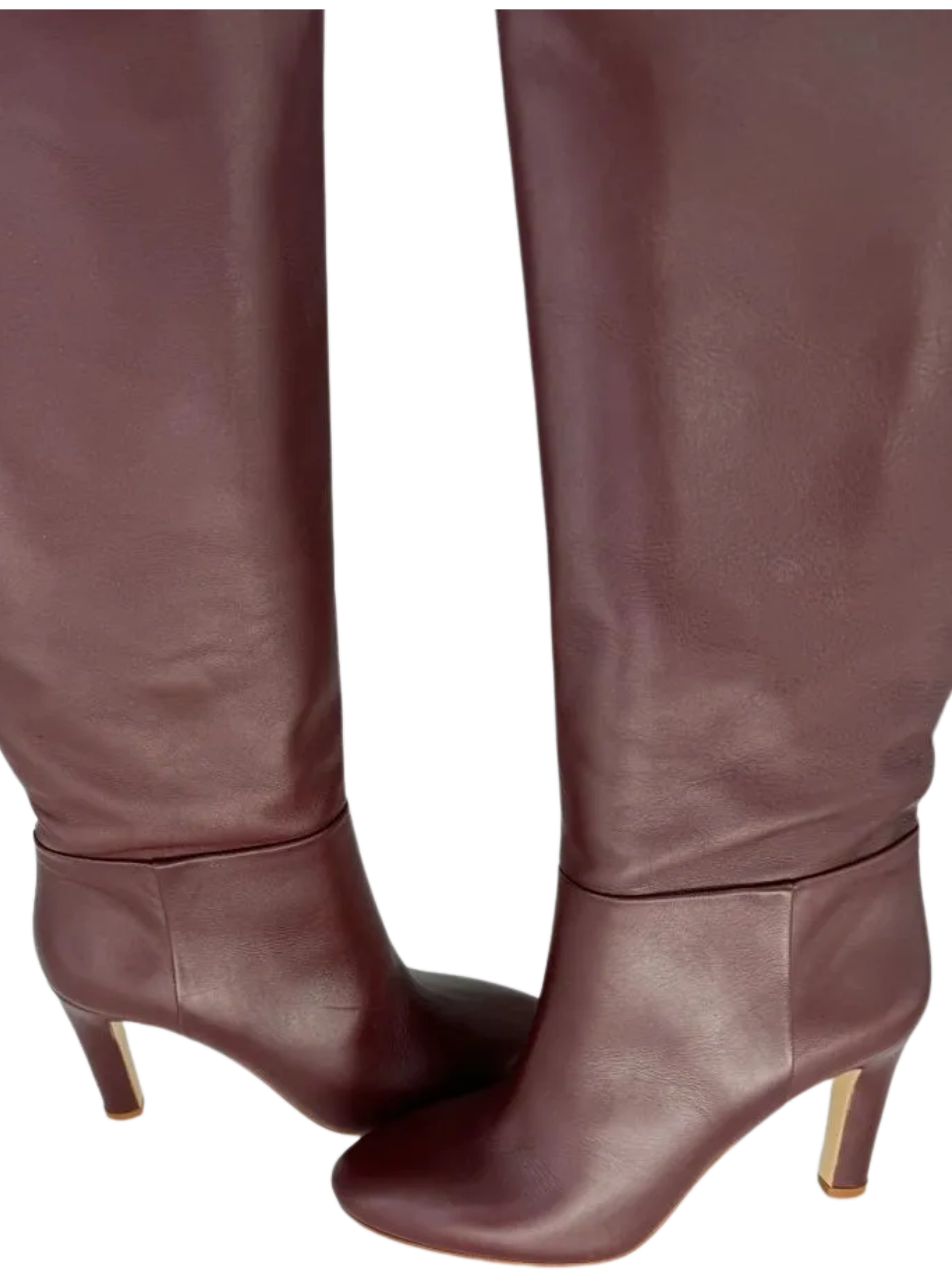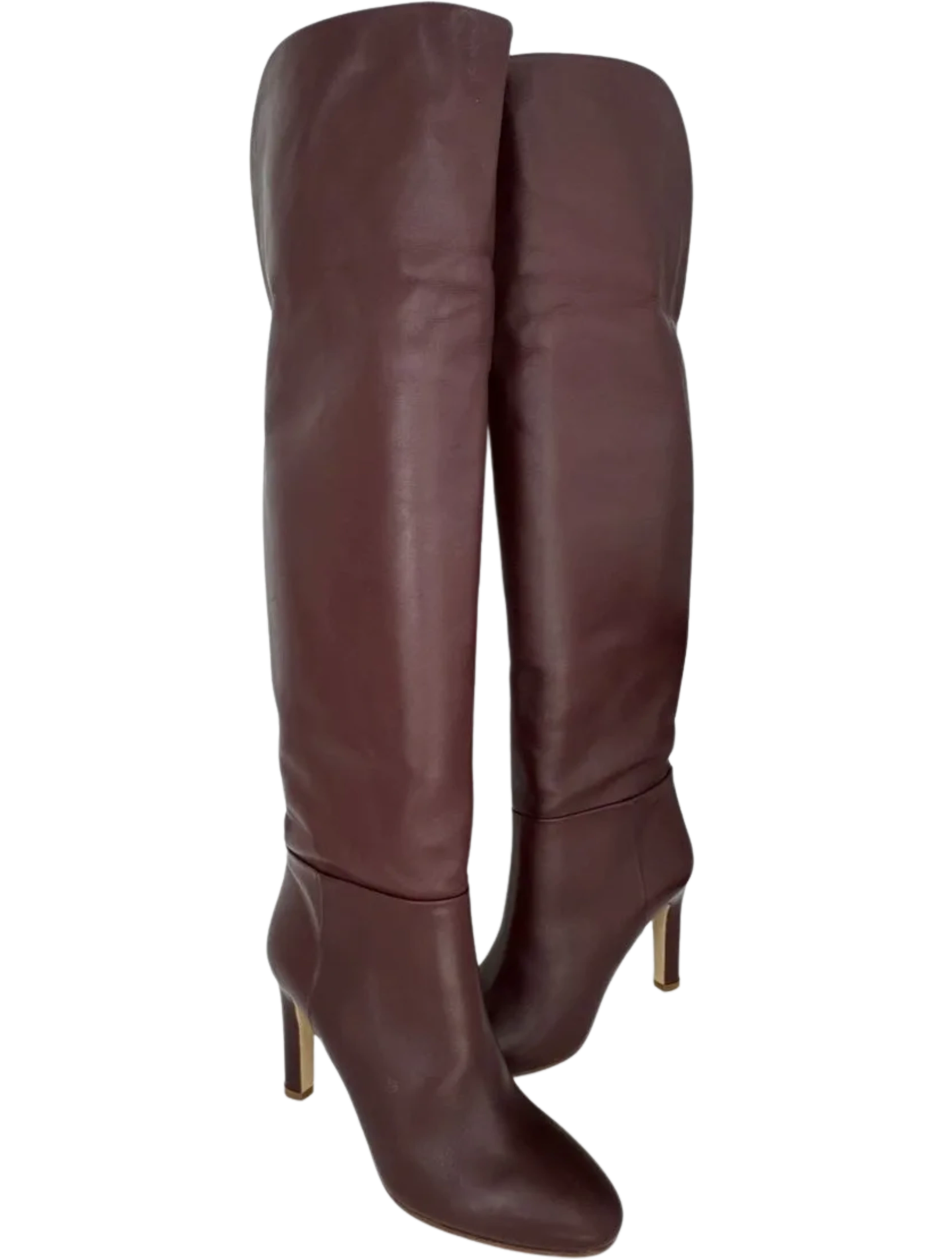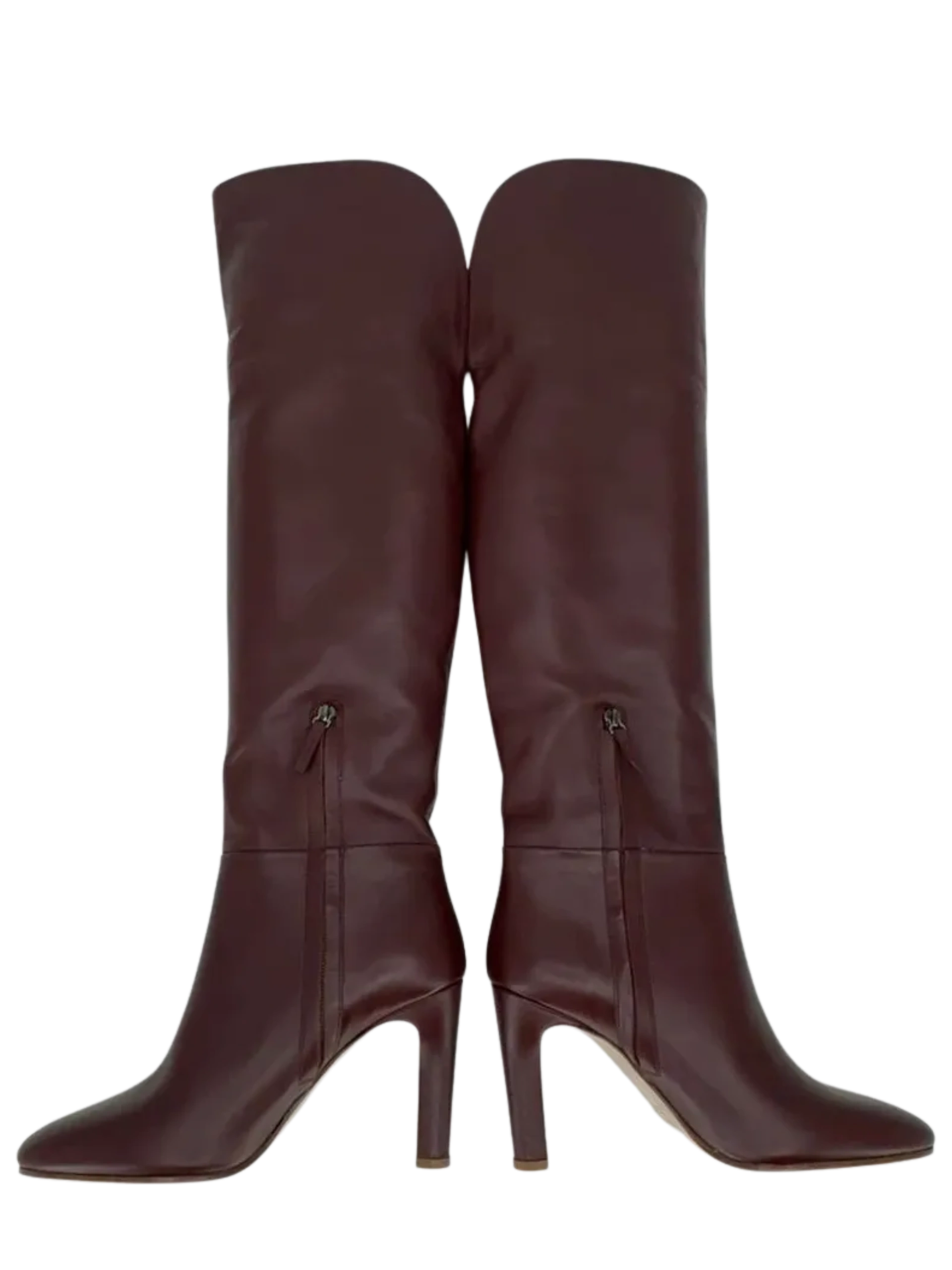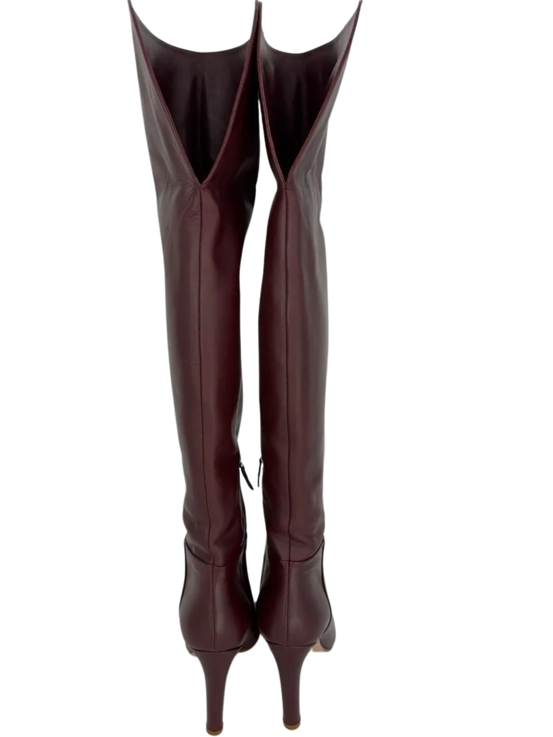 Gabriela Hearst Linda Over The Knee Boot - NEW These 'Linda' boots are made from smooth wine leather and have an over-the-knee shape with a curved, split cuff for a comfortable fit. The sturdy heel offers 95mm of lift. Stunning rich color, made in Leather upper & lower, Made in Italy, Partial side zipper closure, Leather footbed and lining, Almond toe. No signs of wear, No box or Dustbags. Size: 39 Shaft Height: 18.5" Shaft Circumference: 16.5" Heel Height: 3.5"